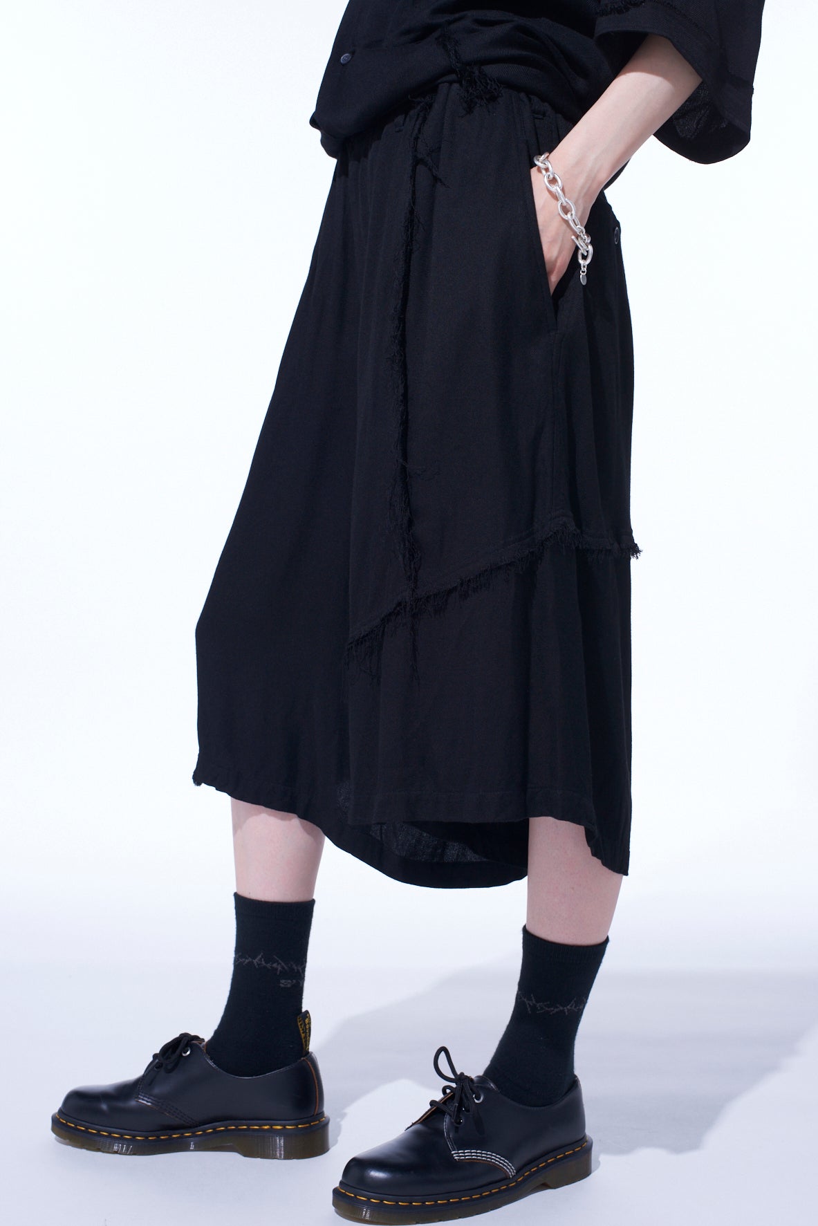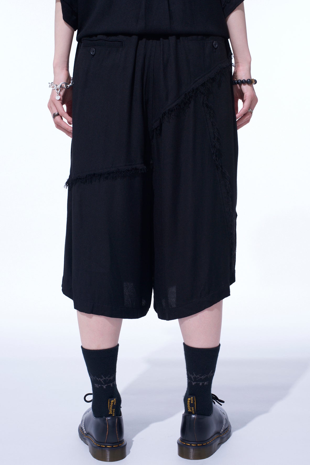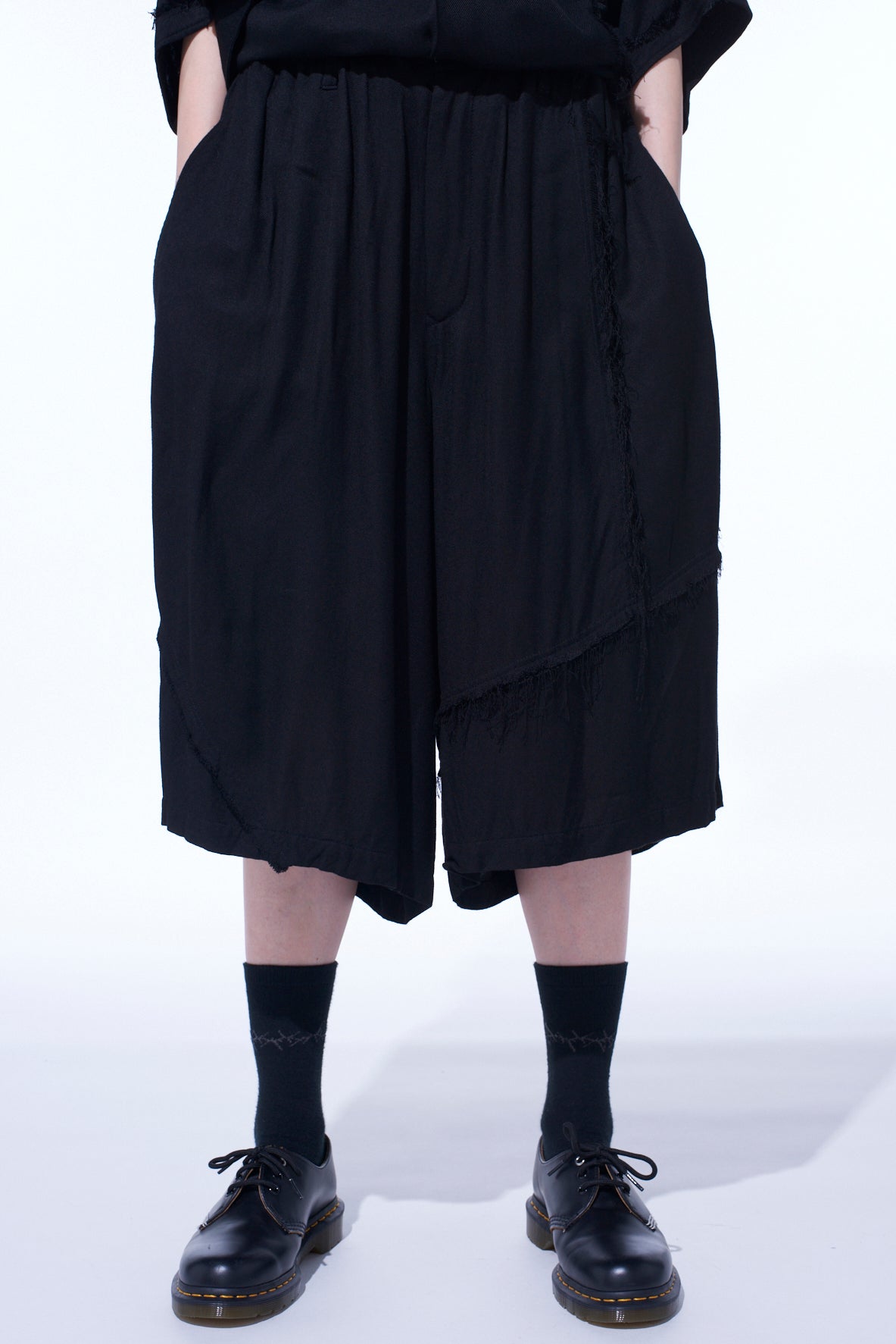 VISCOSE TWILL CUT-OFF WIDE SHORTS