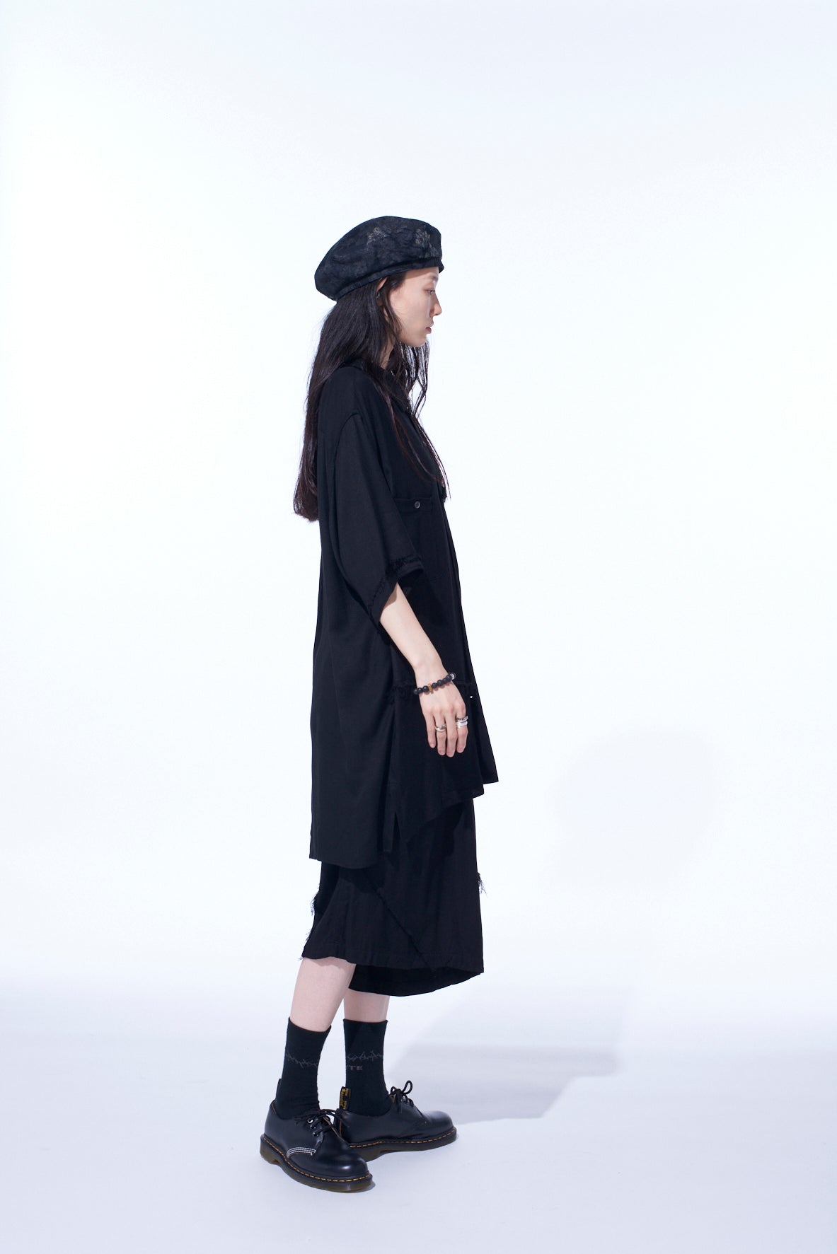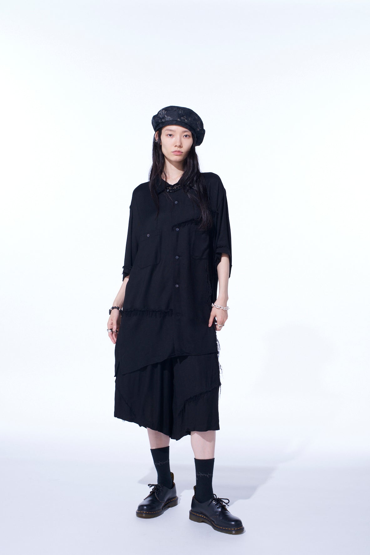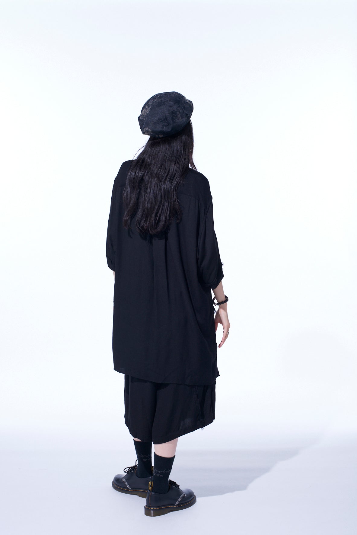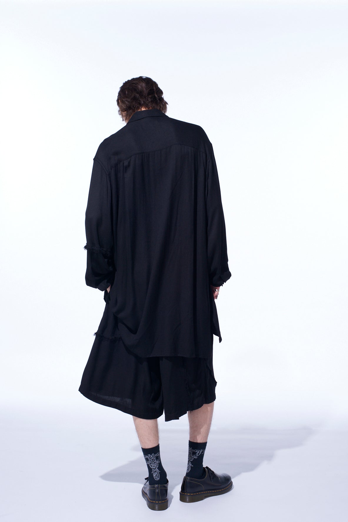 VISCOSE TWILL CUT-OFF WIDE SHORTS