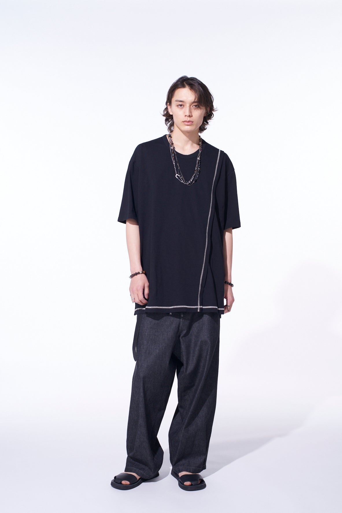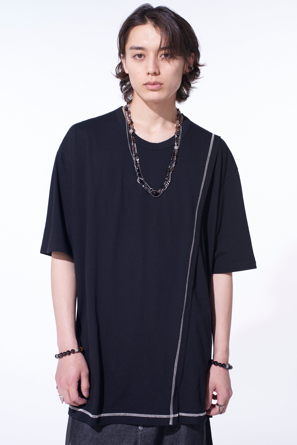 SOFT JERSEY COLOR STITCH LAYERED T-SHIRT