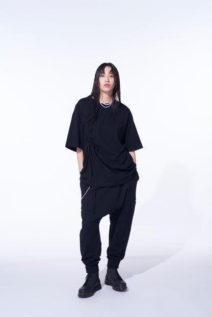 SOFT JERSEY T-SHIRT WITH GATHERED STRINGS