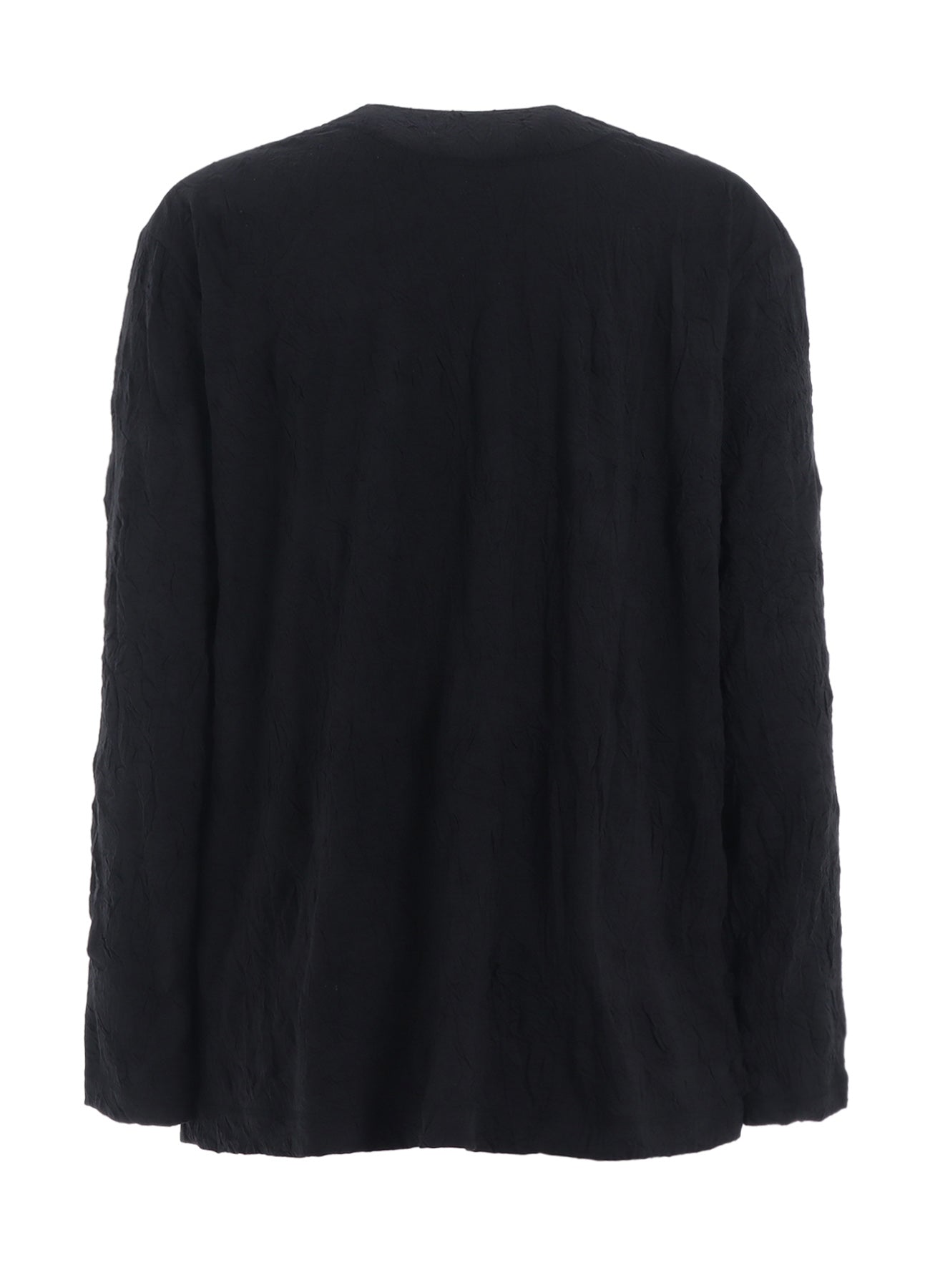 这款开衫以其标志性的立体皱褶而闻名,由棉/聚酯制成,展现出简约的身体外观。经过强烈的皱褶处理,传统清洗无法实现的亲密纹理。其透气特性带来清爽体验,且易于护理,无需熨烫。