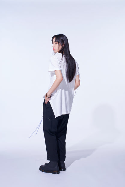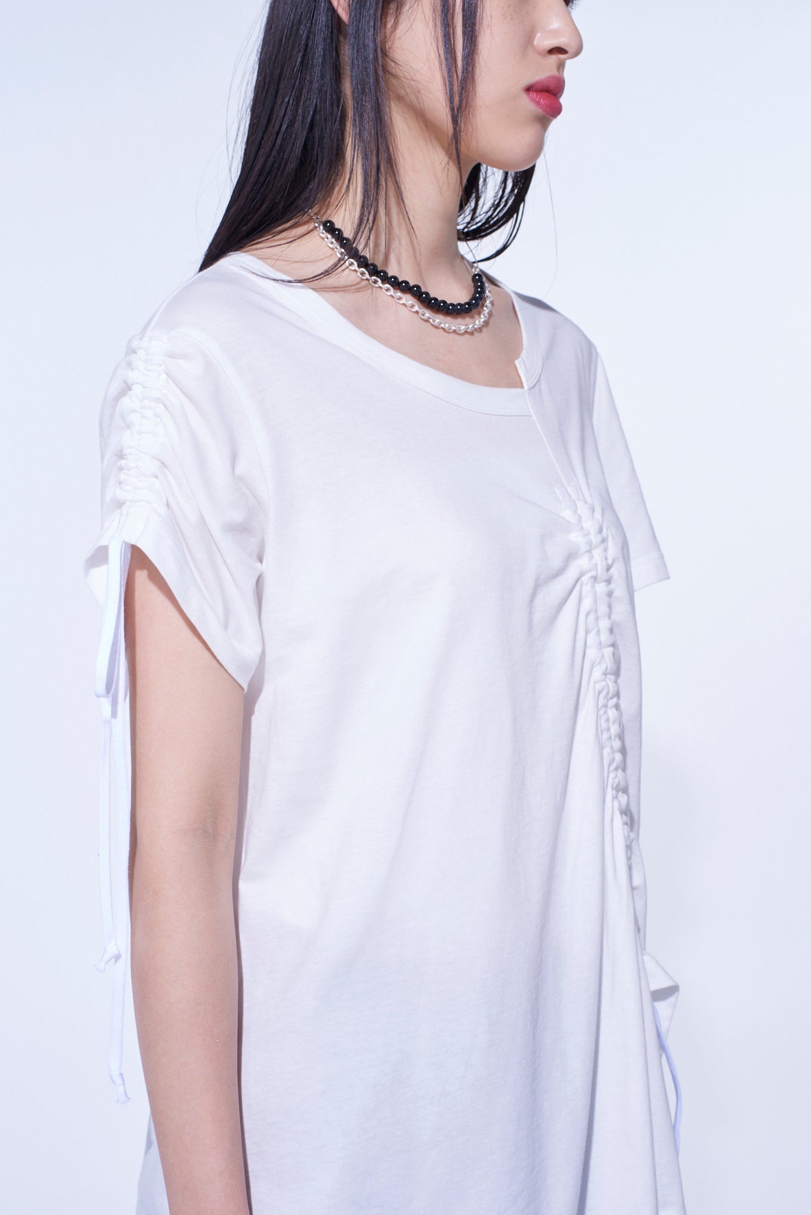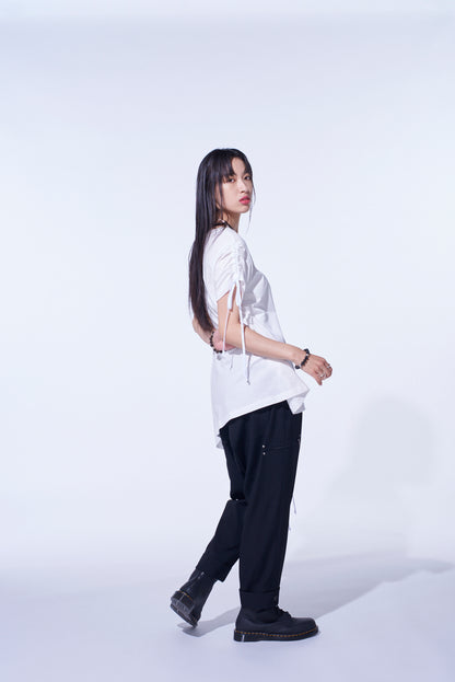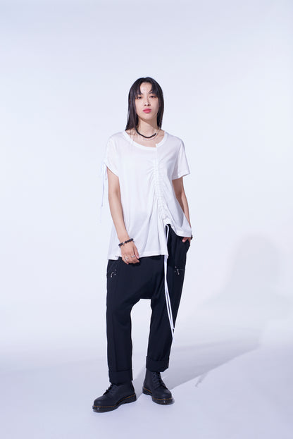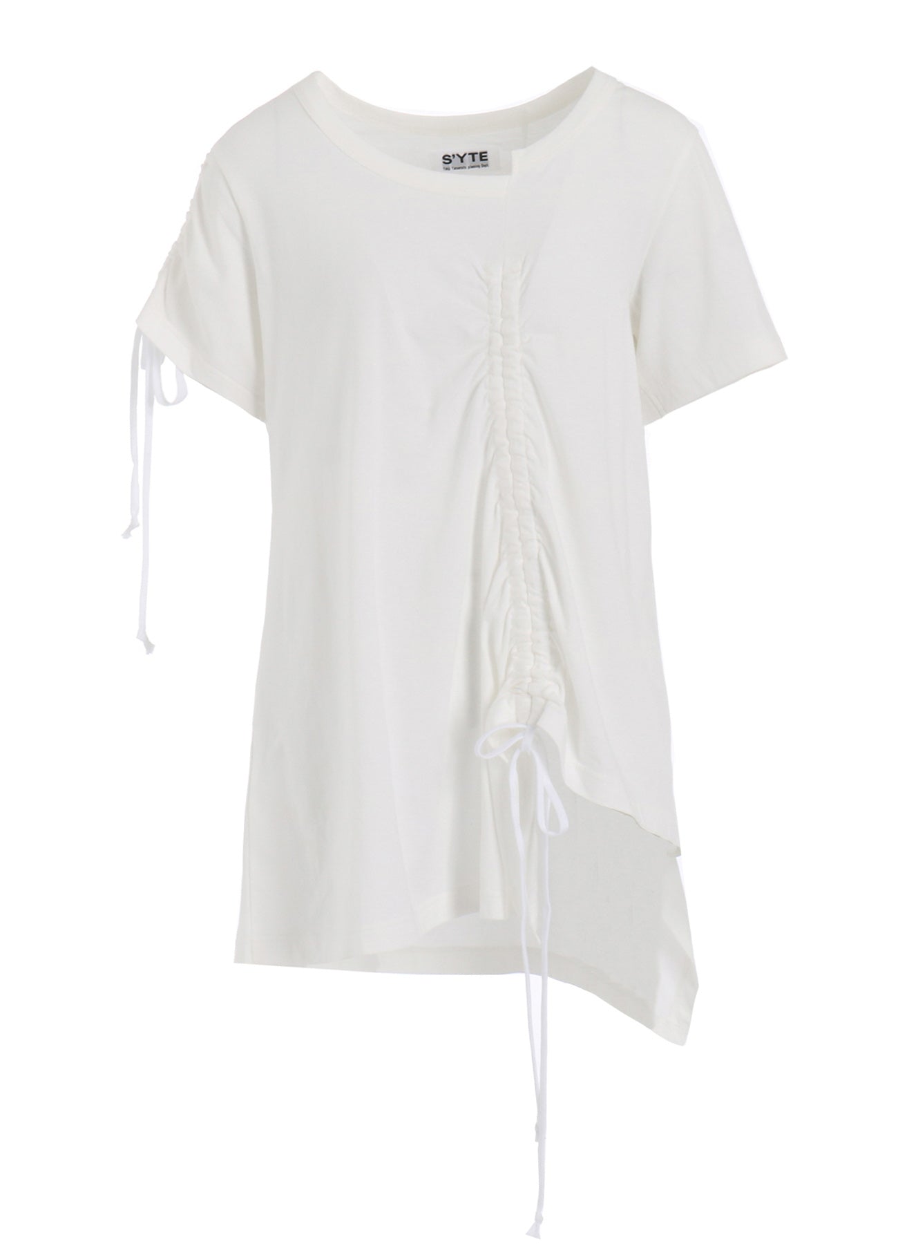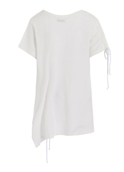 SOFT JERSEY ASYMMETRICAL T-SHIRT WITH GATHERED STRINGS