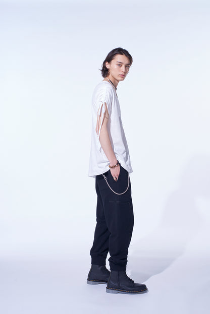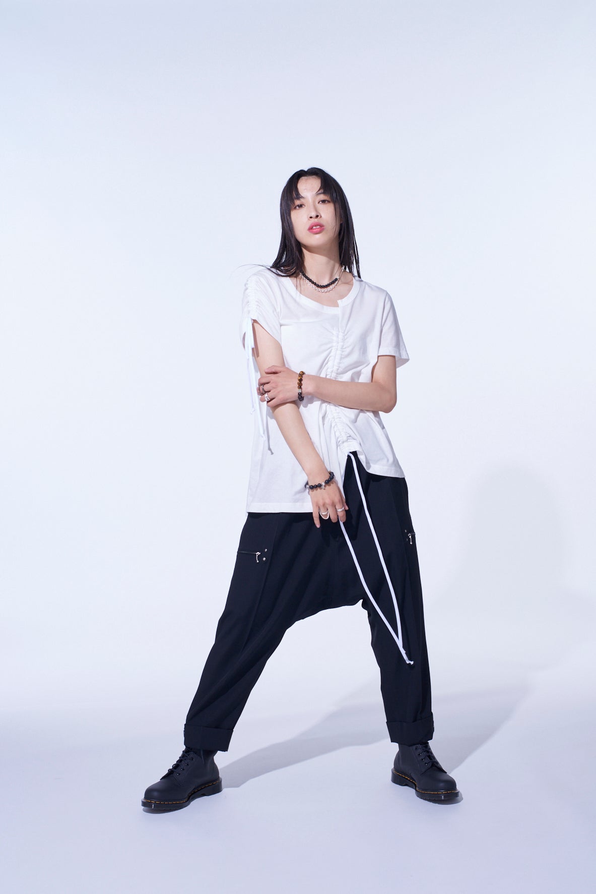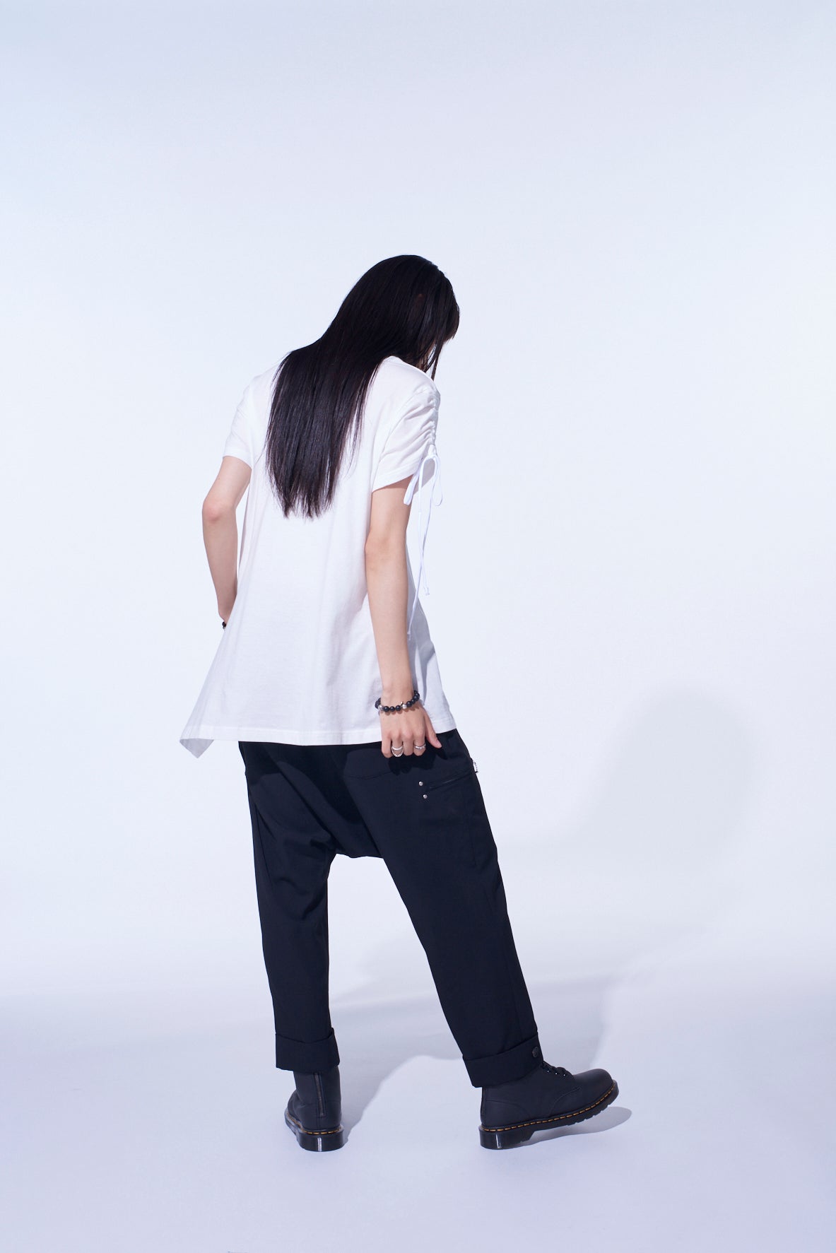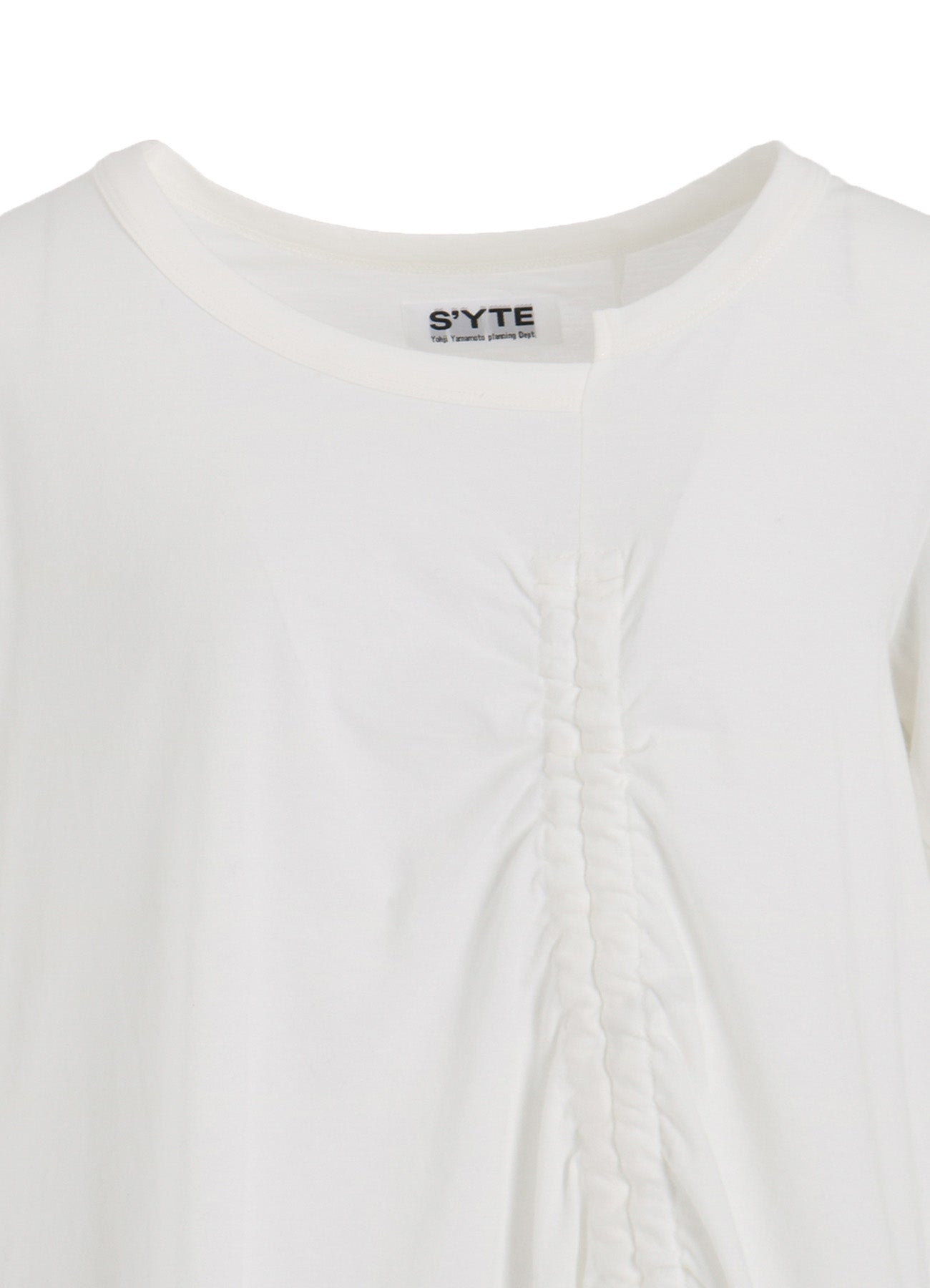 SOFT JERSEY ASYMMETRICAL T-SHIRT WITH GATHERED STRINGS