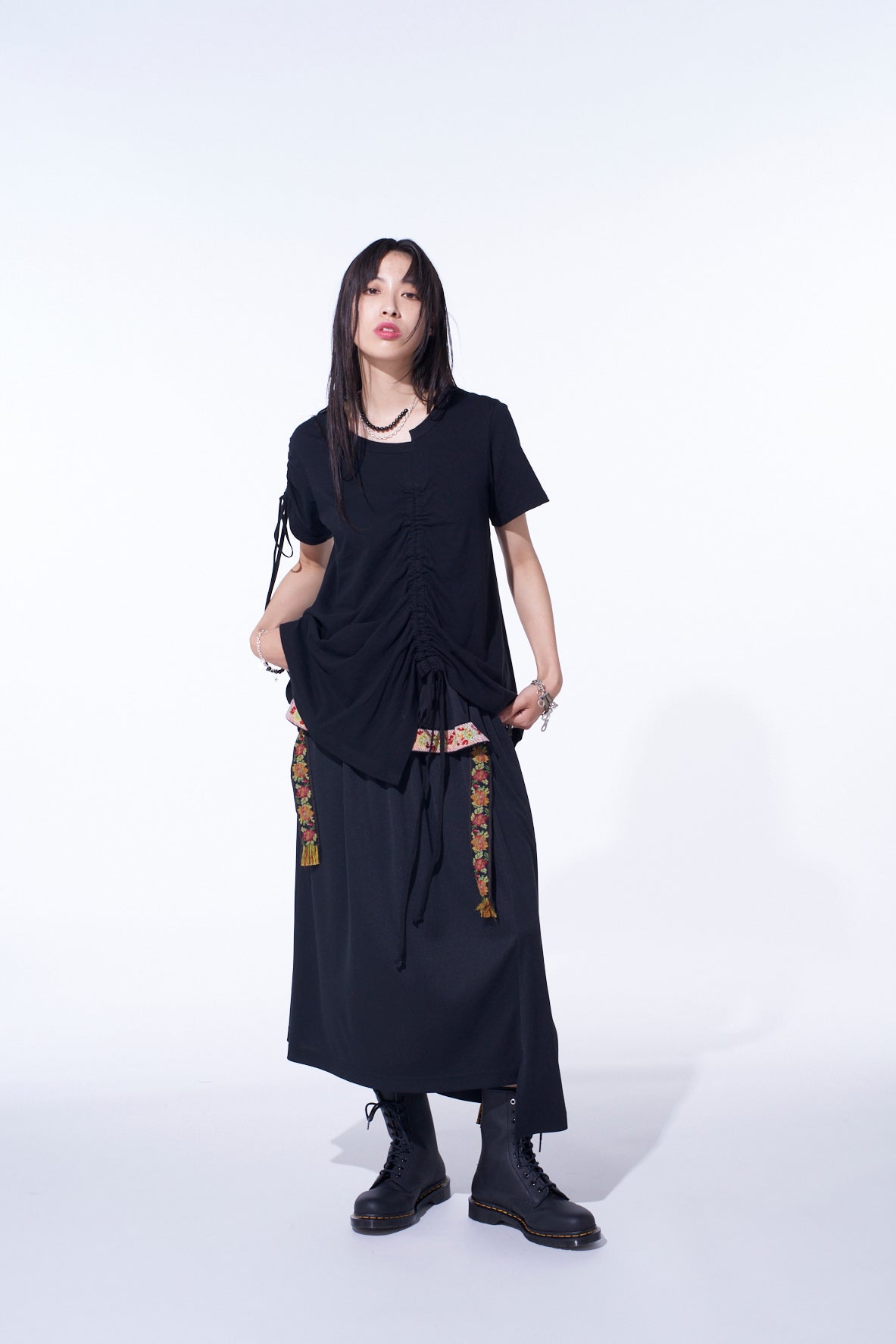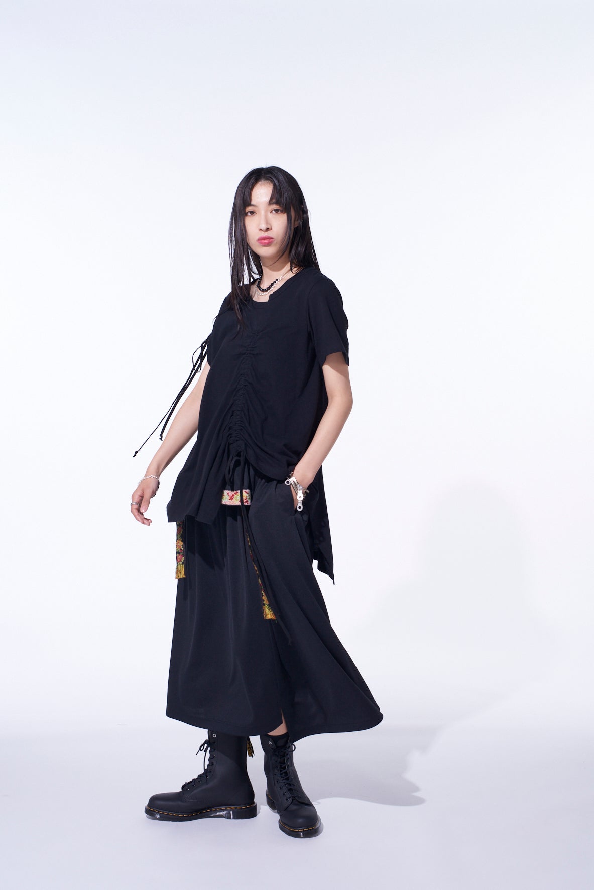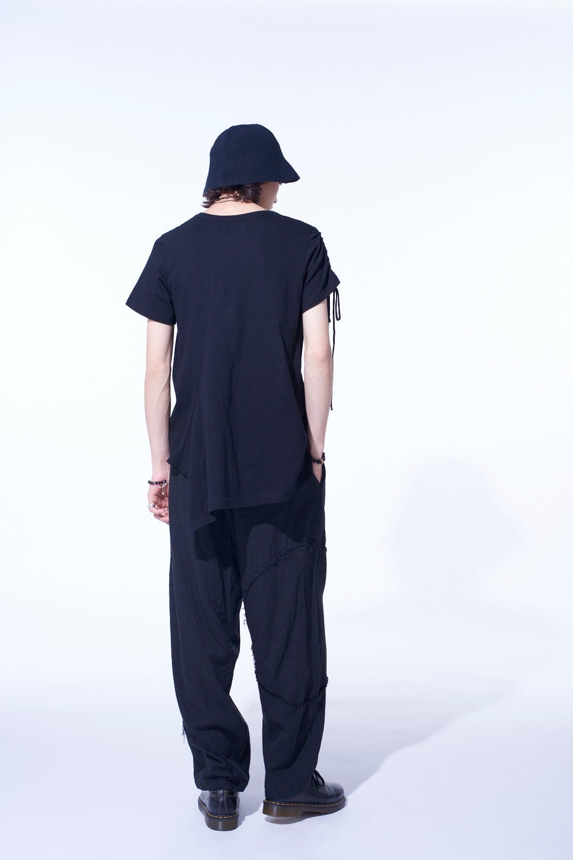SOFT JERSEY ASYMMETRICAL T-SHIRT WITH GATHERED STRINGS