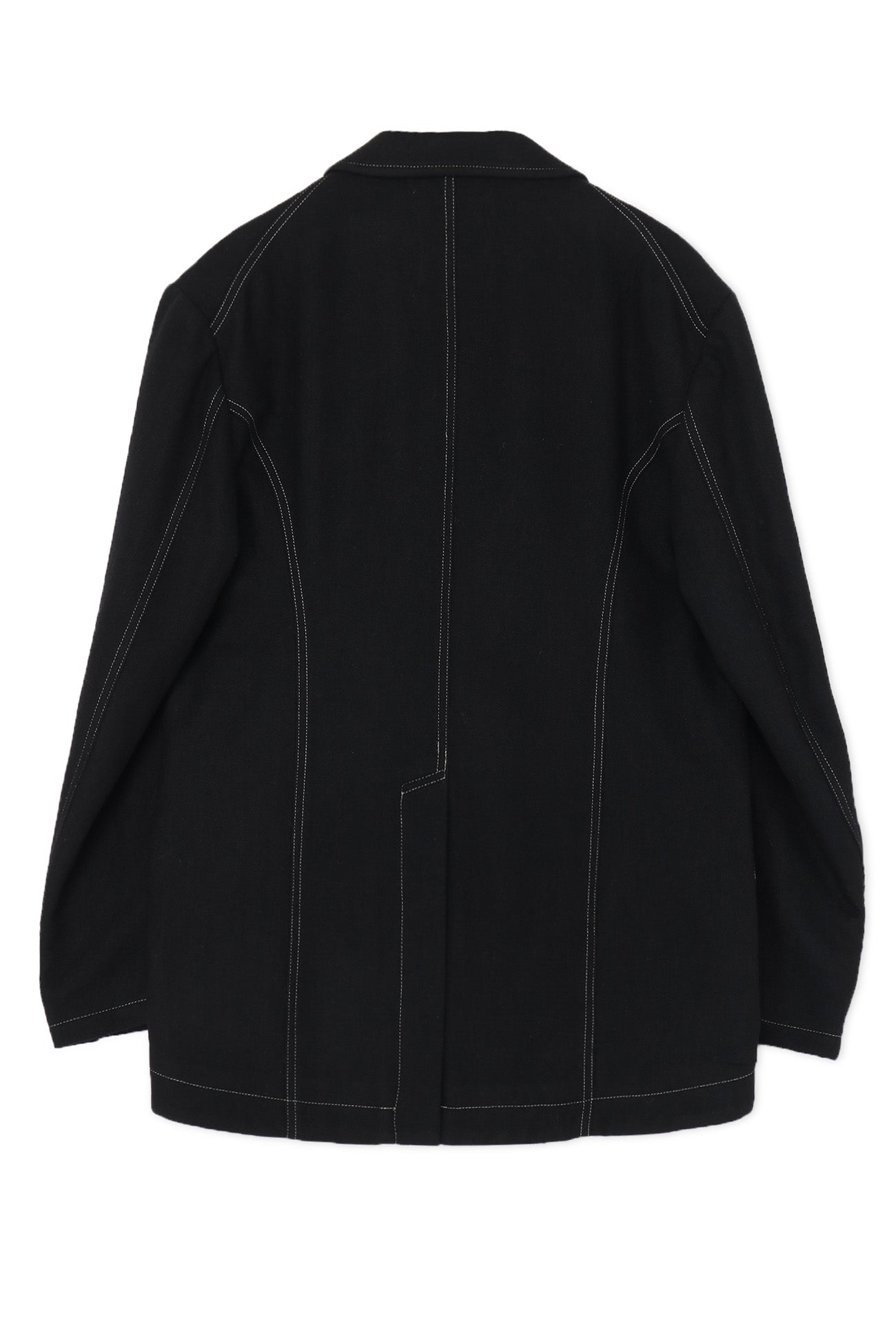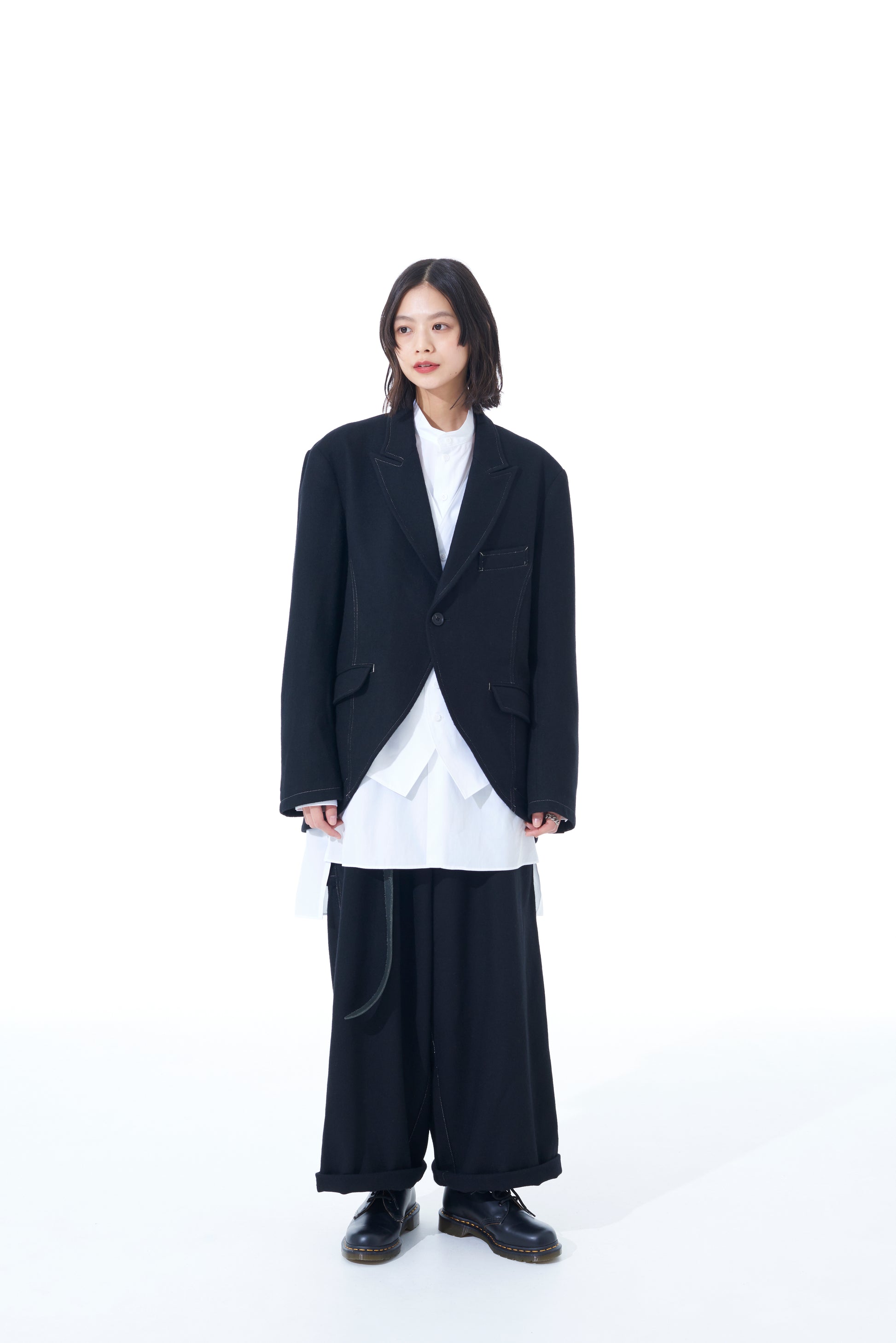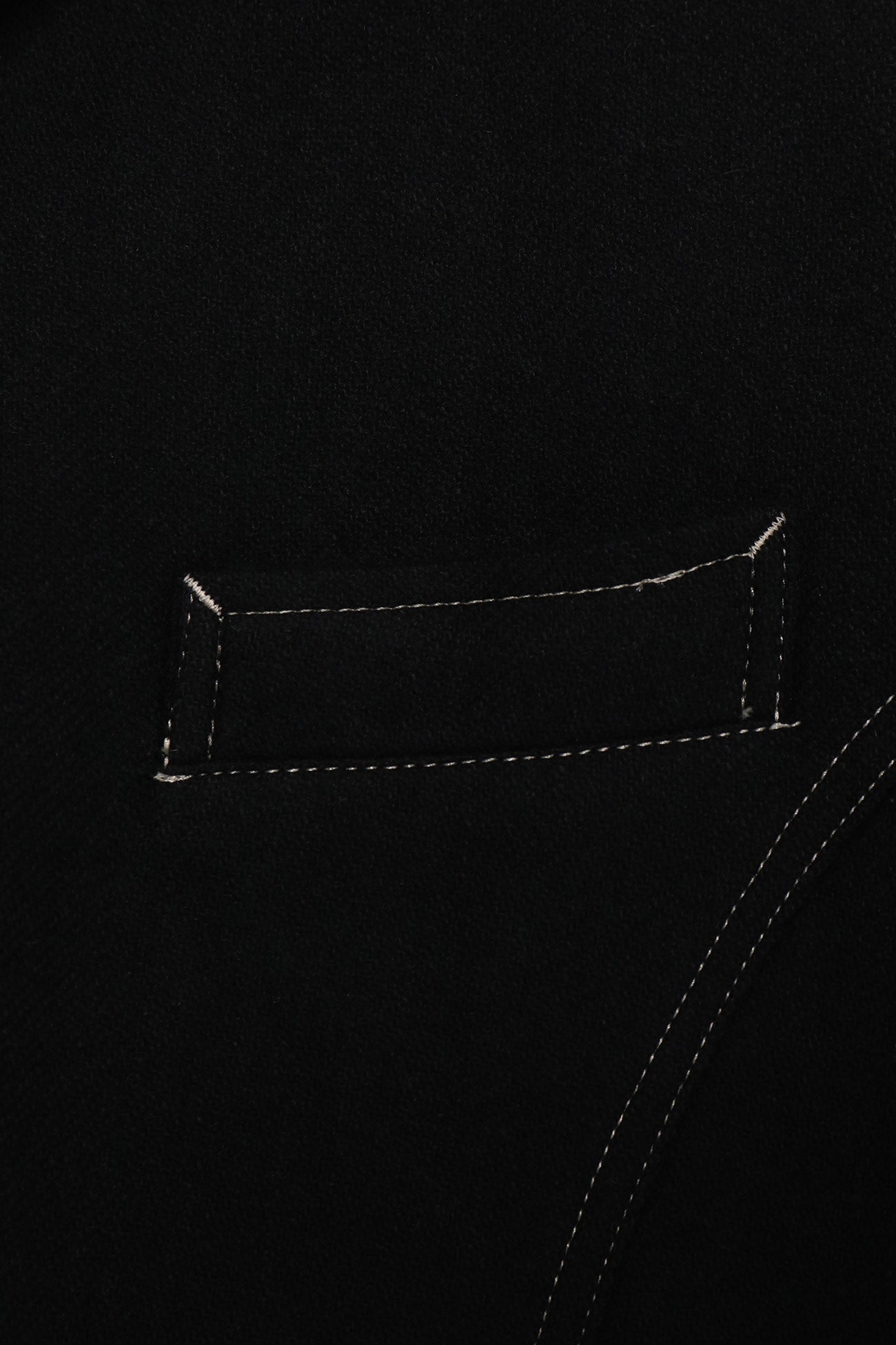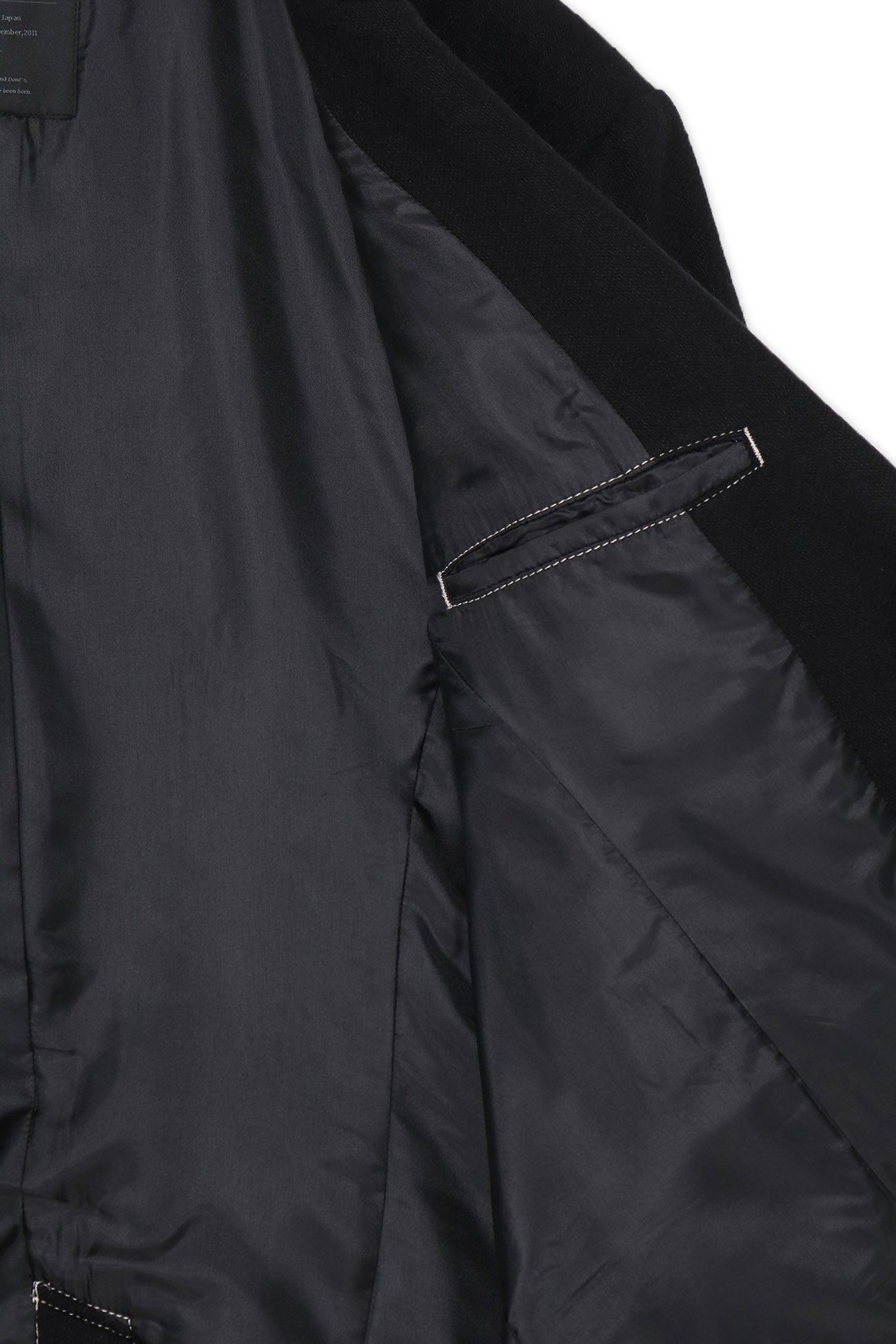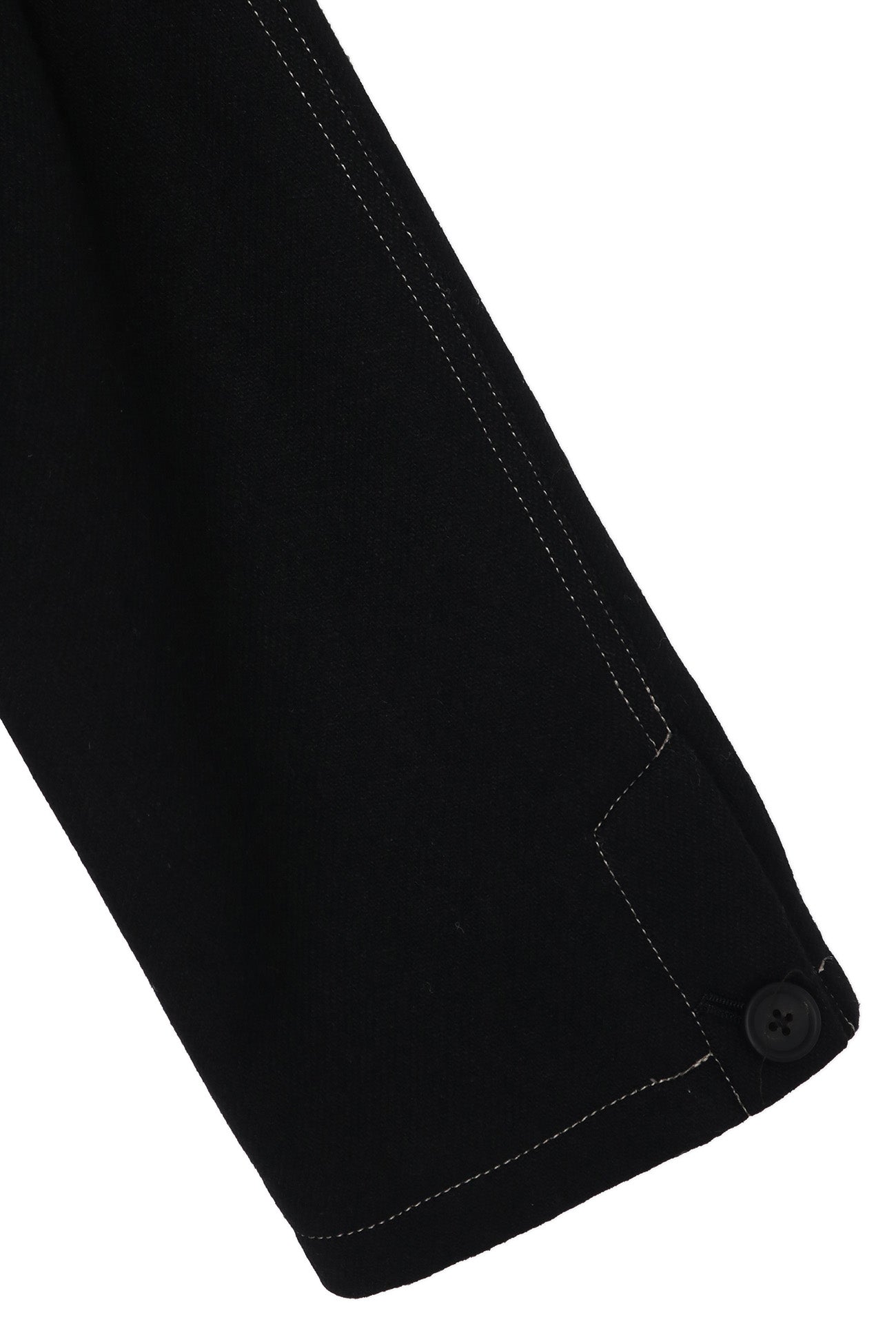 这款夹克采用尖领设计,单扣,圆形下摆,具有晨礼服的细节。其开放长度在塞入裤子时增强了腰线和裤子的轮廓,与长衬衫和上衣搭配良好,体现了Yohji Yamamoto的标志性风格。柔软水洗羊毛法兰绒增加了温暖和舒适感,使其成为结合正式和休闲单品的多功能单品。