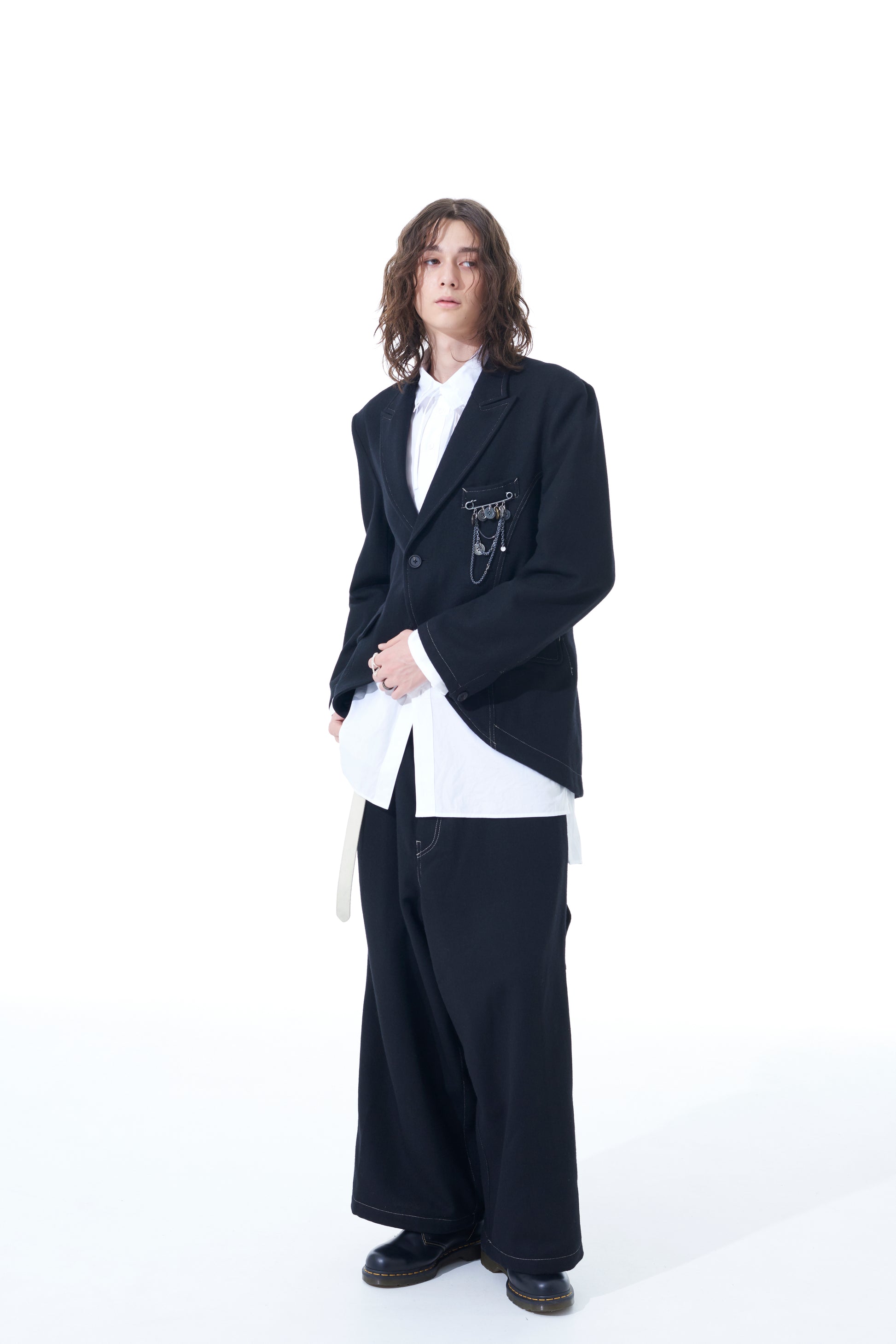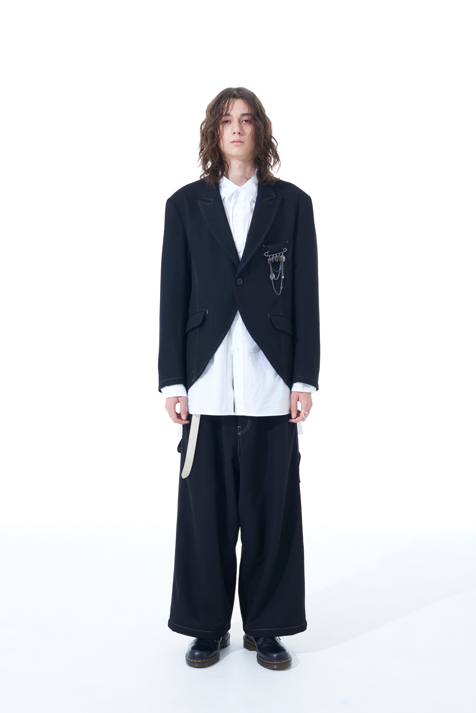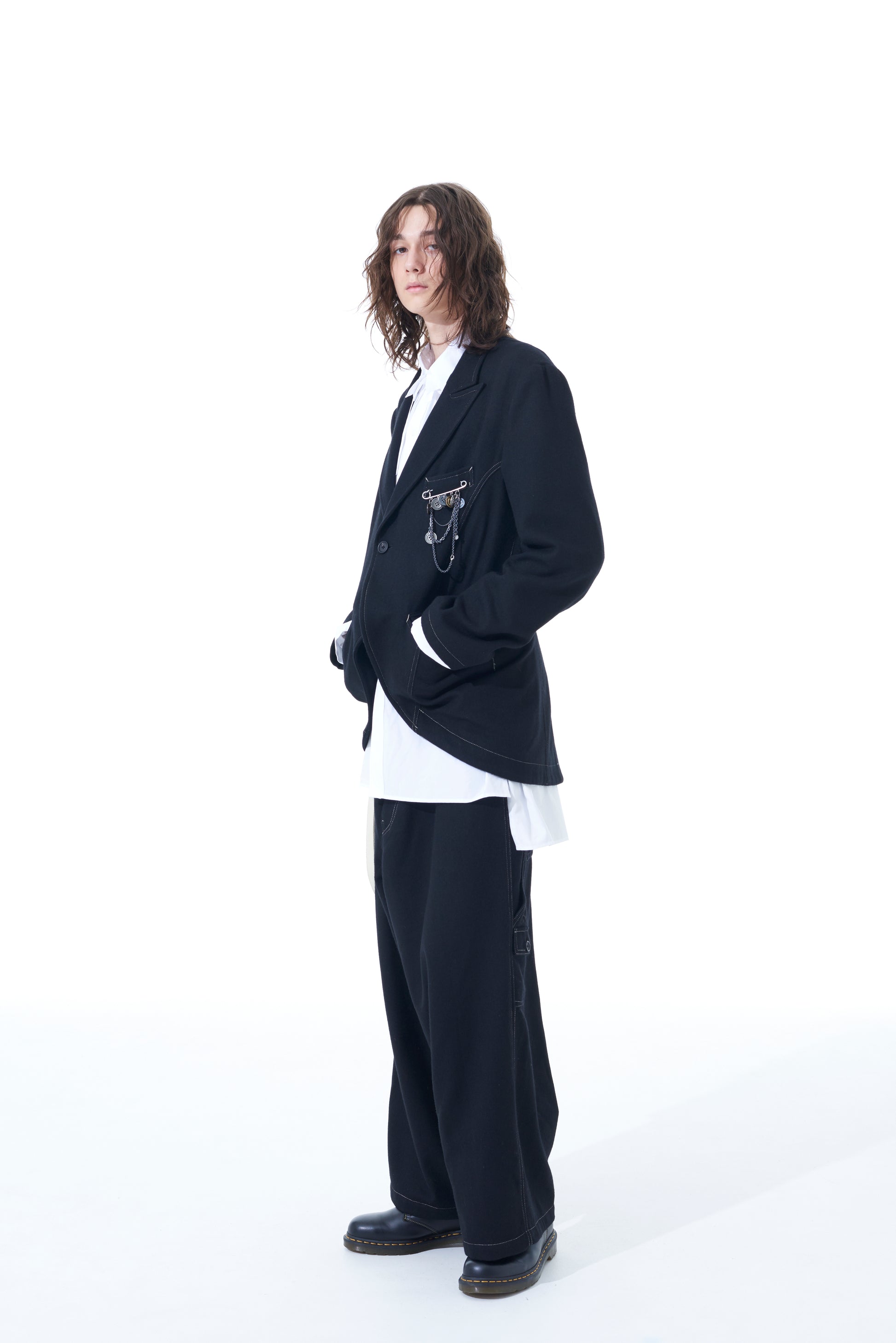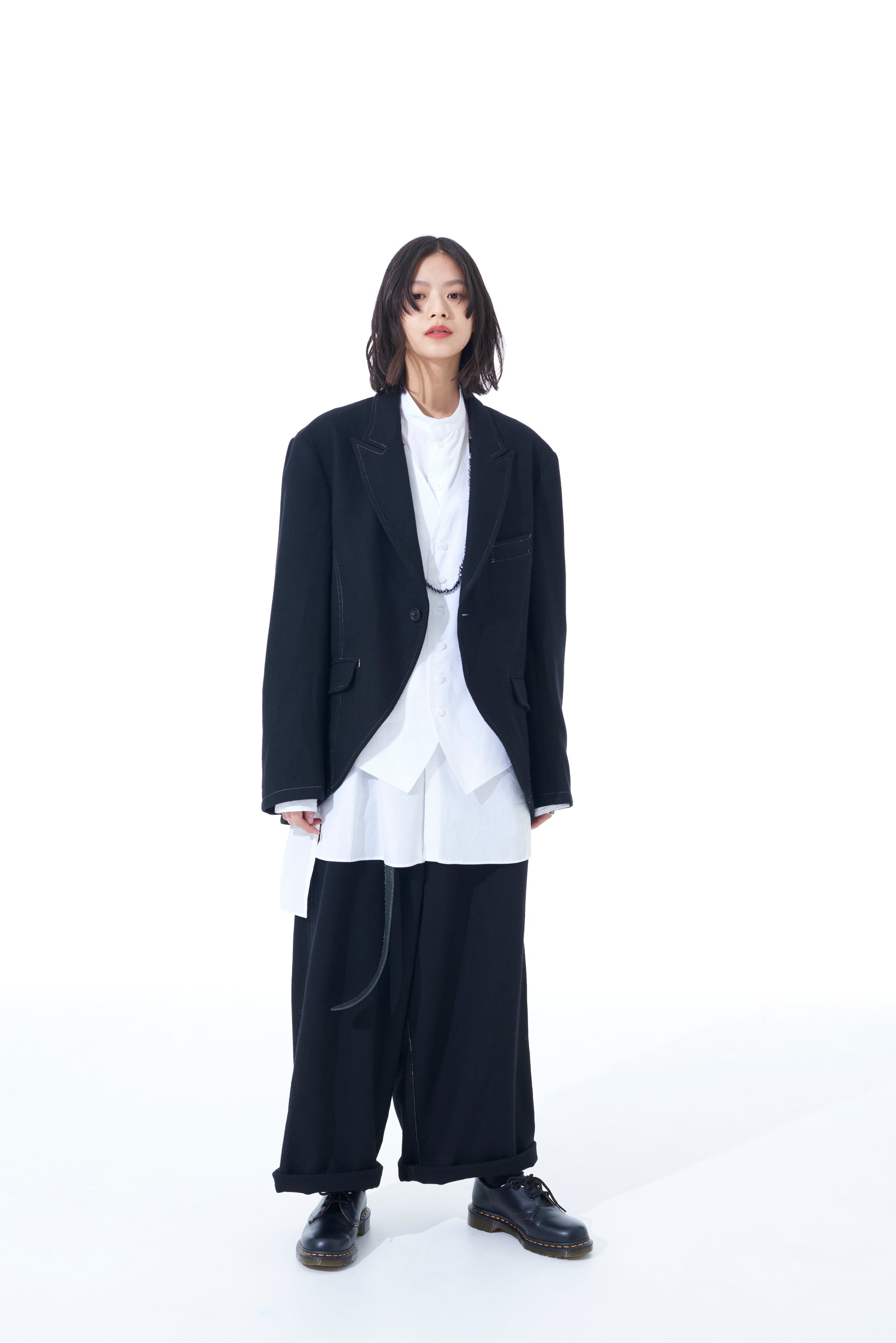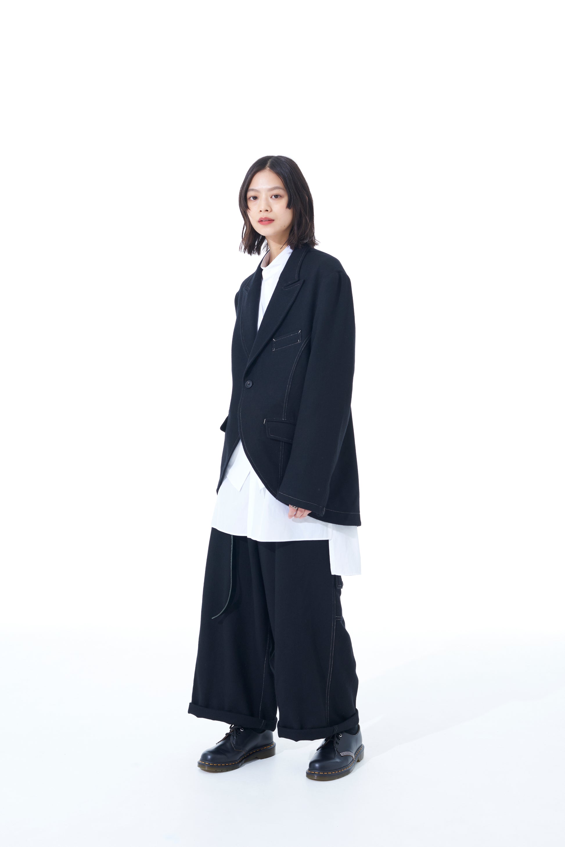 这款夹克采用尖领设计,单扣,圆形下摆,具有晨礼服的细节。其开放长度在塞入裤子时增强了腰线和裤子的轮廓,与长衬衫和上衣搭配良好,体现了Yohji Yamamoto的标志性风格。柔软水洗羊毛法兰绒增加了温暖和舒适感,使其成为结合正式和休闲单品的多功能单品。