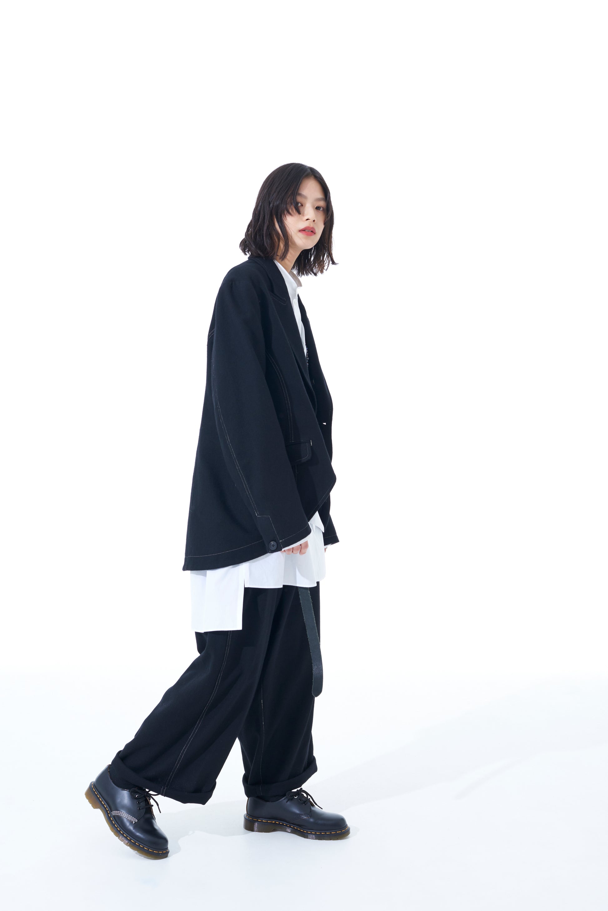 - 与长衬衫和上衣搭配的Yohji Yamamoto标志性风格。