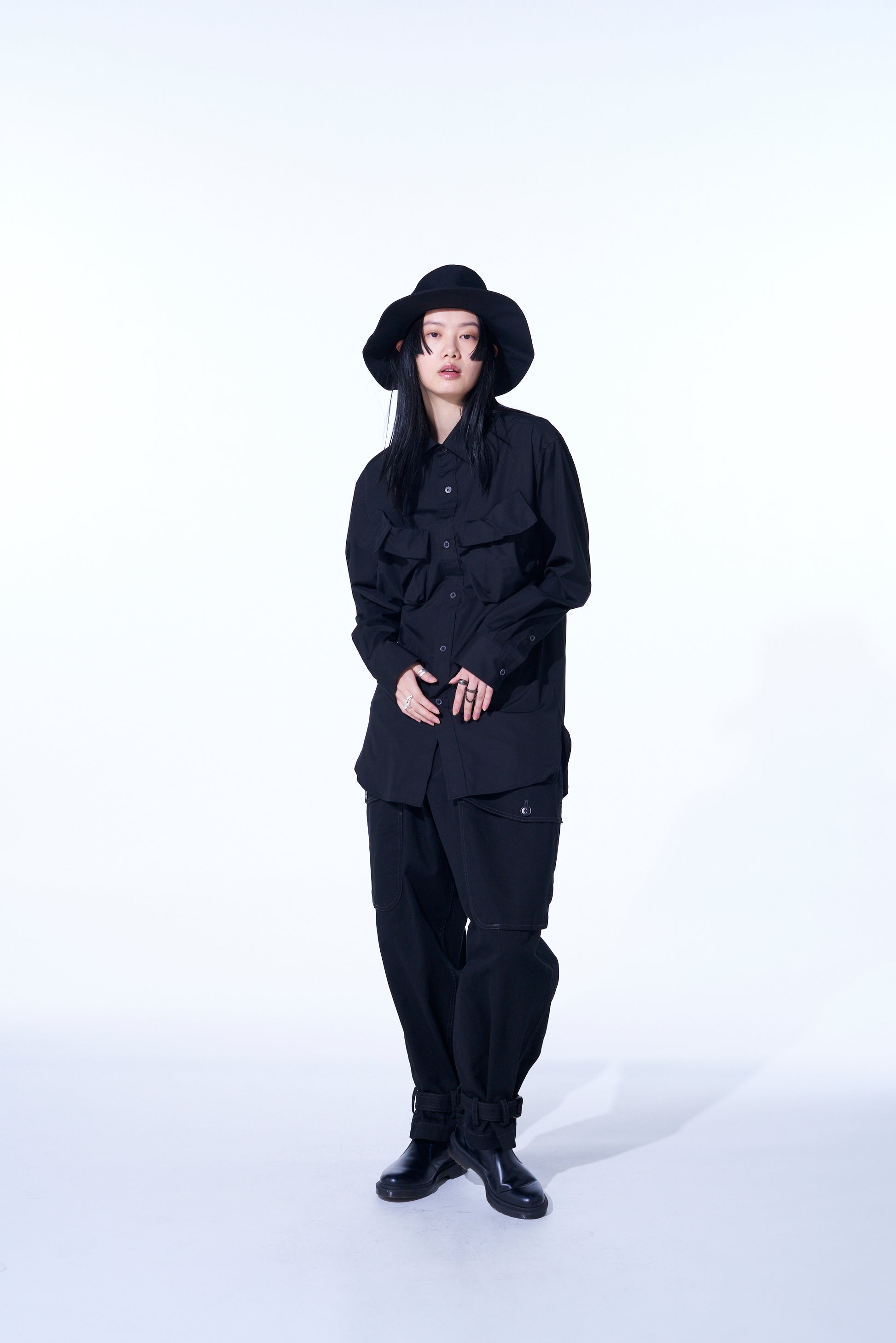 COTTON BROAD CLOTH DECONSTRUCTED CHEST POCKETS SHIRT