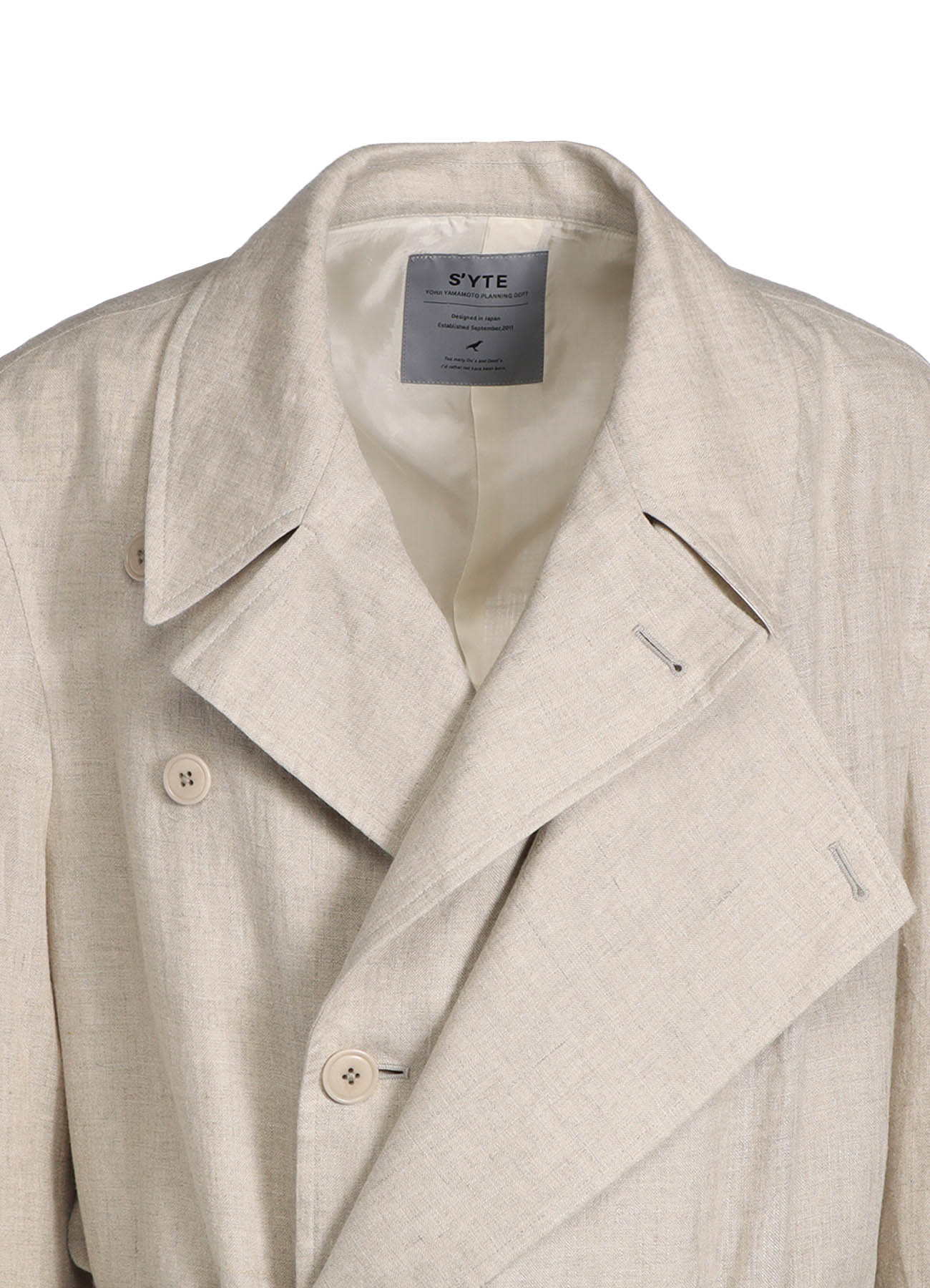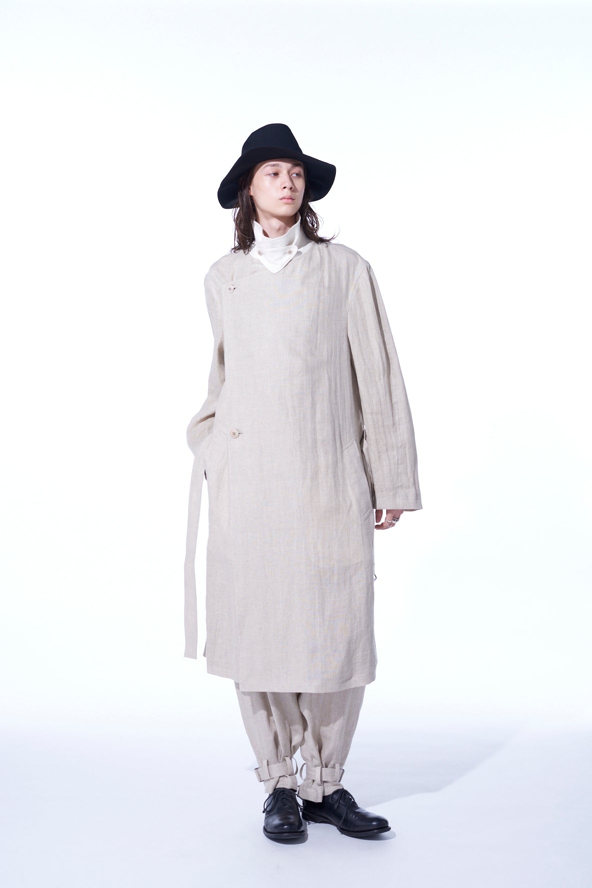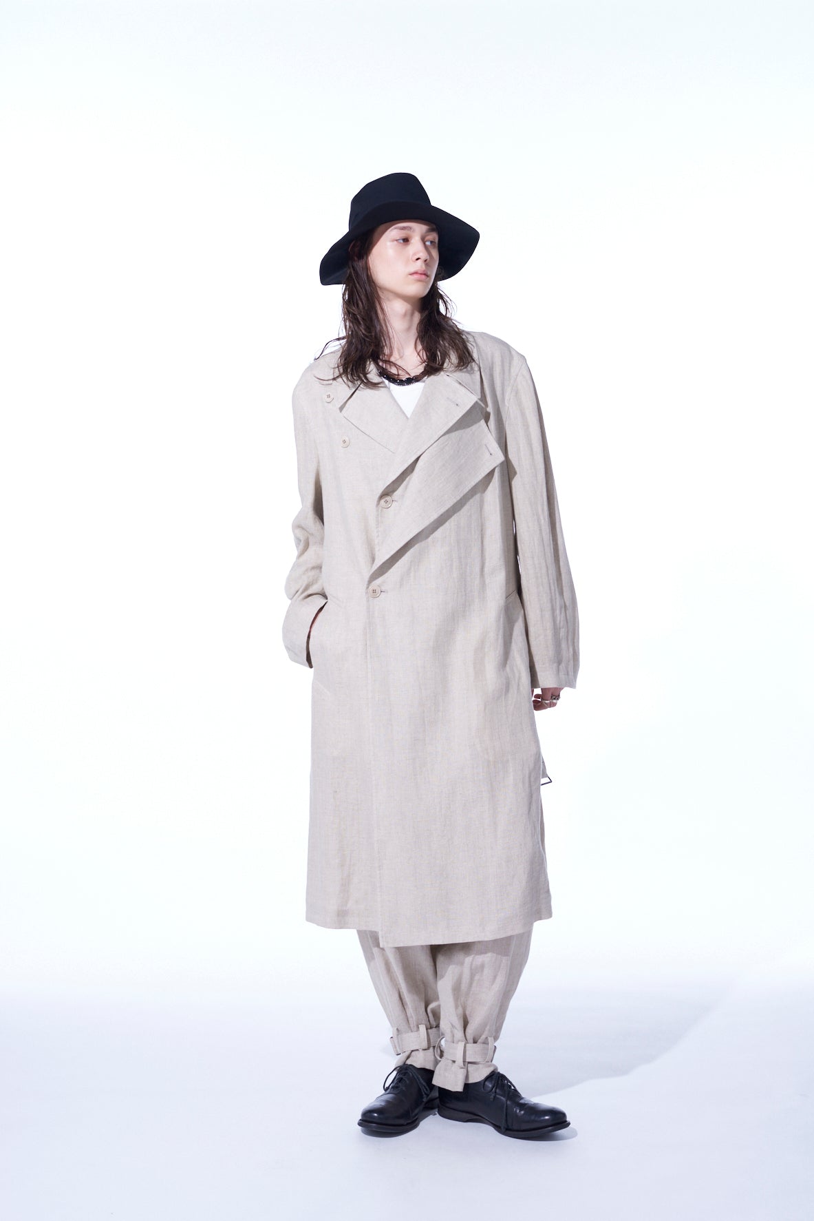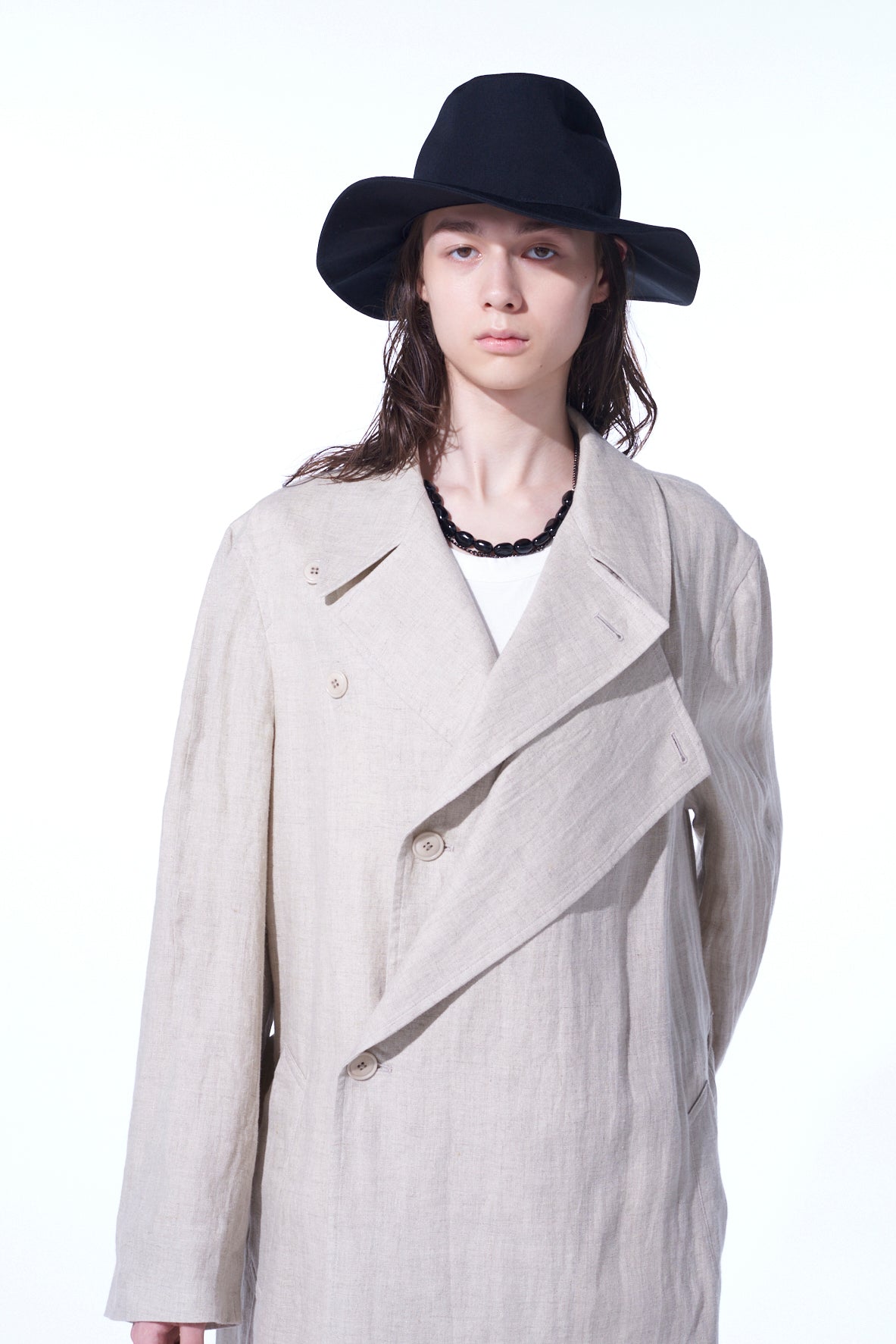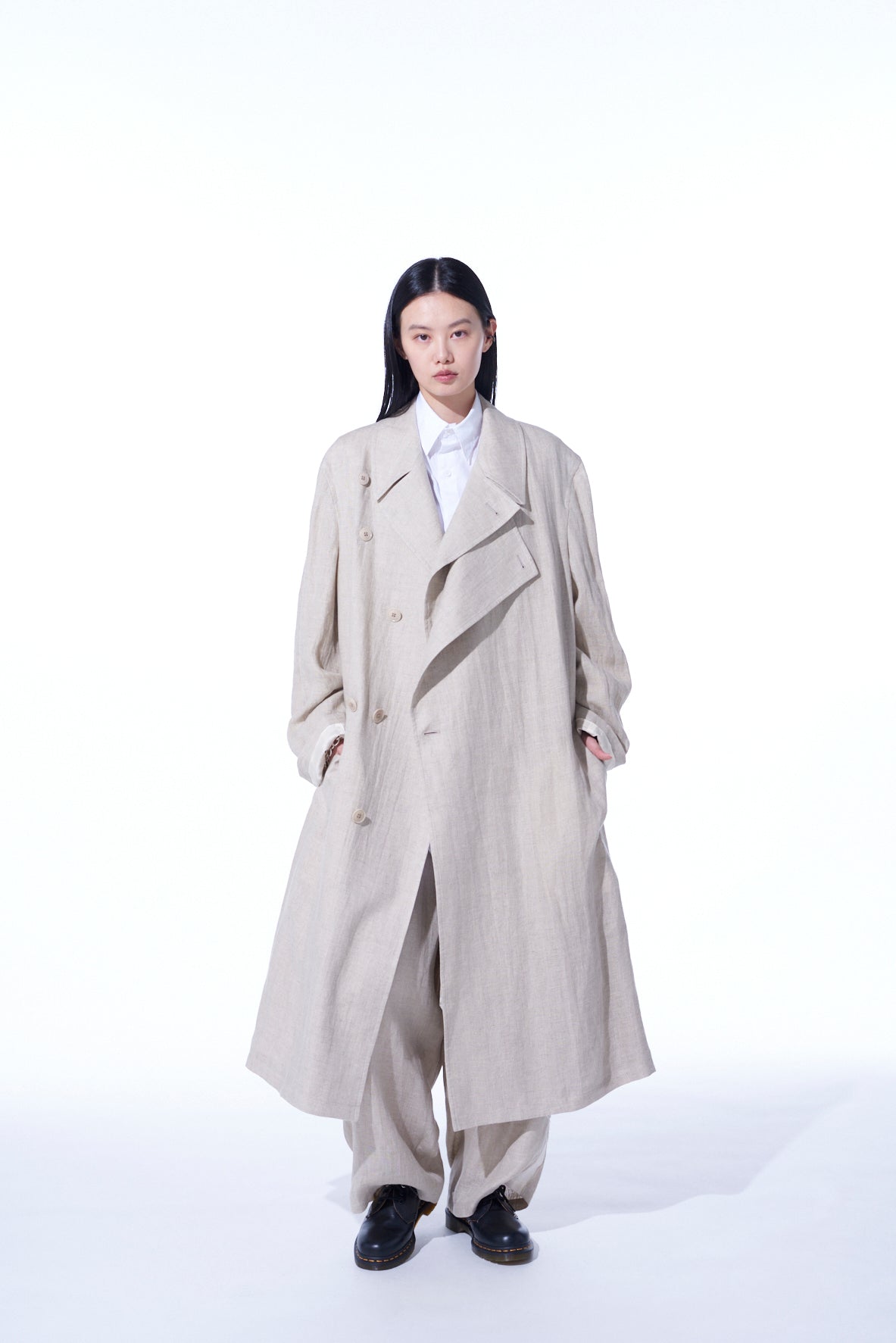 LINEN GAUZE DOUBLE-BREASTED COAT WITH DOUBLE-TAILORED LEFT FRONT