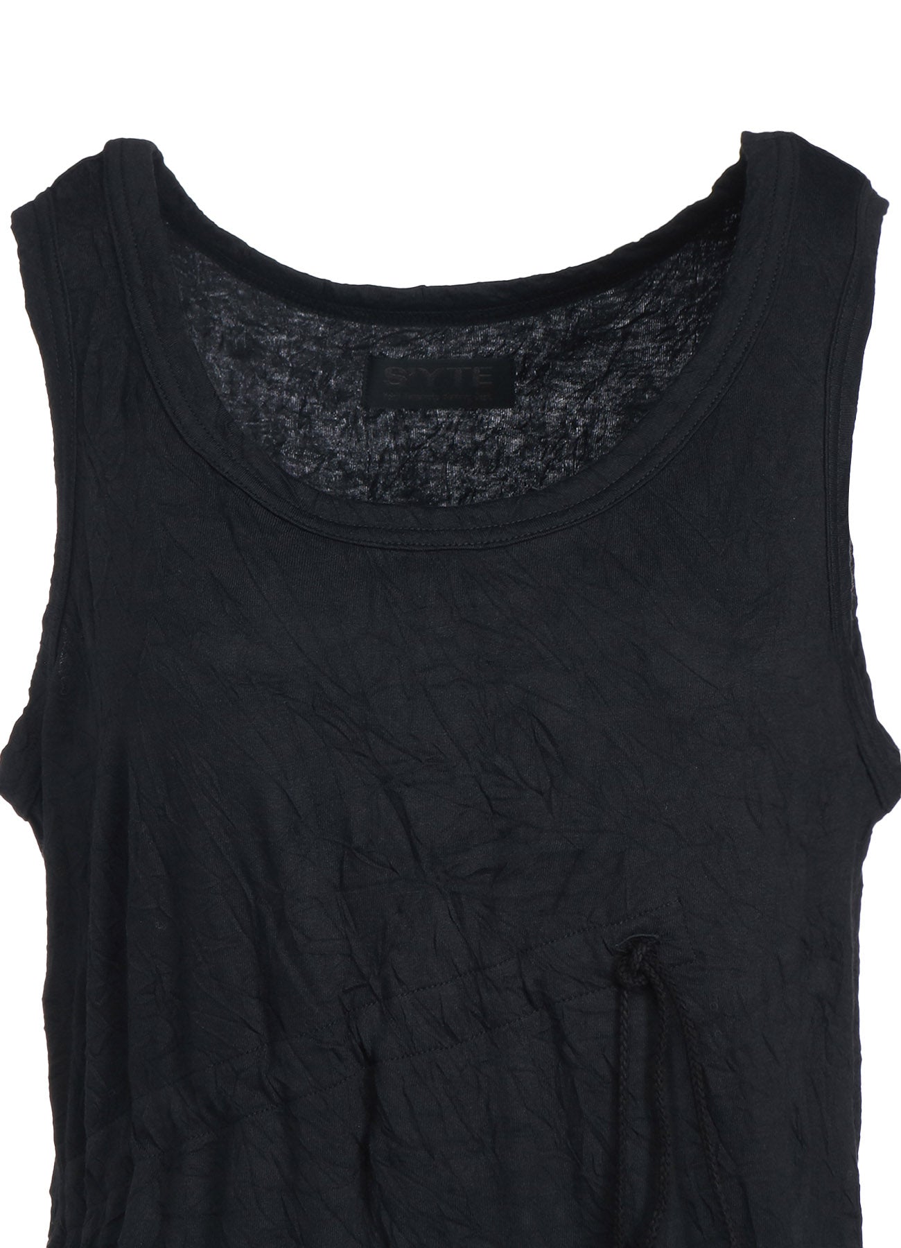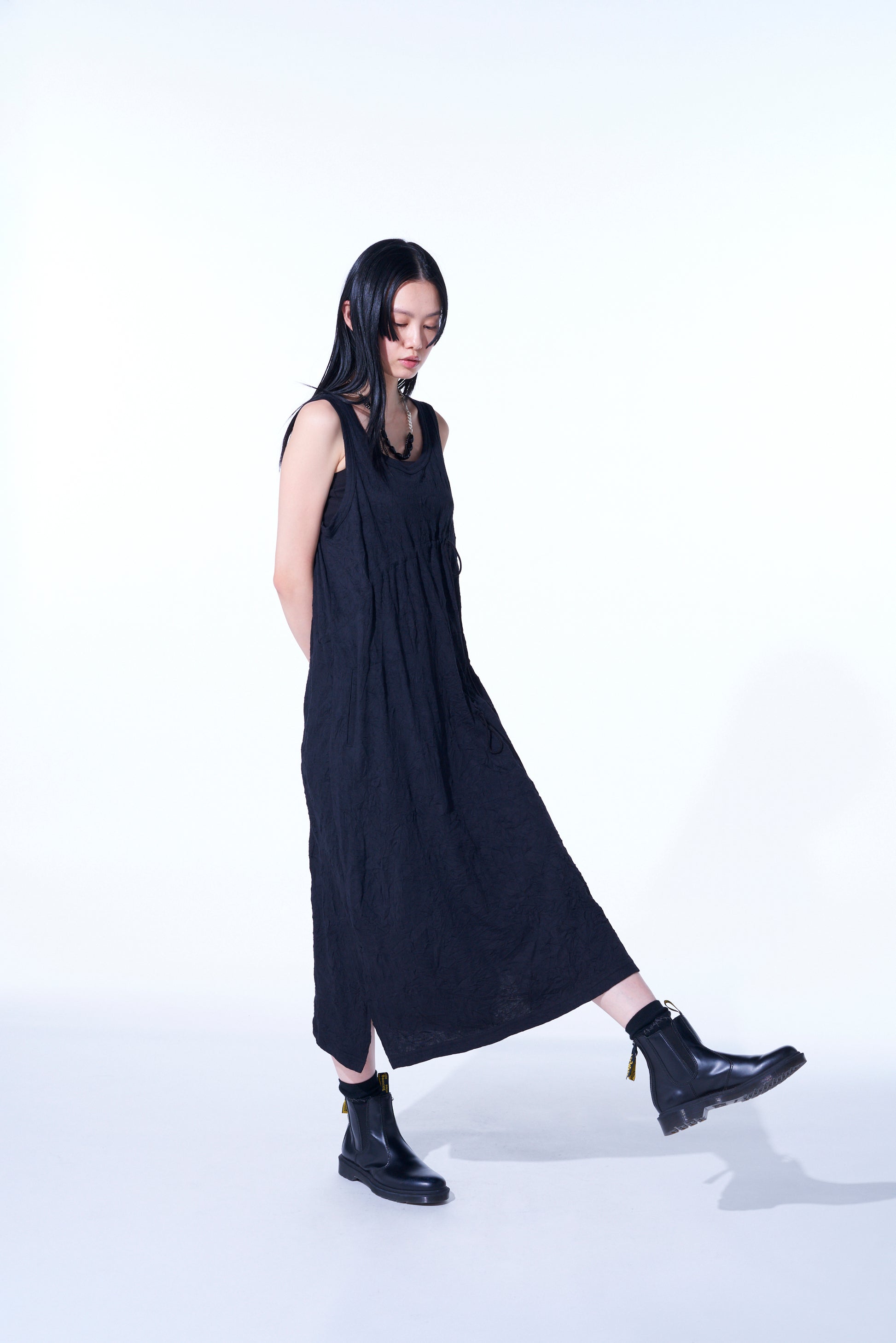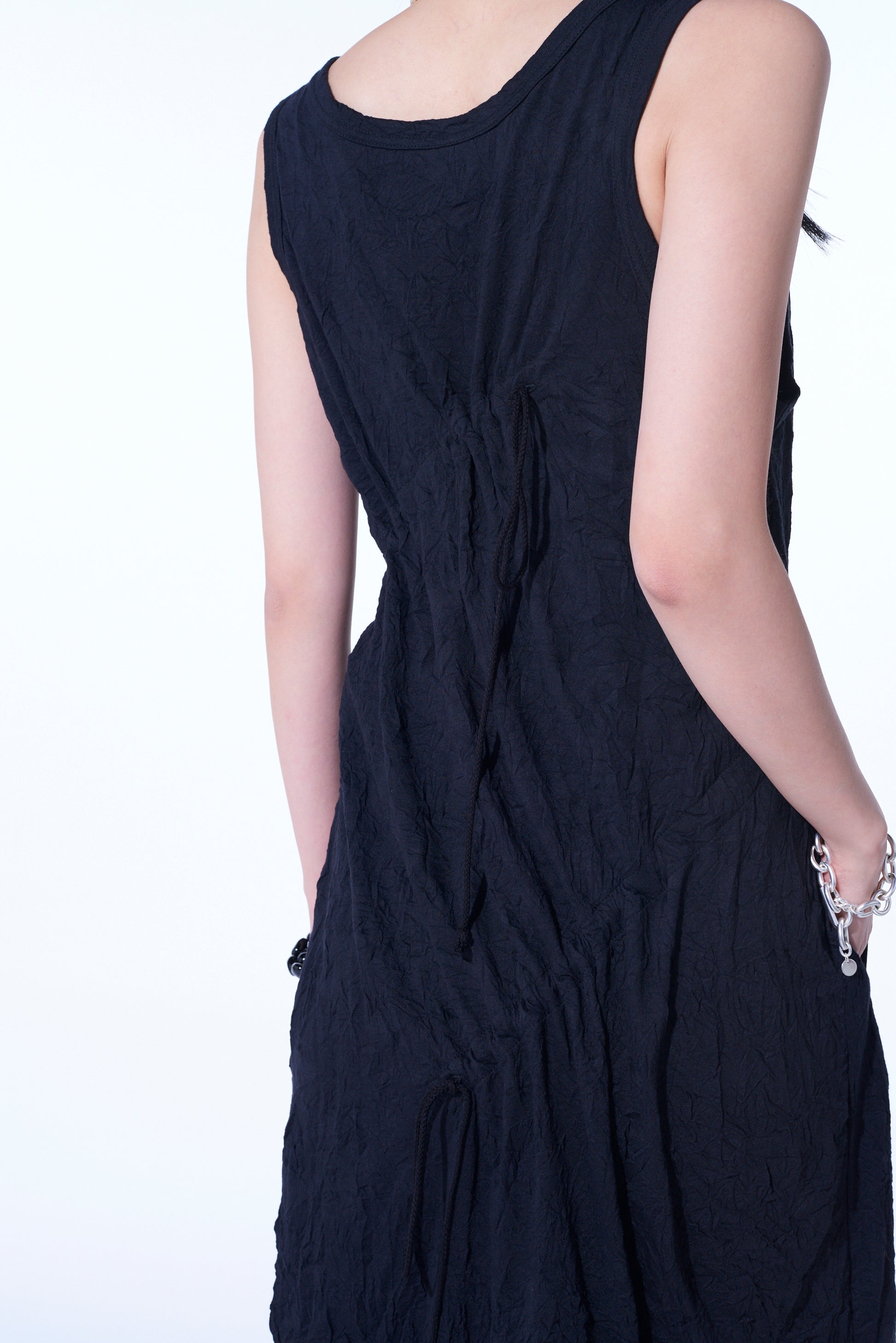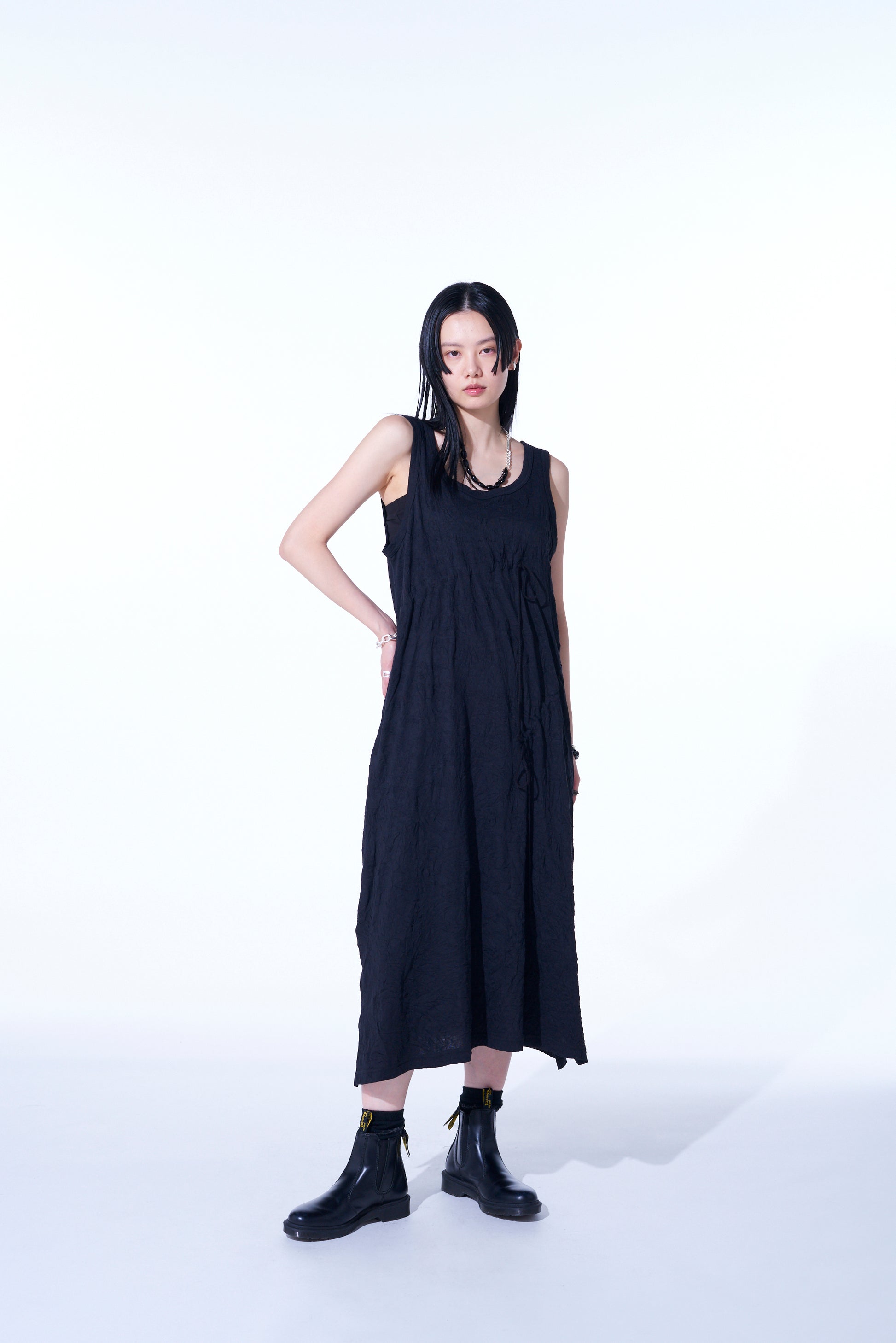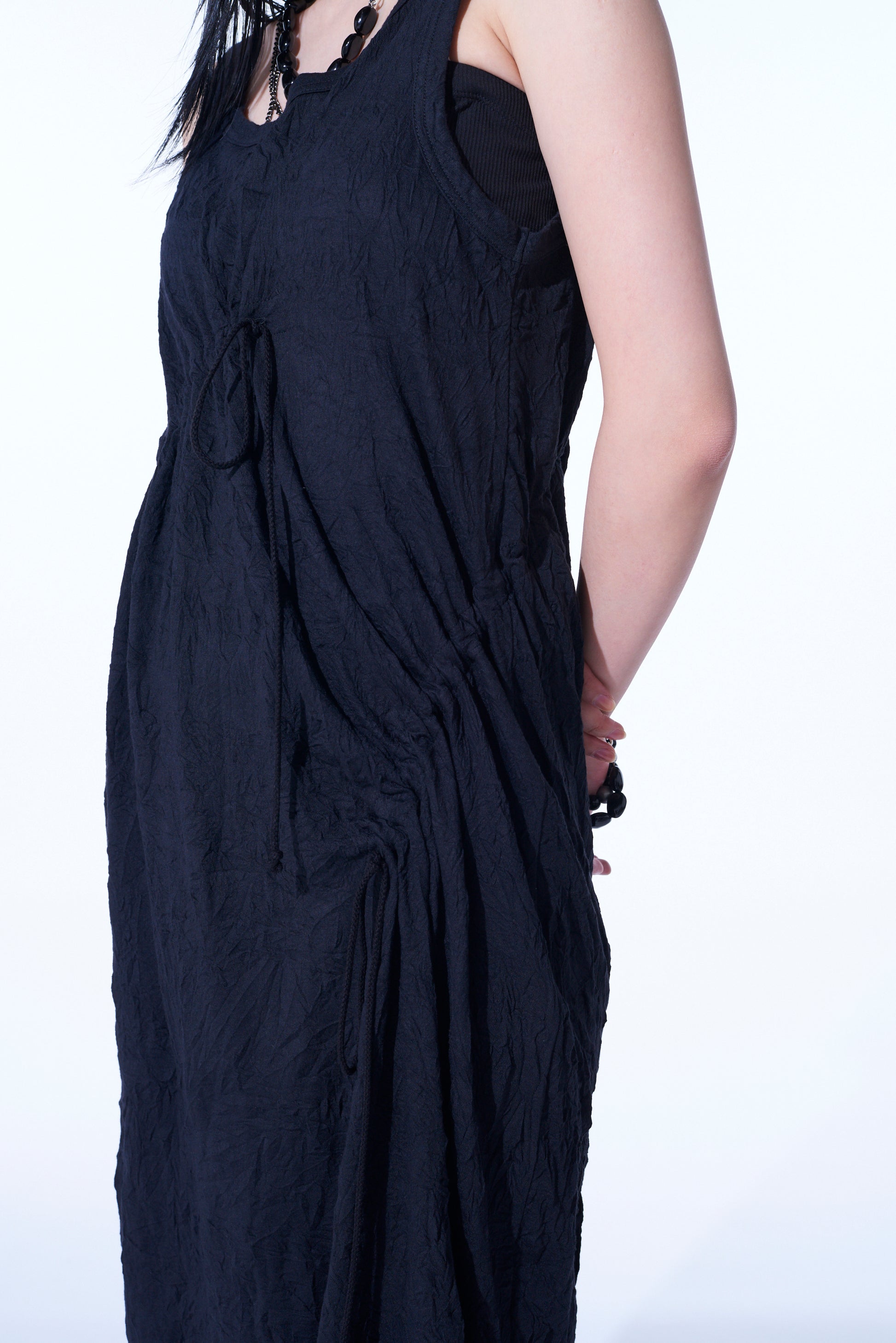 CATCH-WASHER FINISH COTTON JERSEY STRINGS GATHERED DRESS