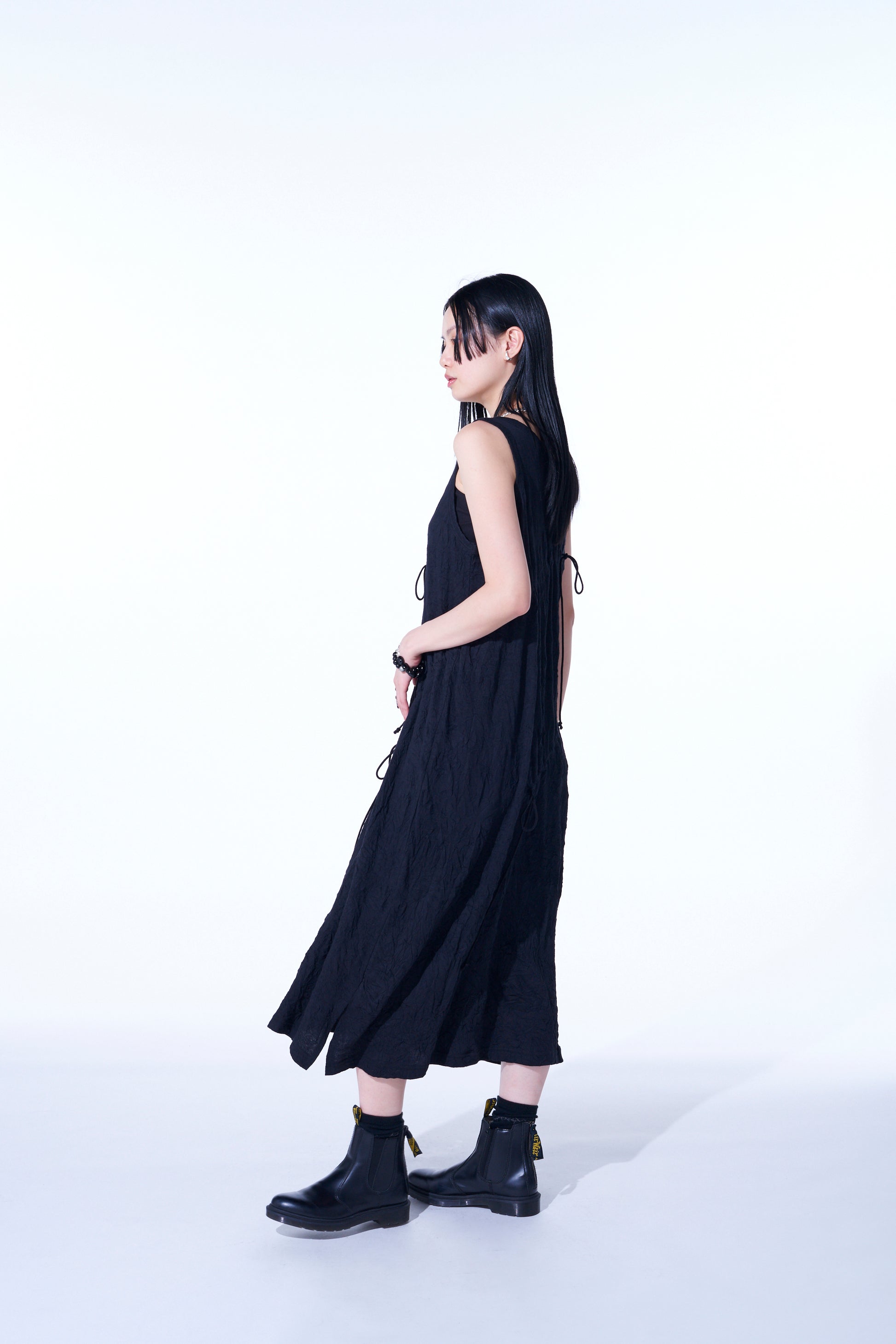 这款标志性的上衣裙采用三维皱纹纹理,通过强力加工在面料阶段实现。结合聚酯纤维的稳定皱纹效果与棉质的舒适性,旨在满足重度使用的需求。面料独特的阴影增强了其个性,使其成为一件引人注目的单品。