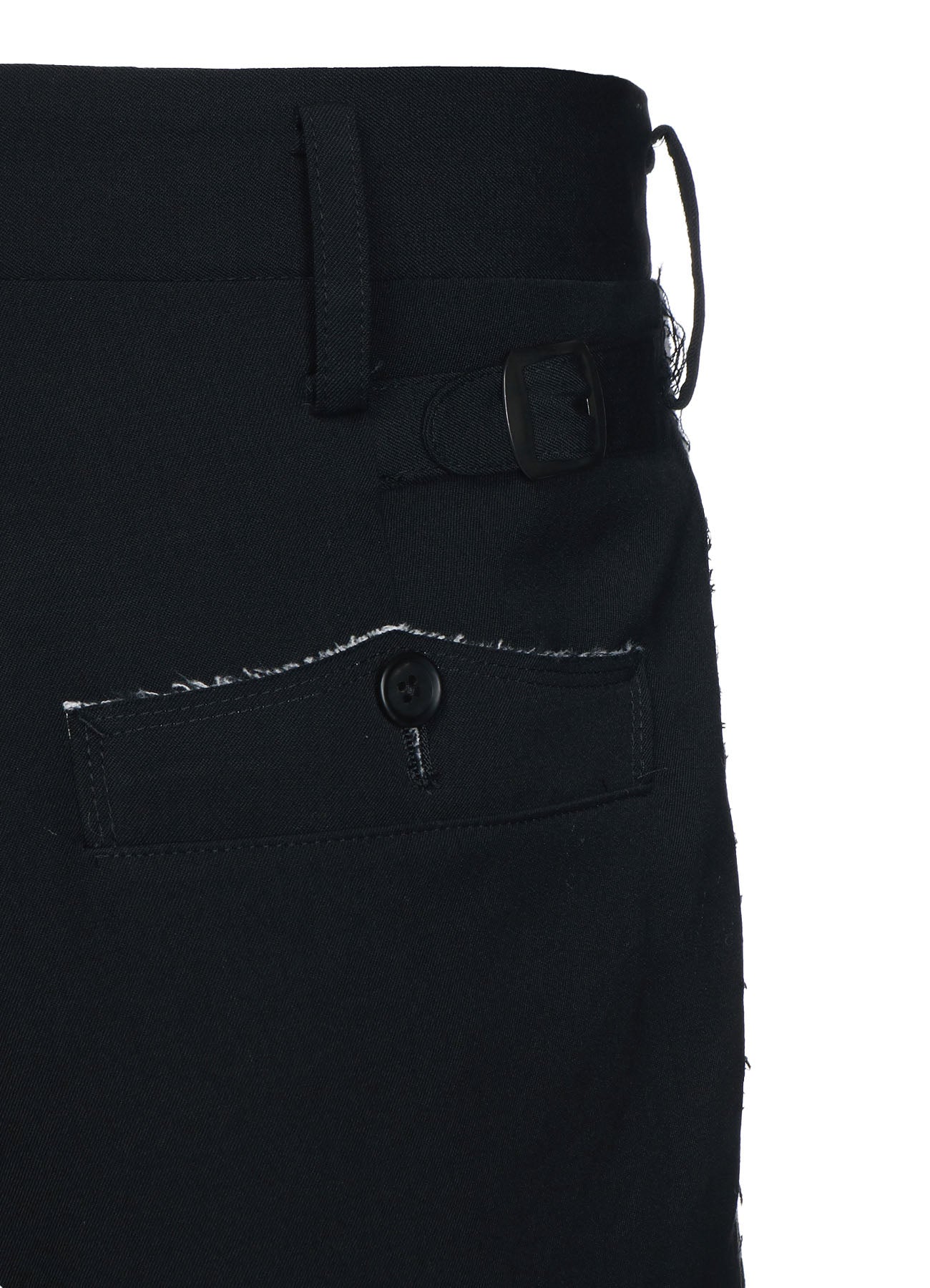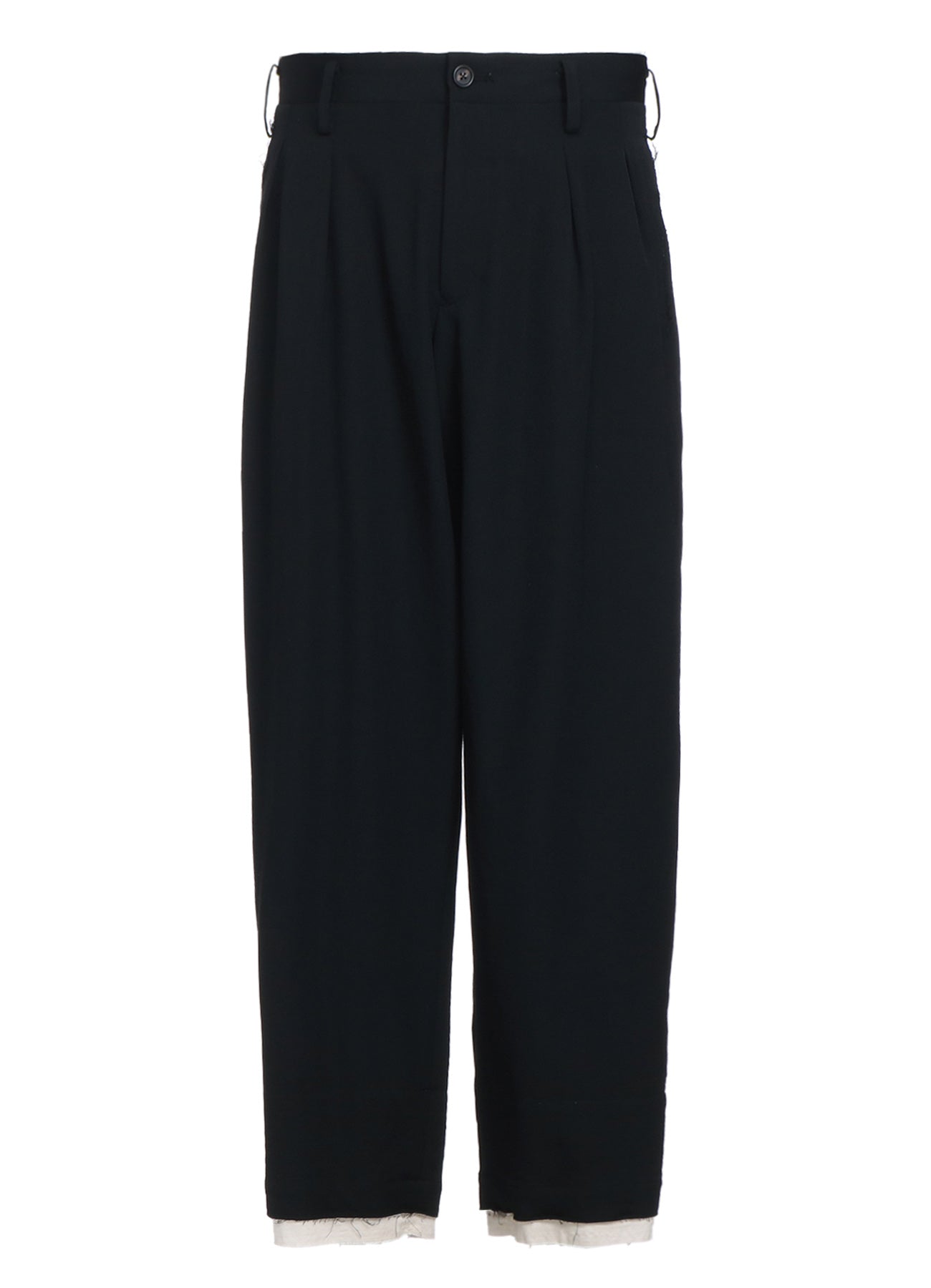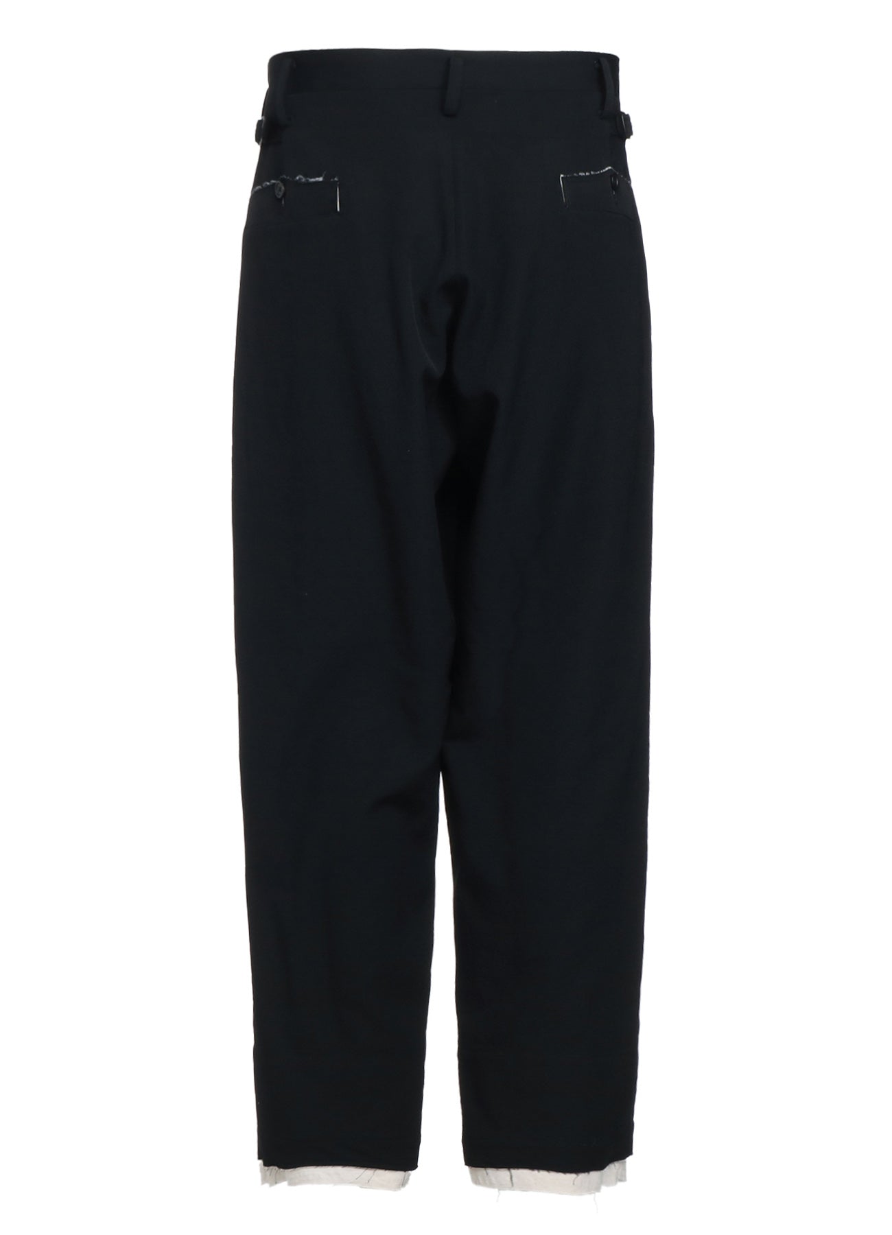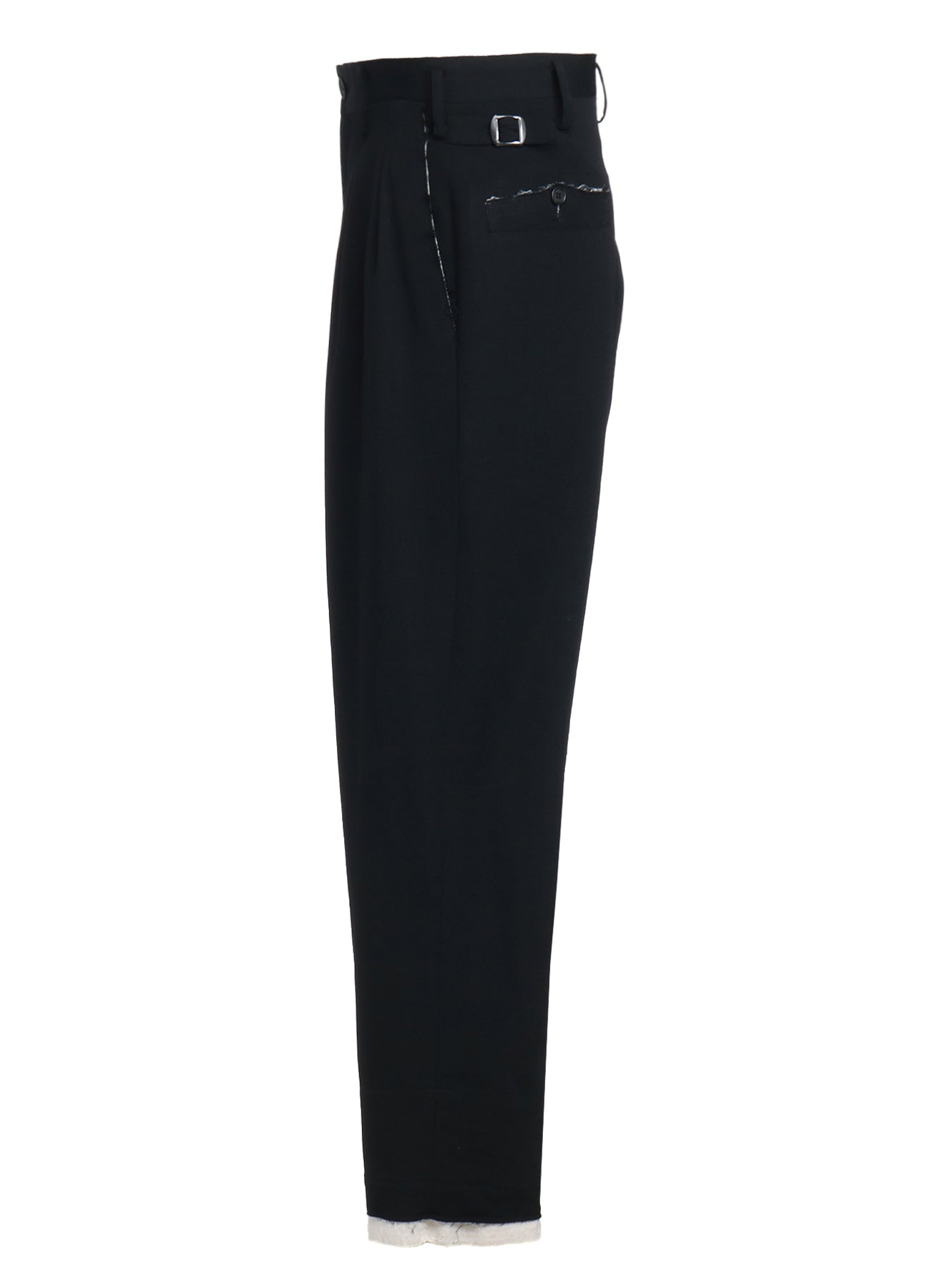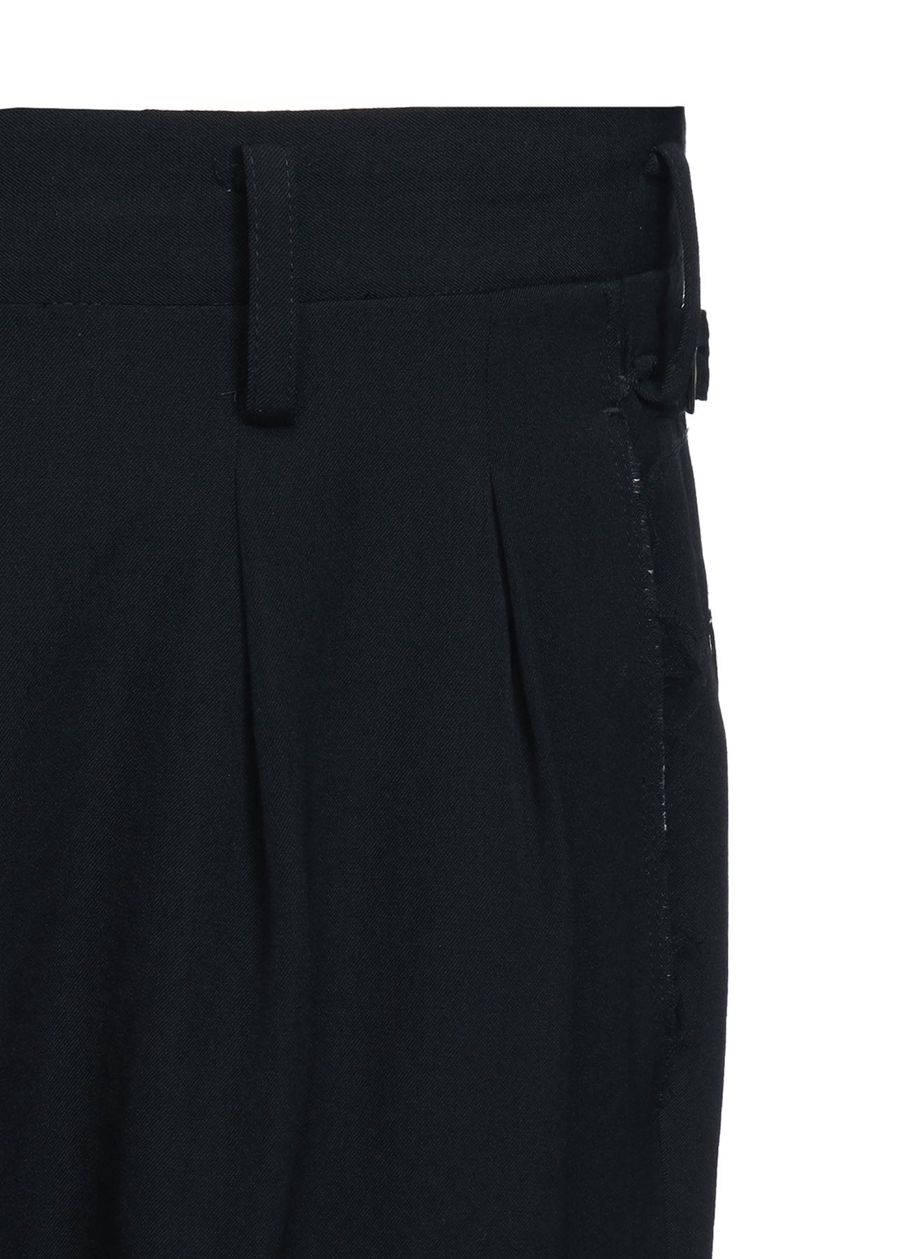 WASHER FINISHED WOOL GABARDINE 2-TUCK PANTS WITH CUT-OUT HEM DESIGN