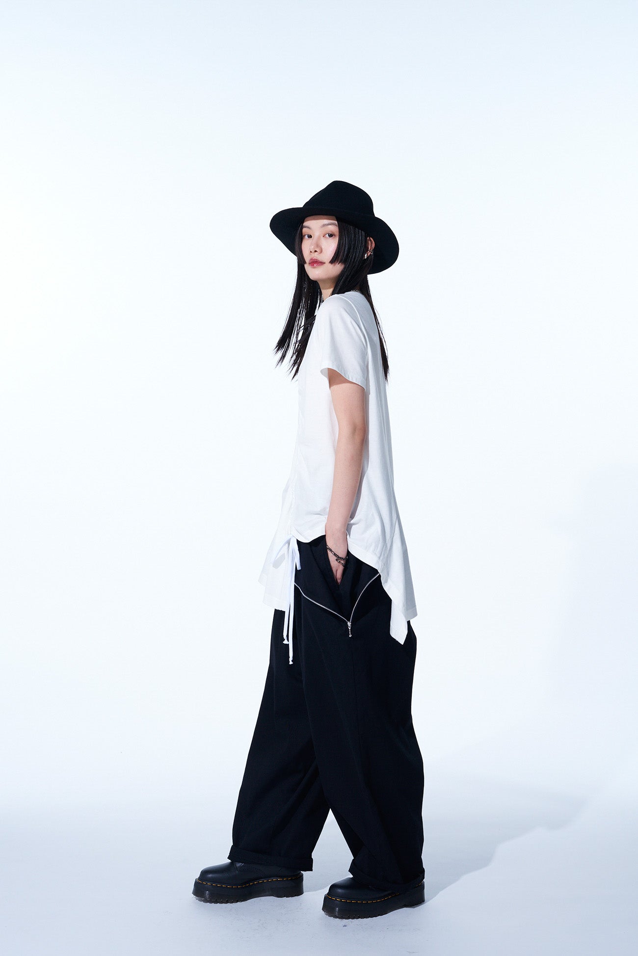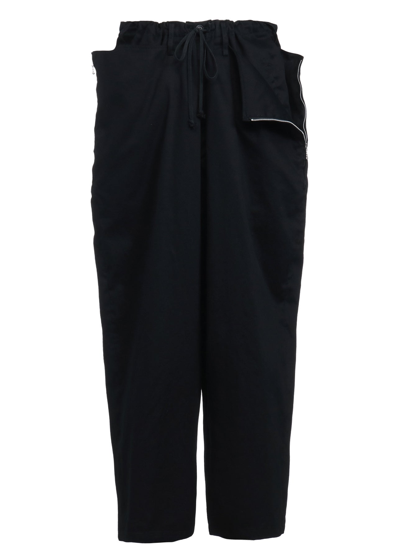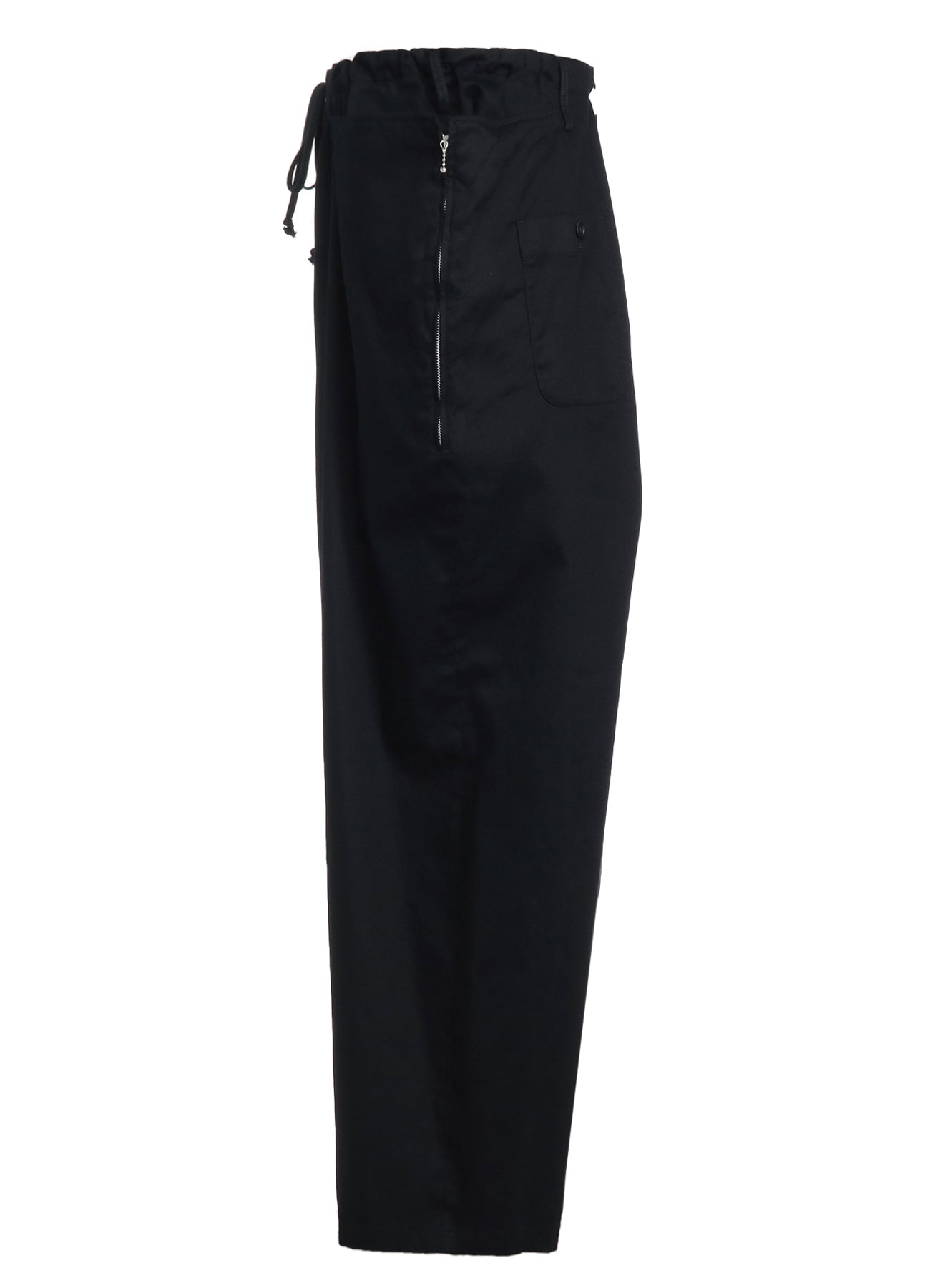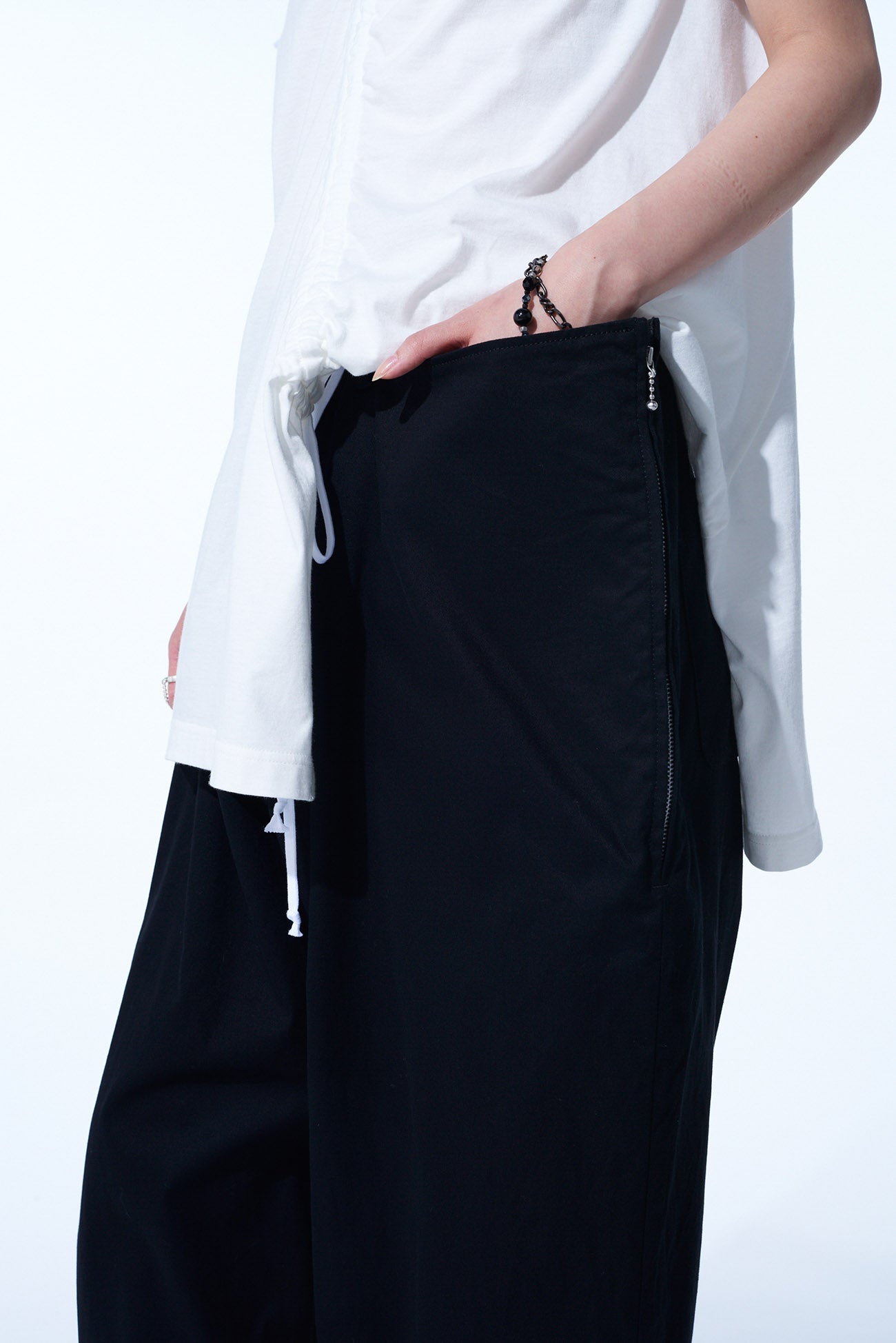 COTTON TWILL DRAWSTRING WIDE PANTS WITH ZIP SIDE POCKET