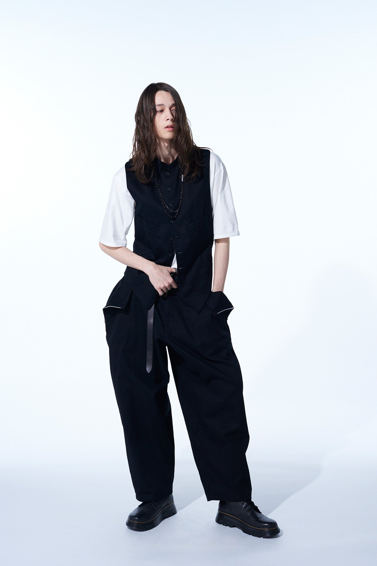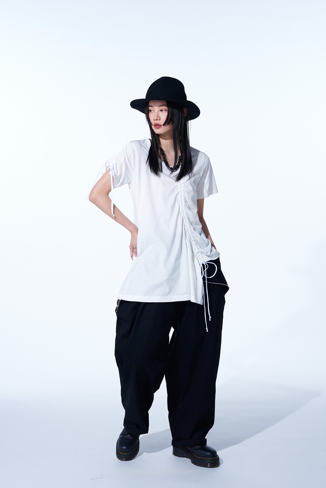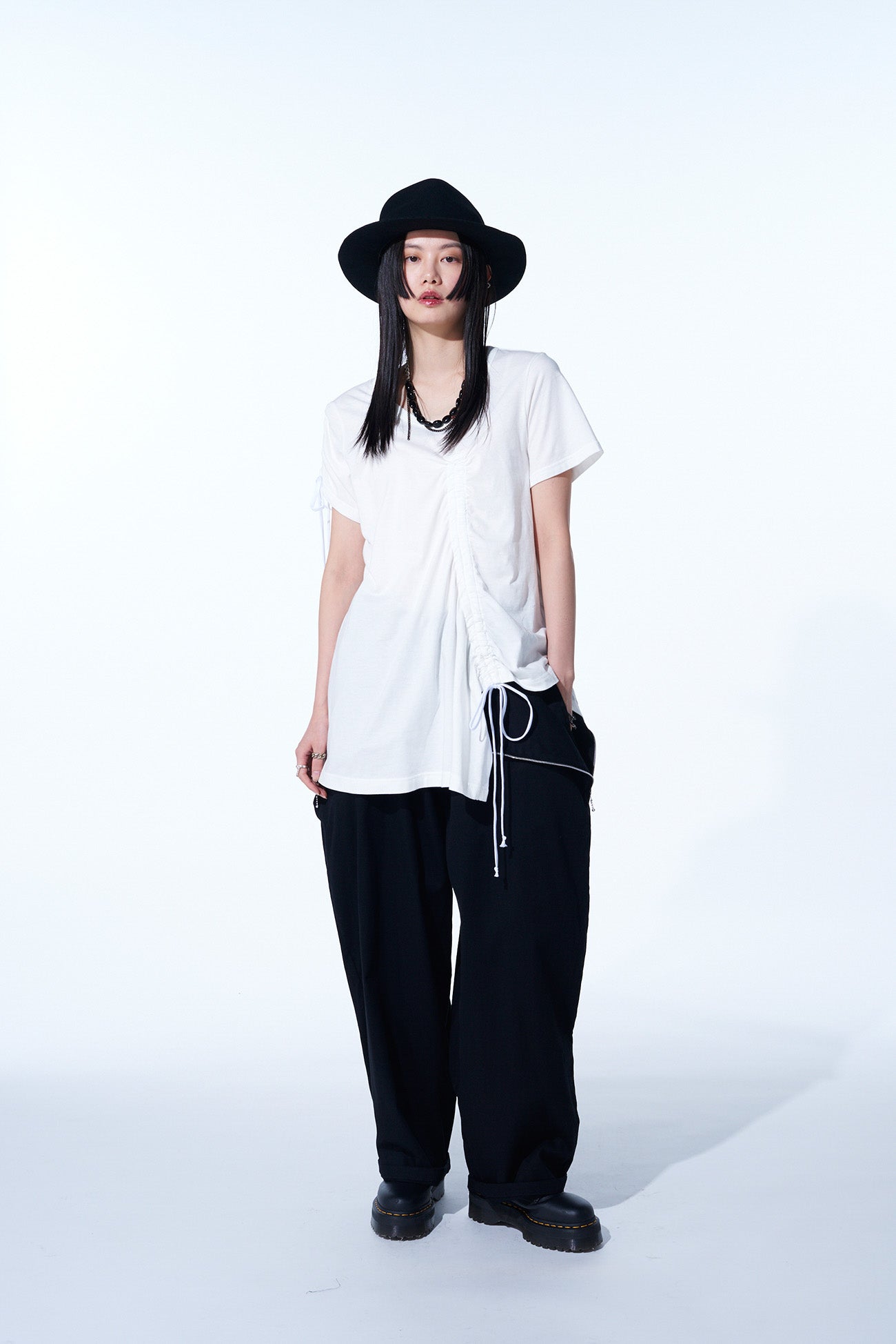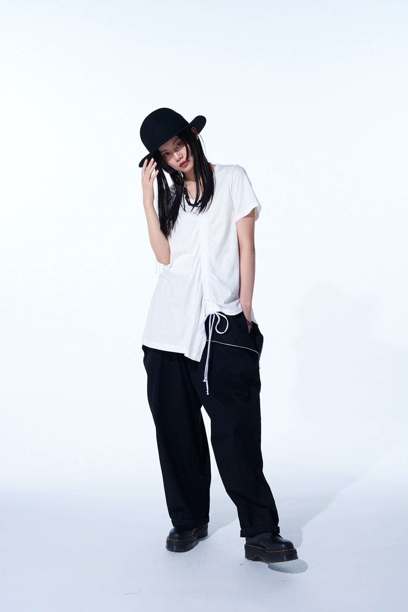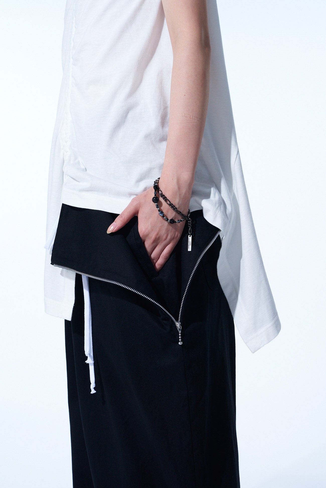 COTTON TWILL DRAWSTRING WIDE PANTS WITH ZIP SIDE POCKET
