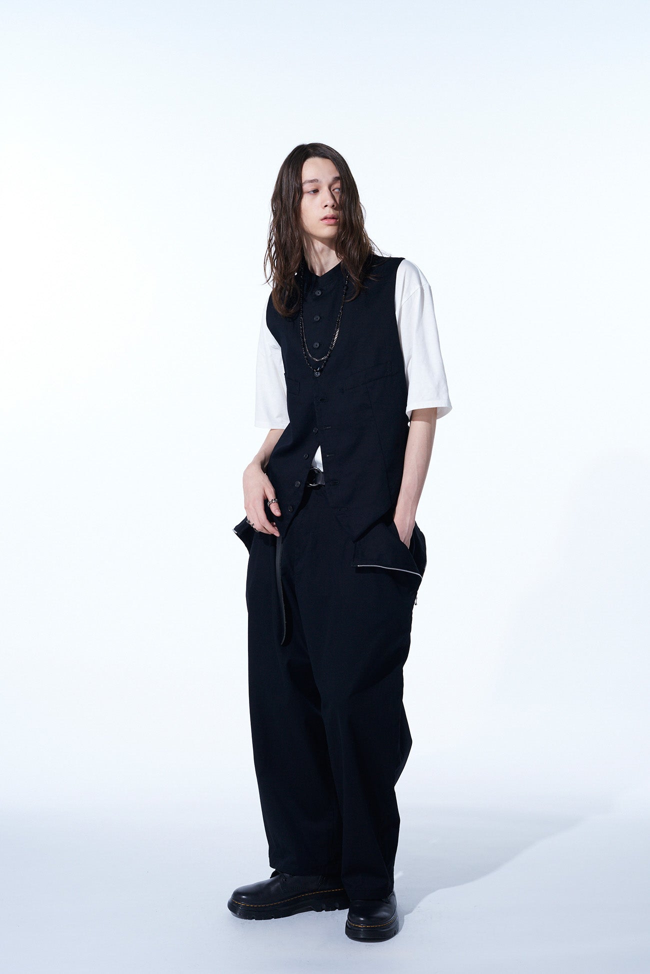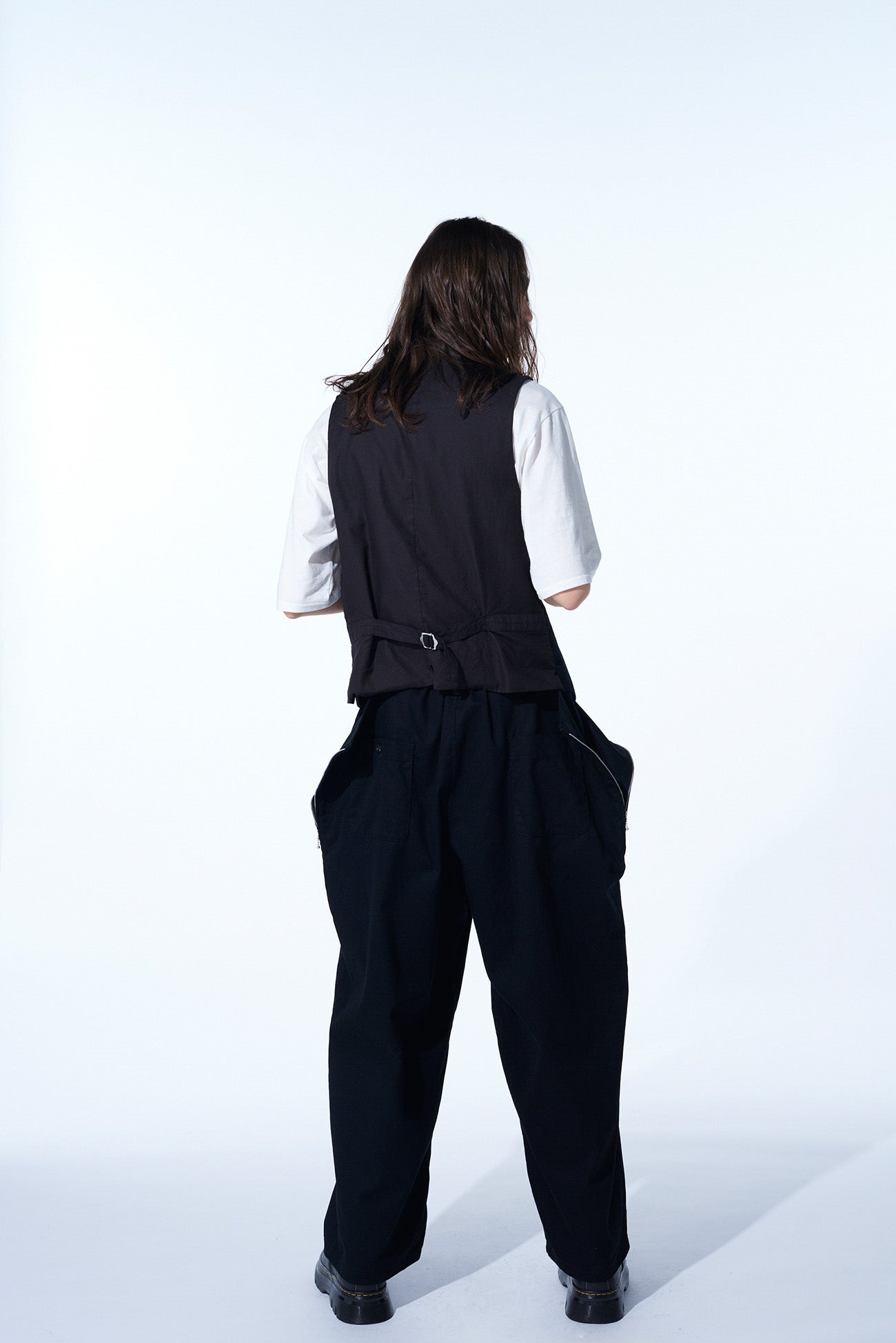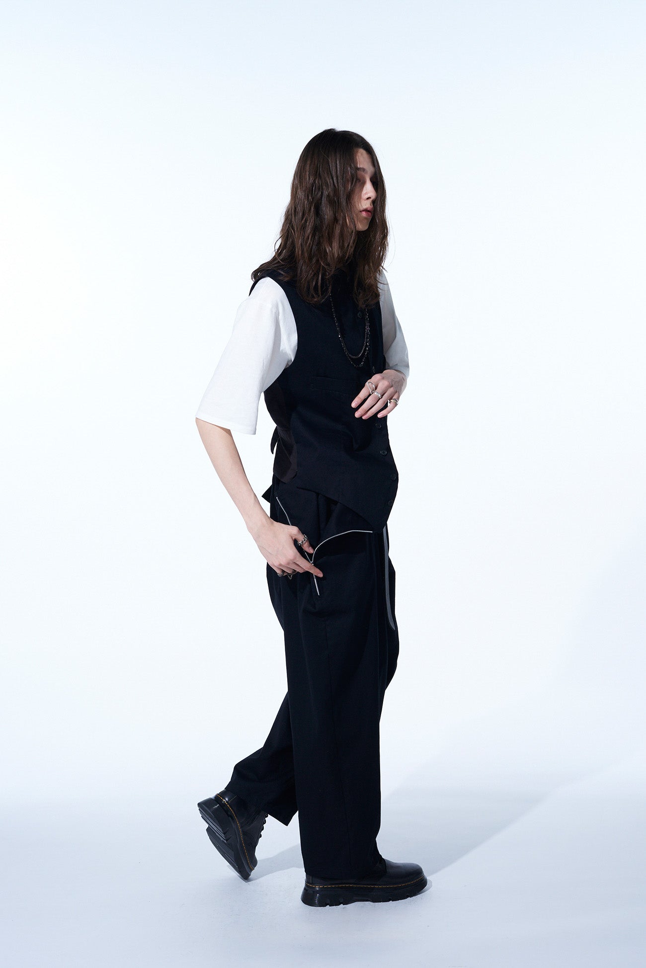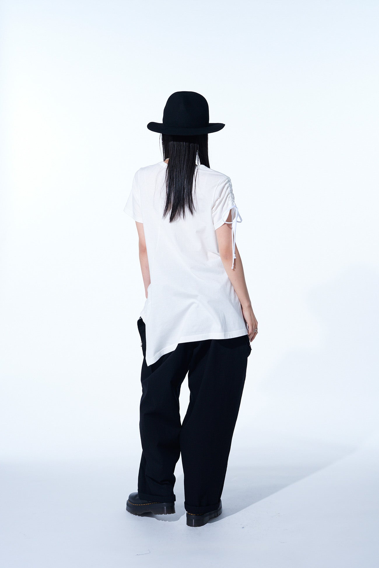 COTTON TWILL DRAWSTRING WIDE PANTS WITH ZIP SIDE POCKET