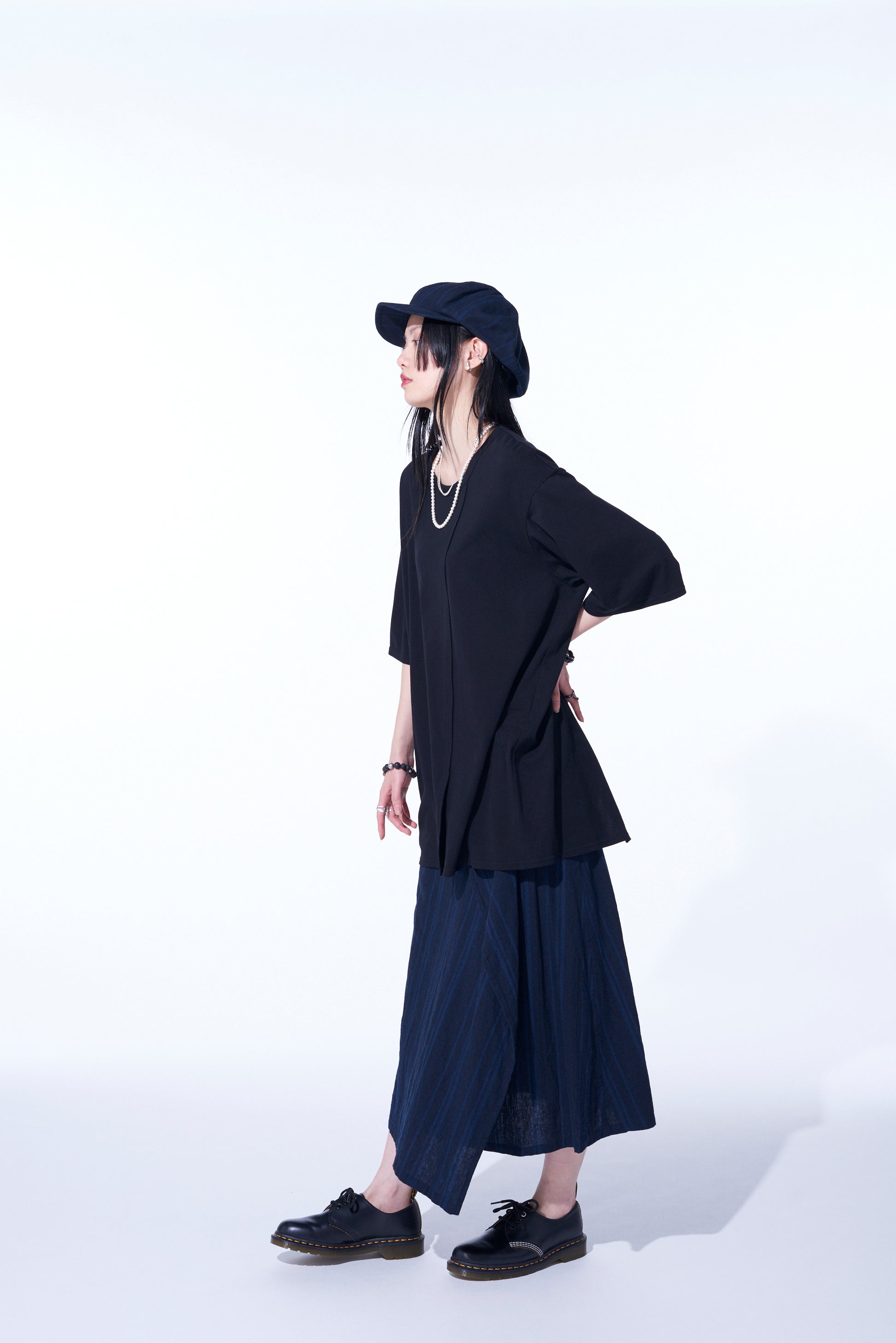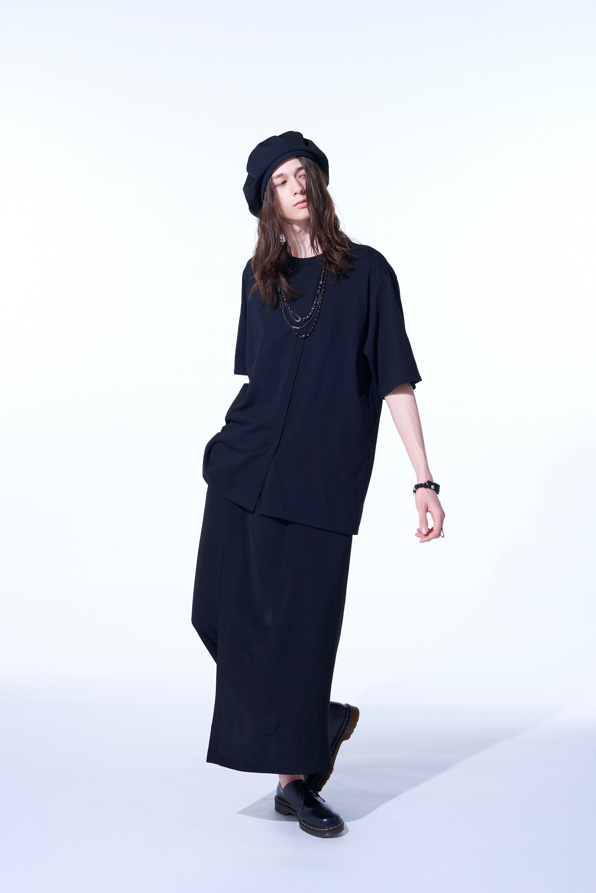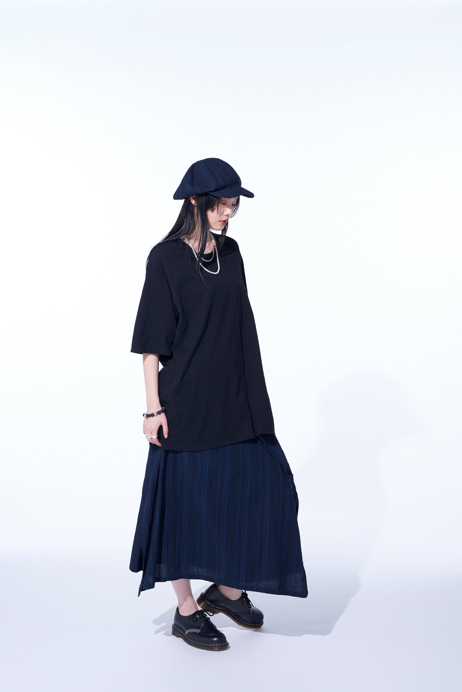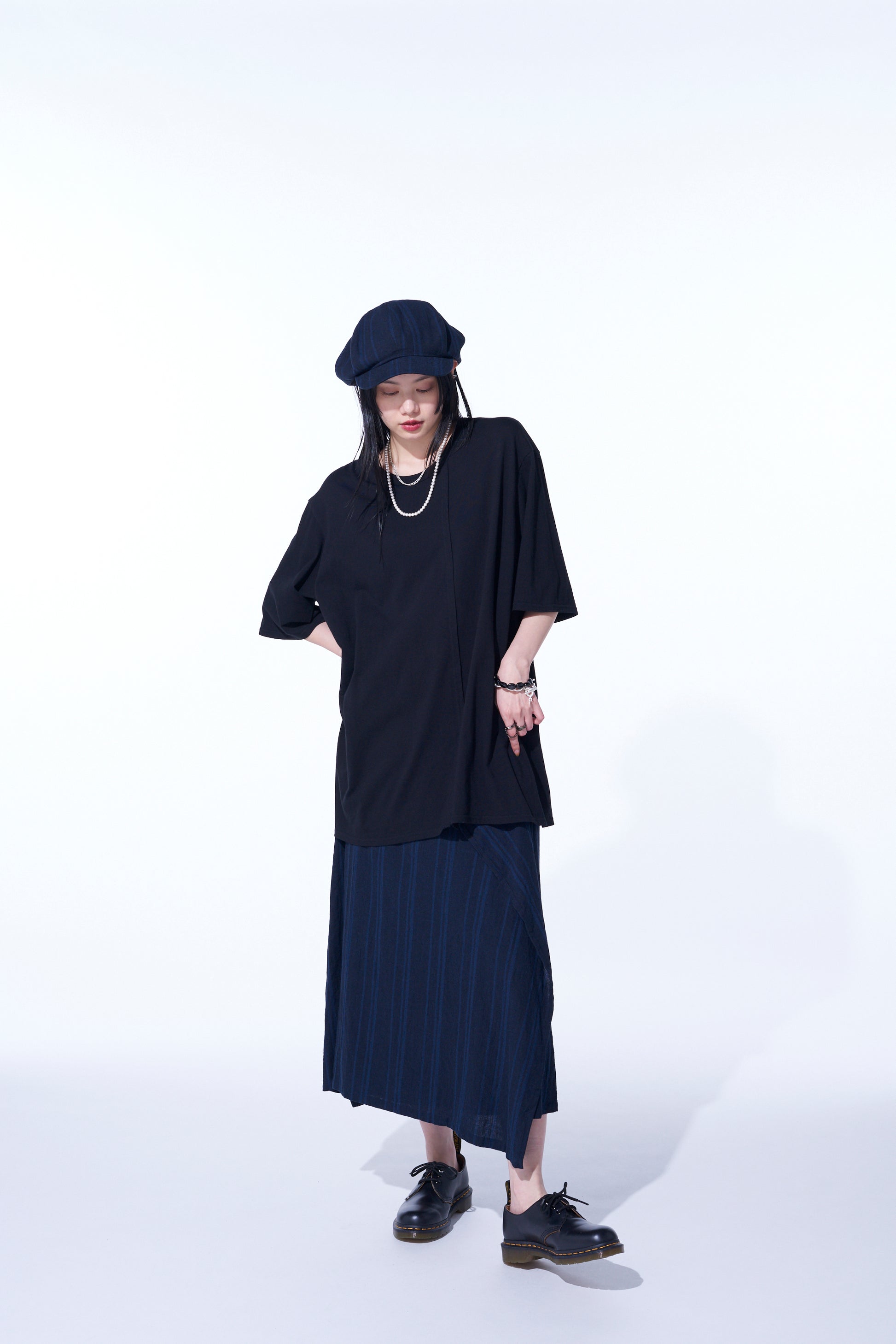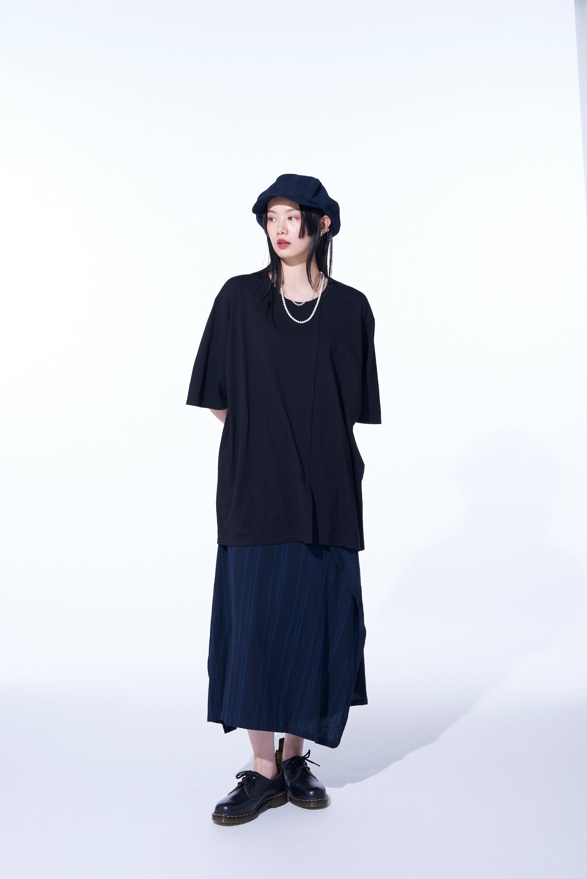 COTTON JERSEY VERTICALLY GRAFTED T-SHIRT WITH HEM SLITS