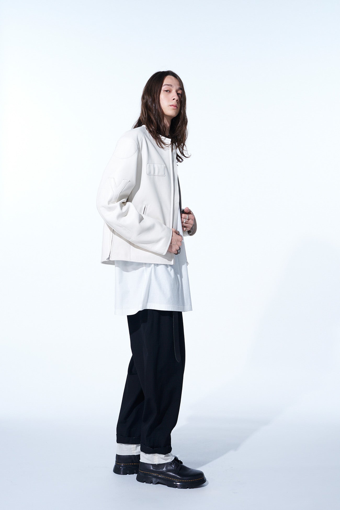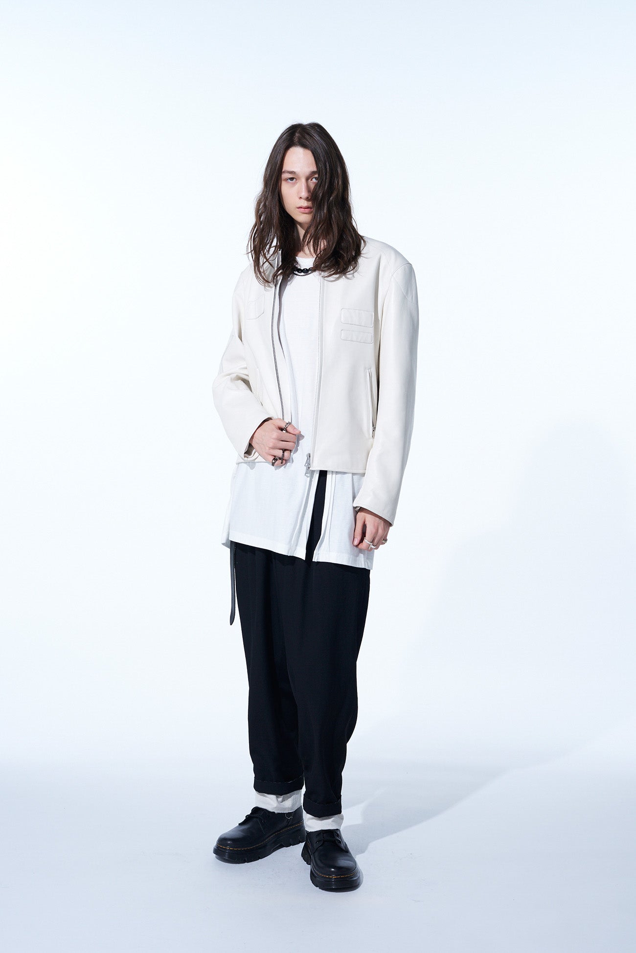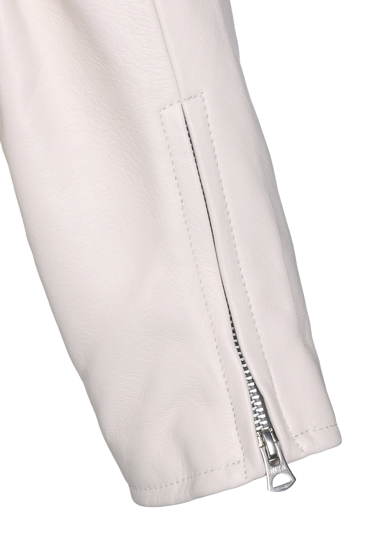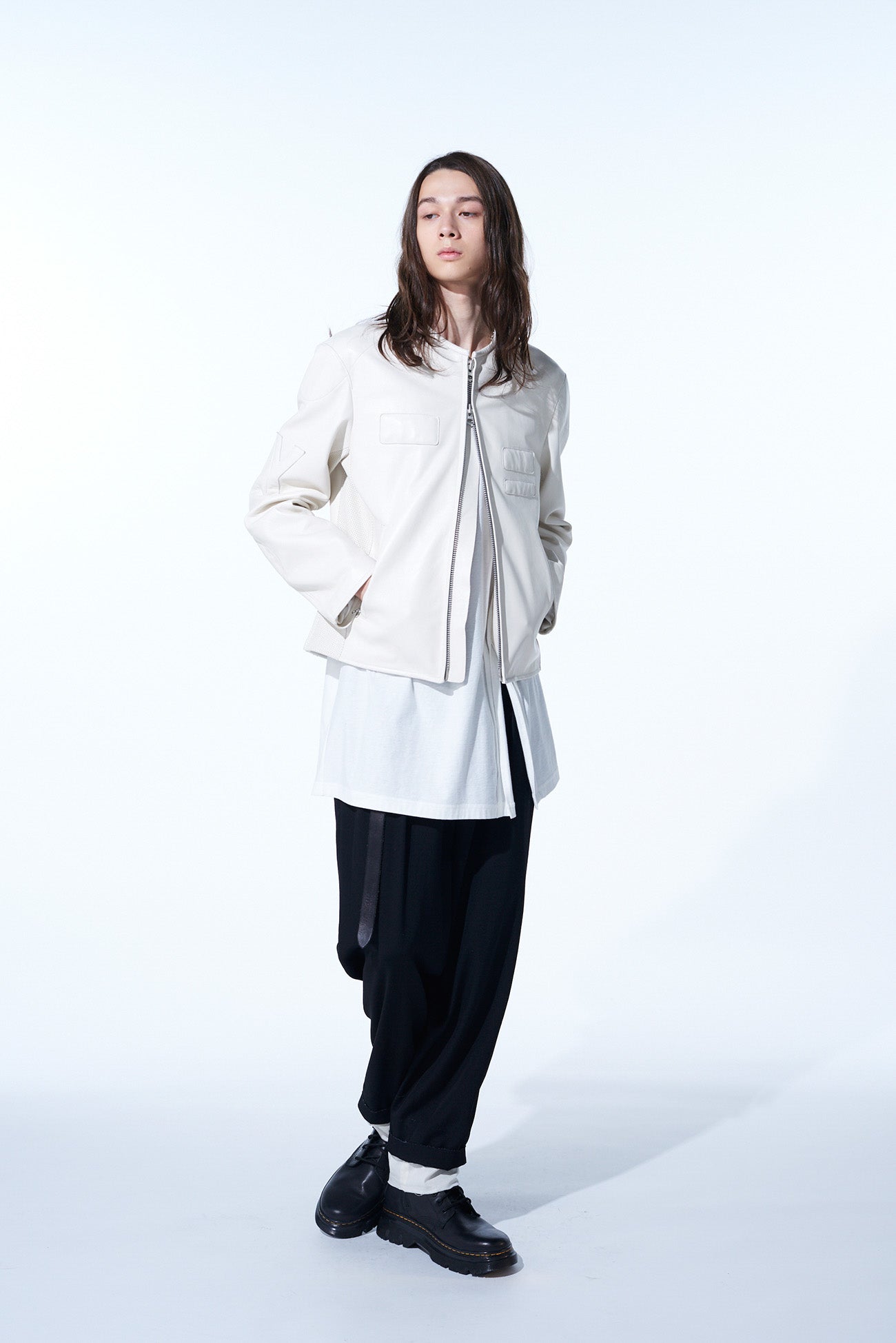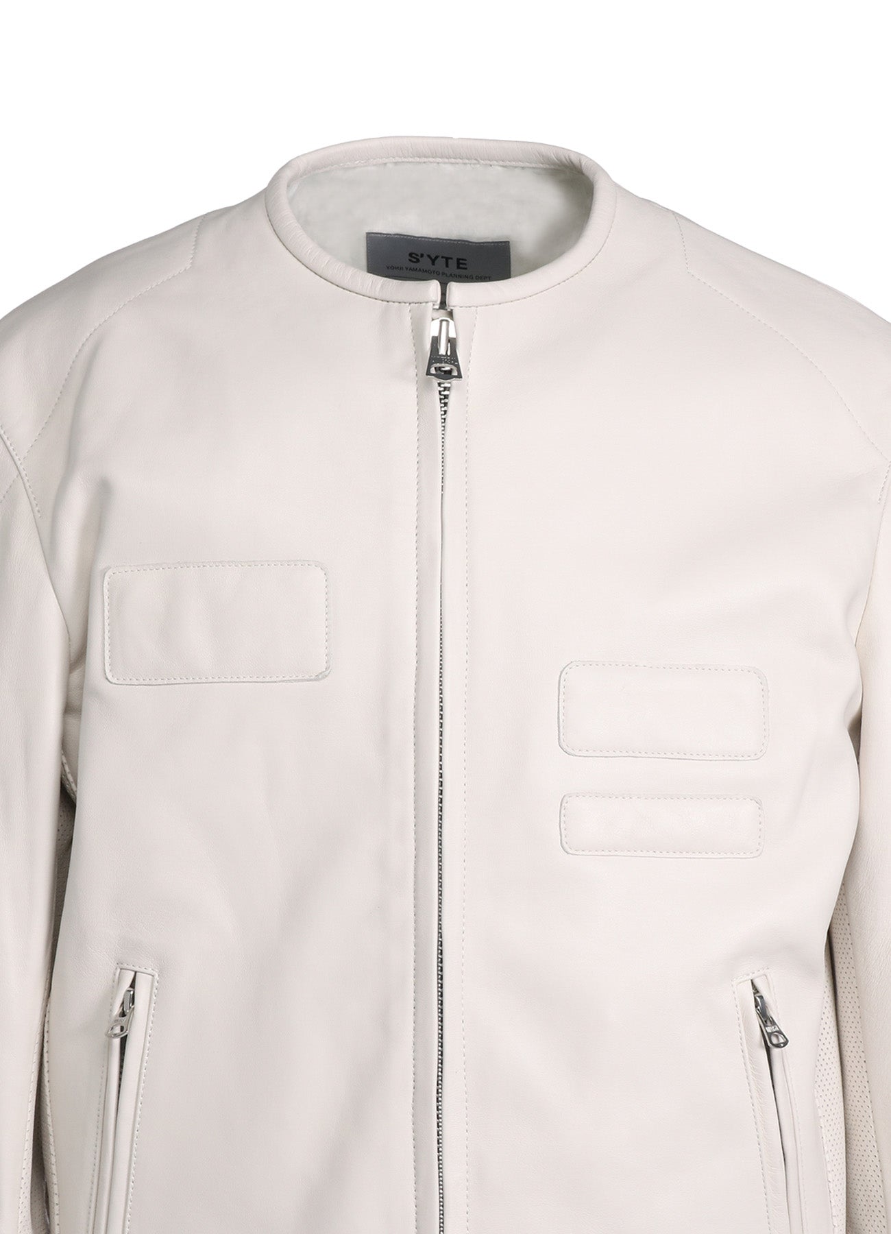 SEMI-VEGETABLE TANNED SHEEP LEATHER COLLARLESS MOTORCYCLE JACKET