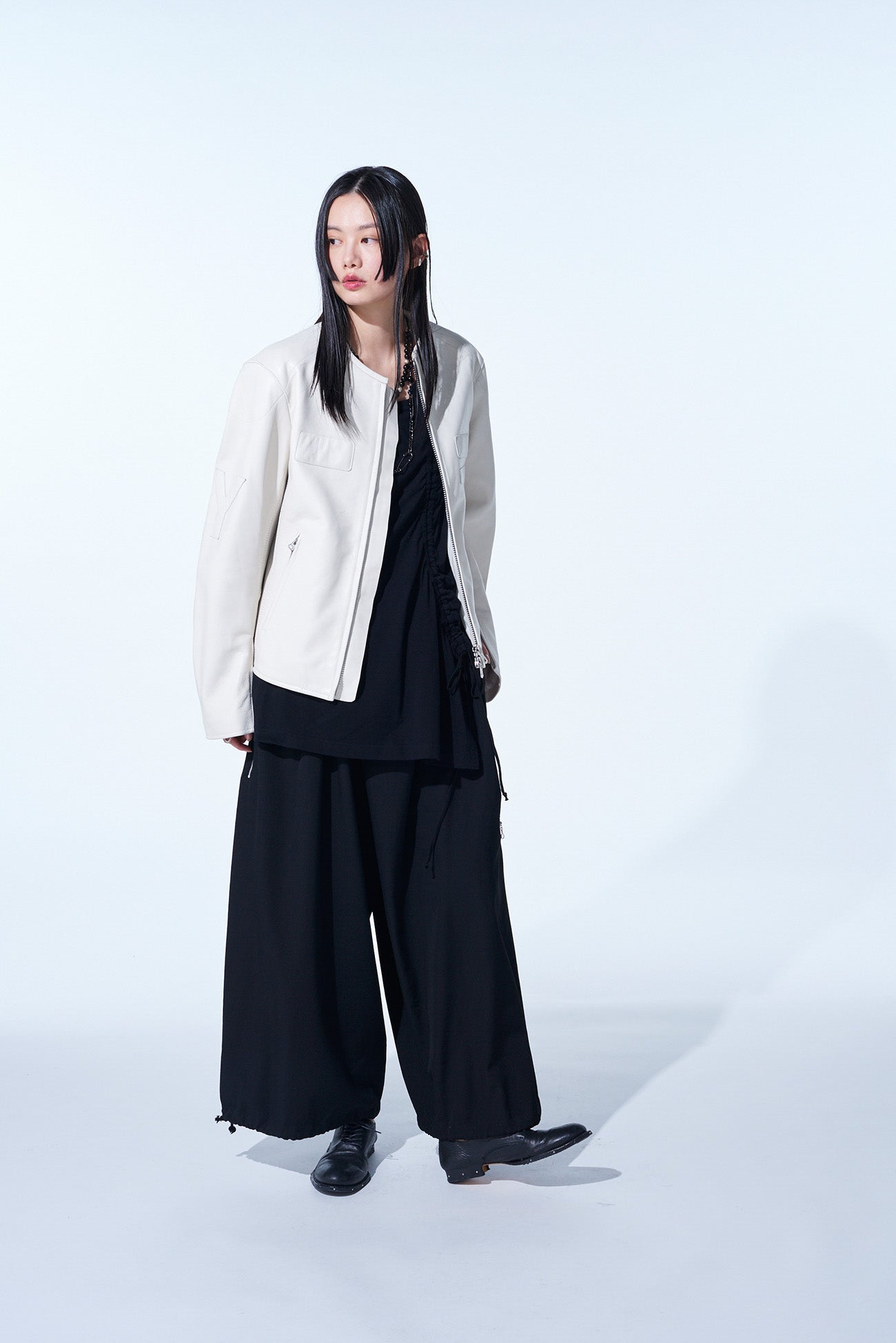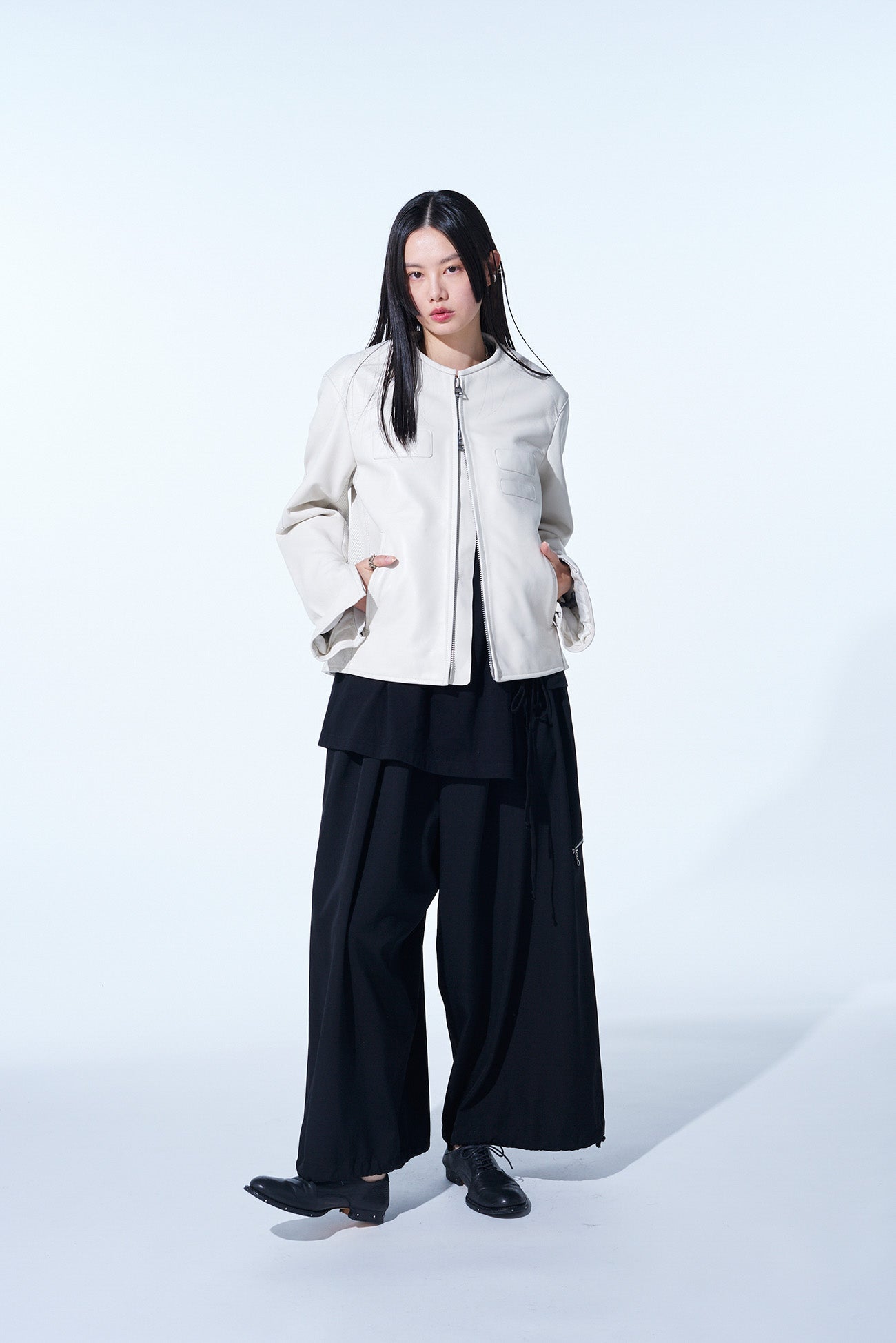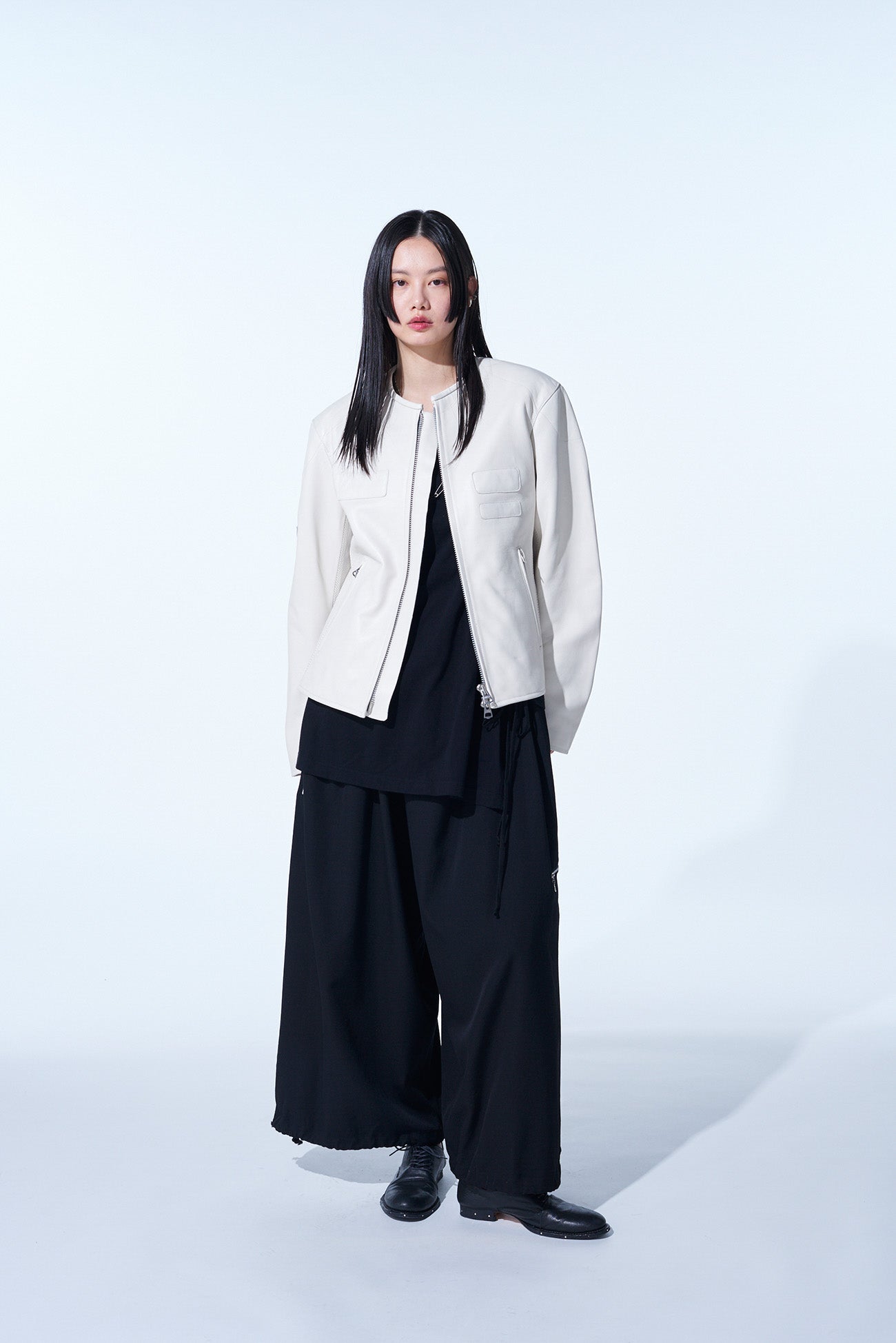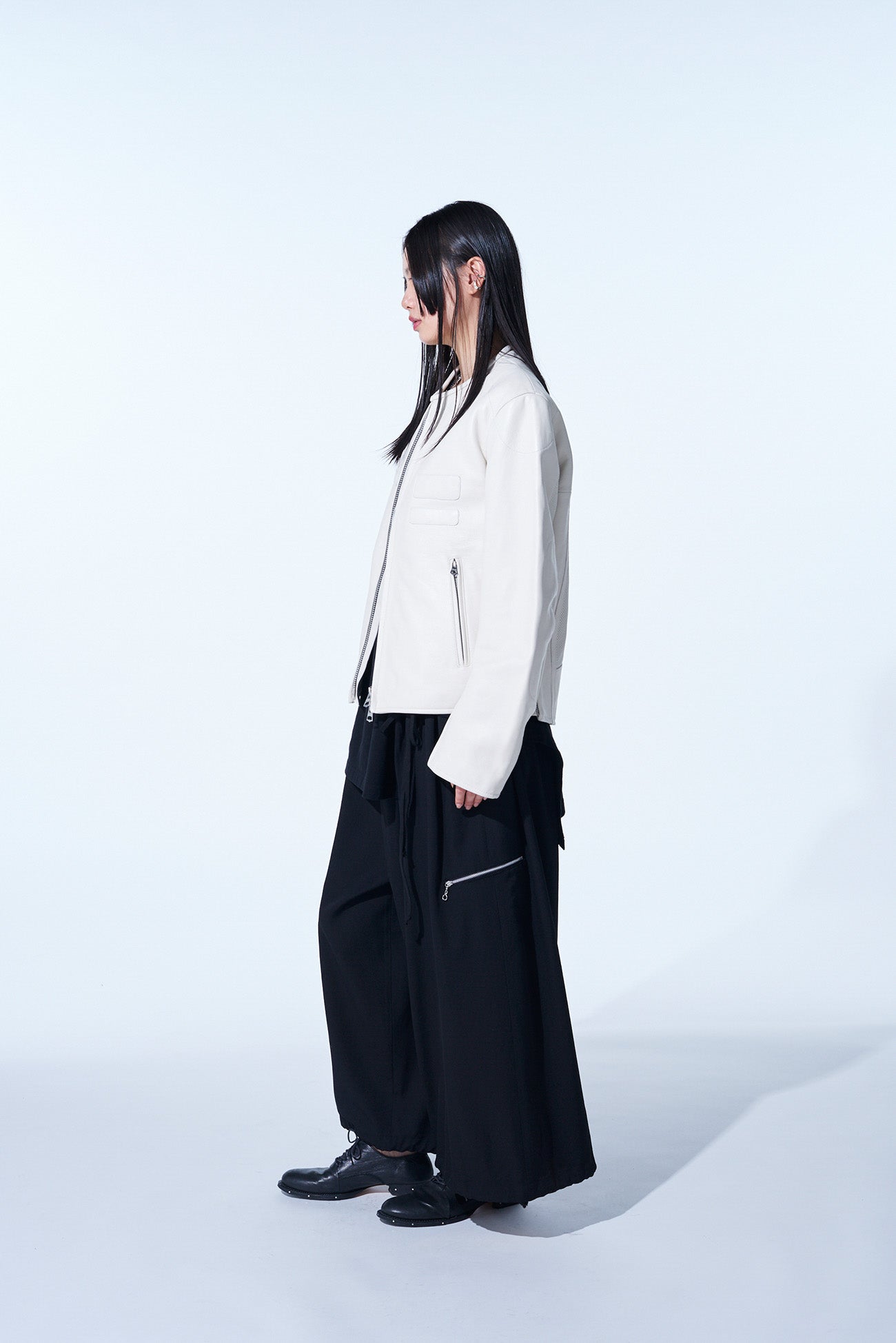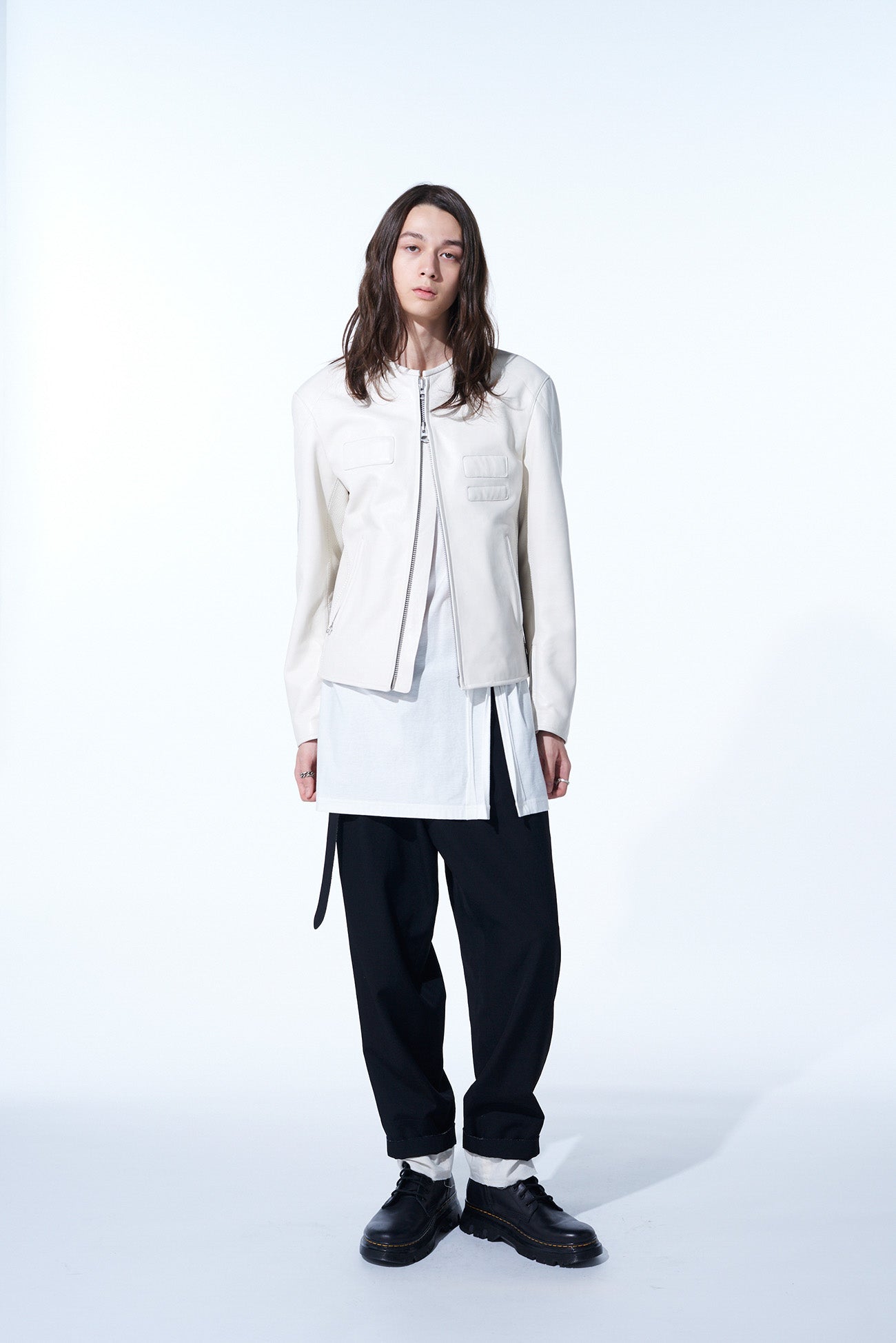 SEMI-VEGETABLE TANNED SHEEP LEATHER COLLARLESS MOTORCYCLE JACKET
