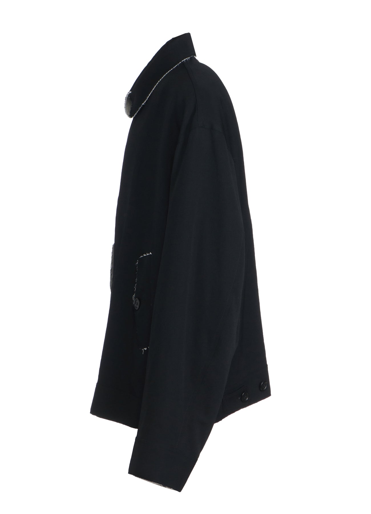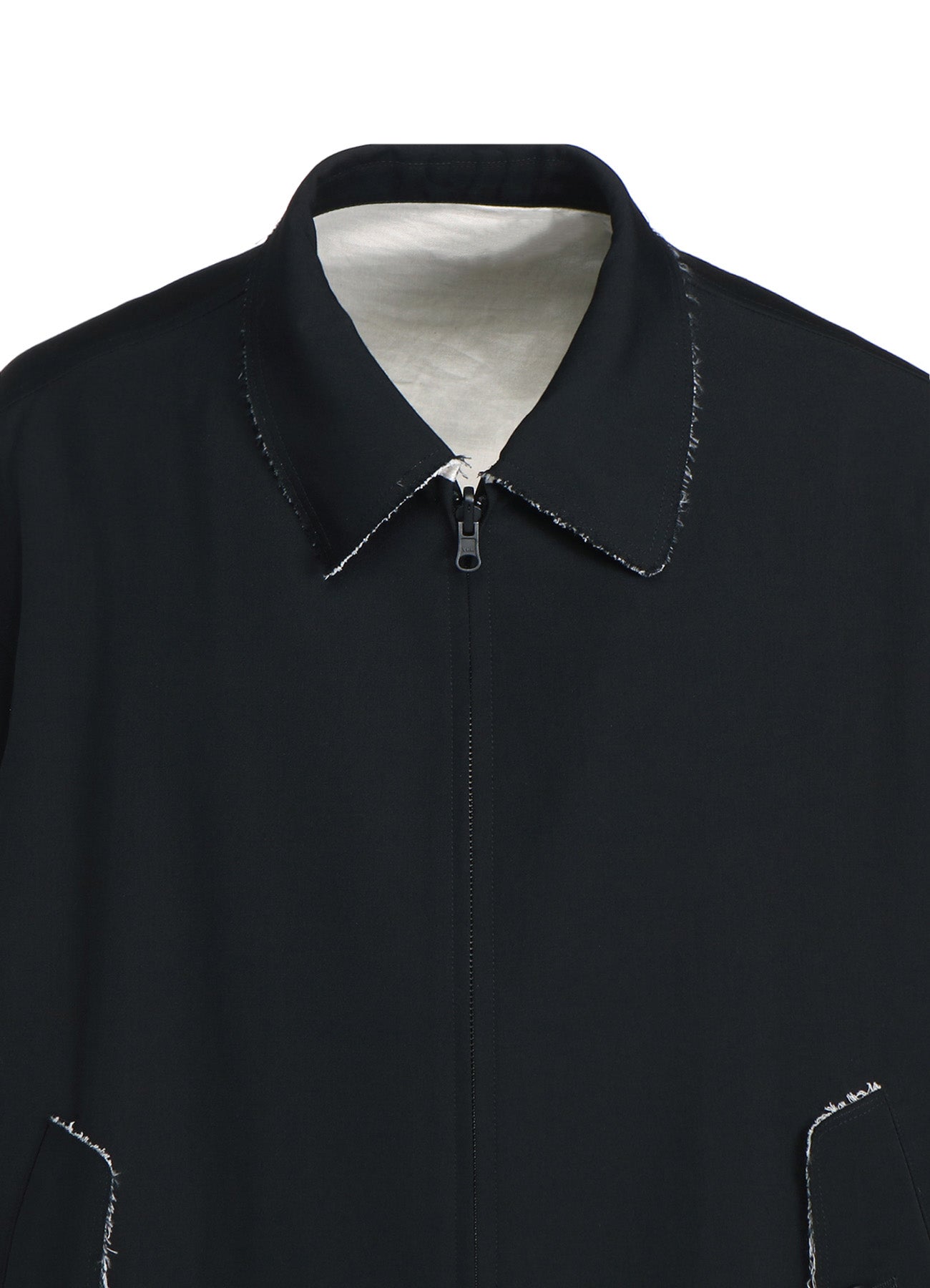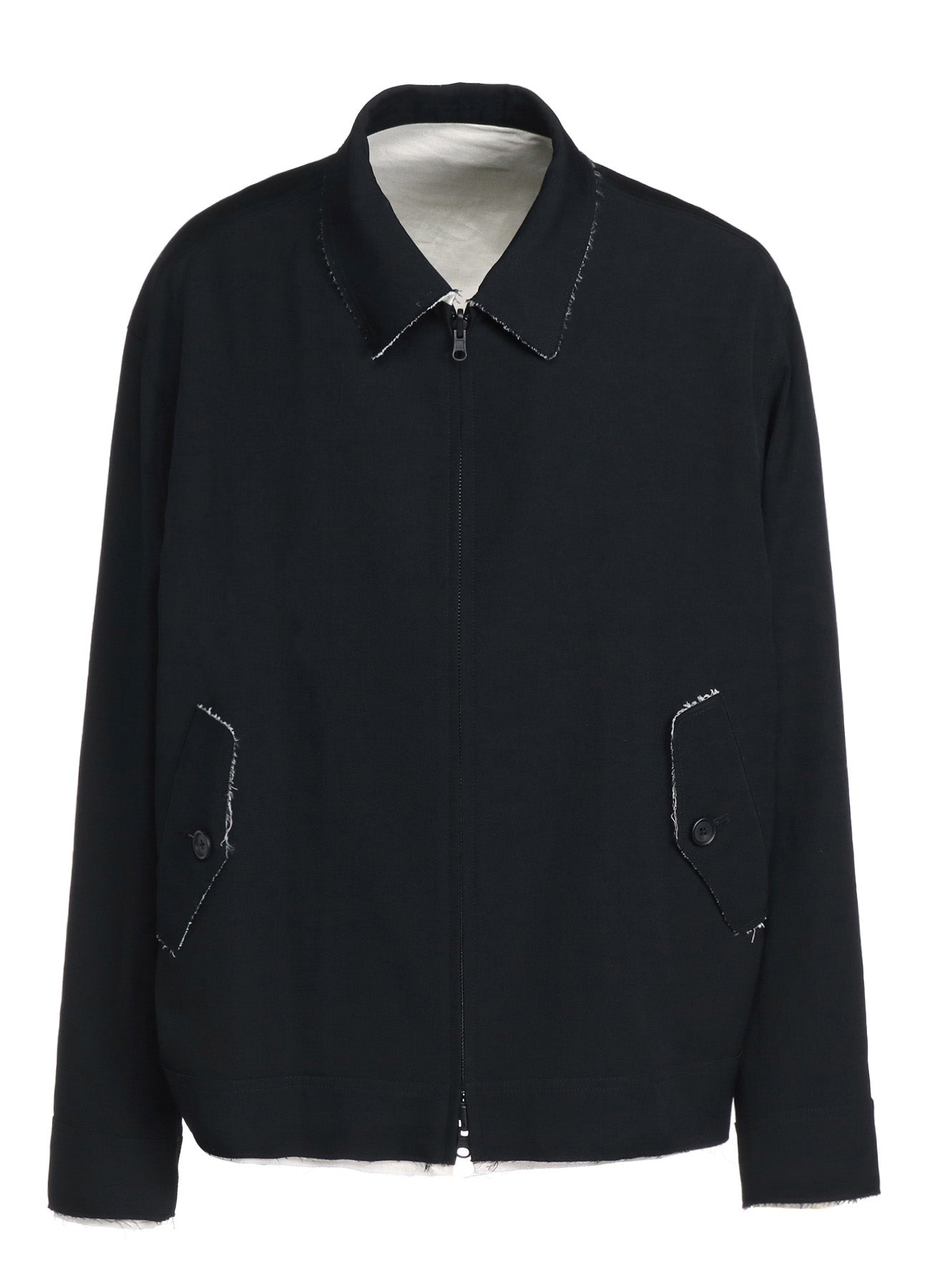 WASHER FINISHED WOOL GABARDINE OVERSIZED REVERSIBLE ZIPPER BLOUSON WITH CUT-OUT DESIGN