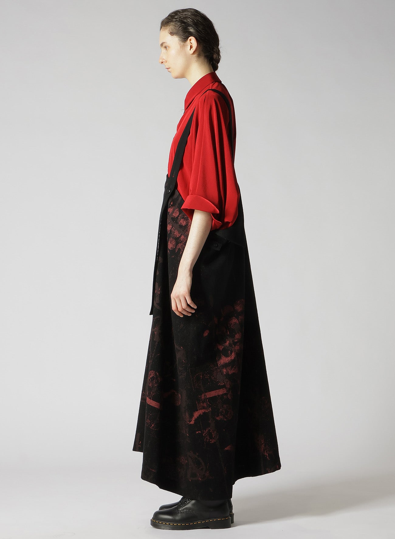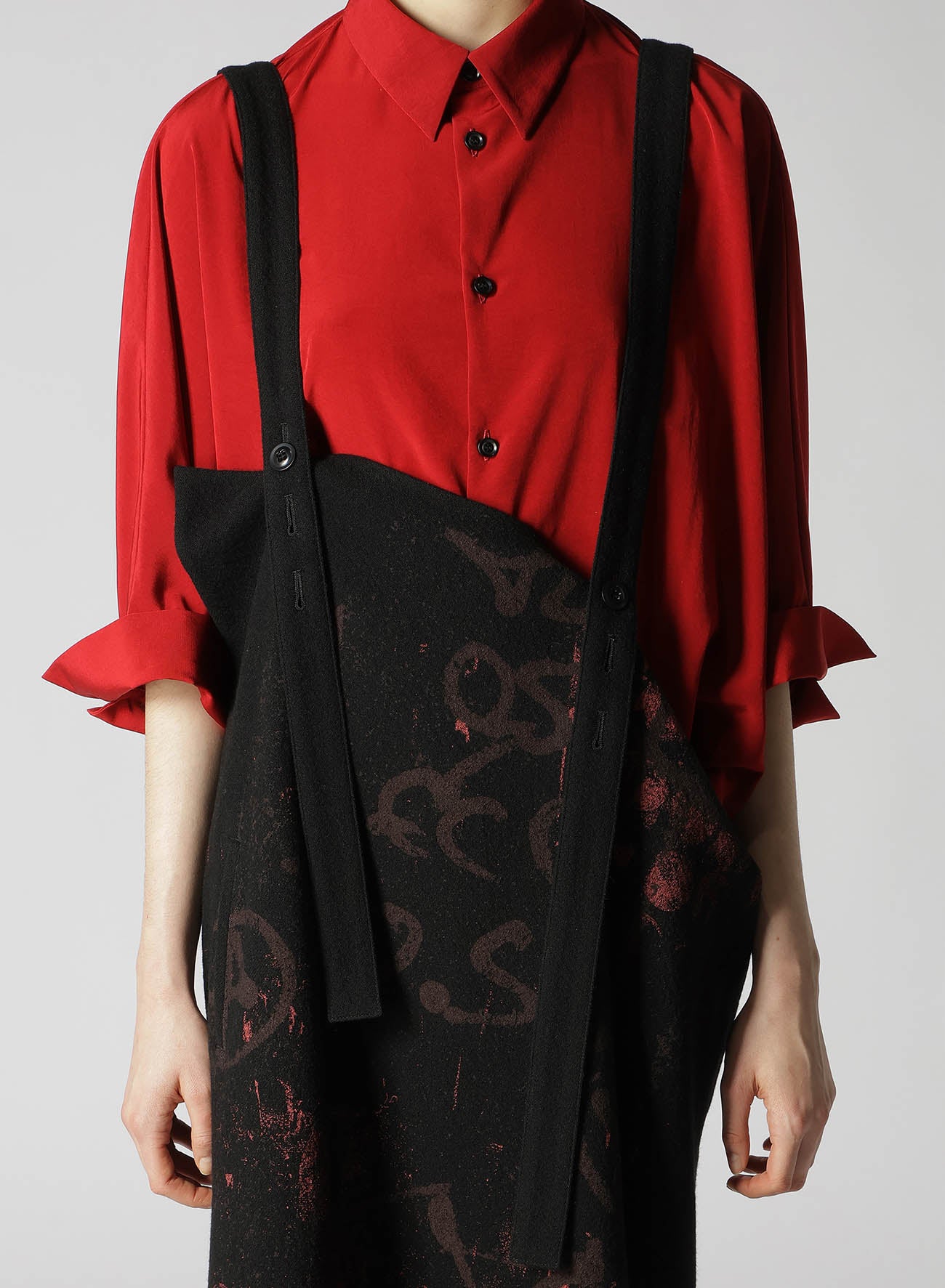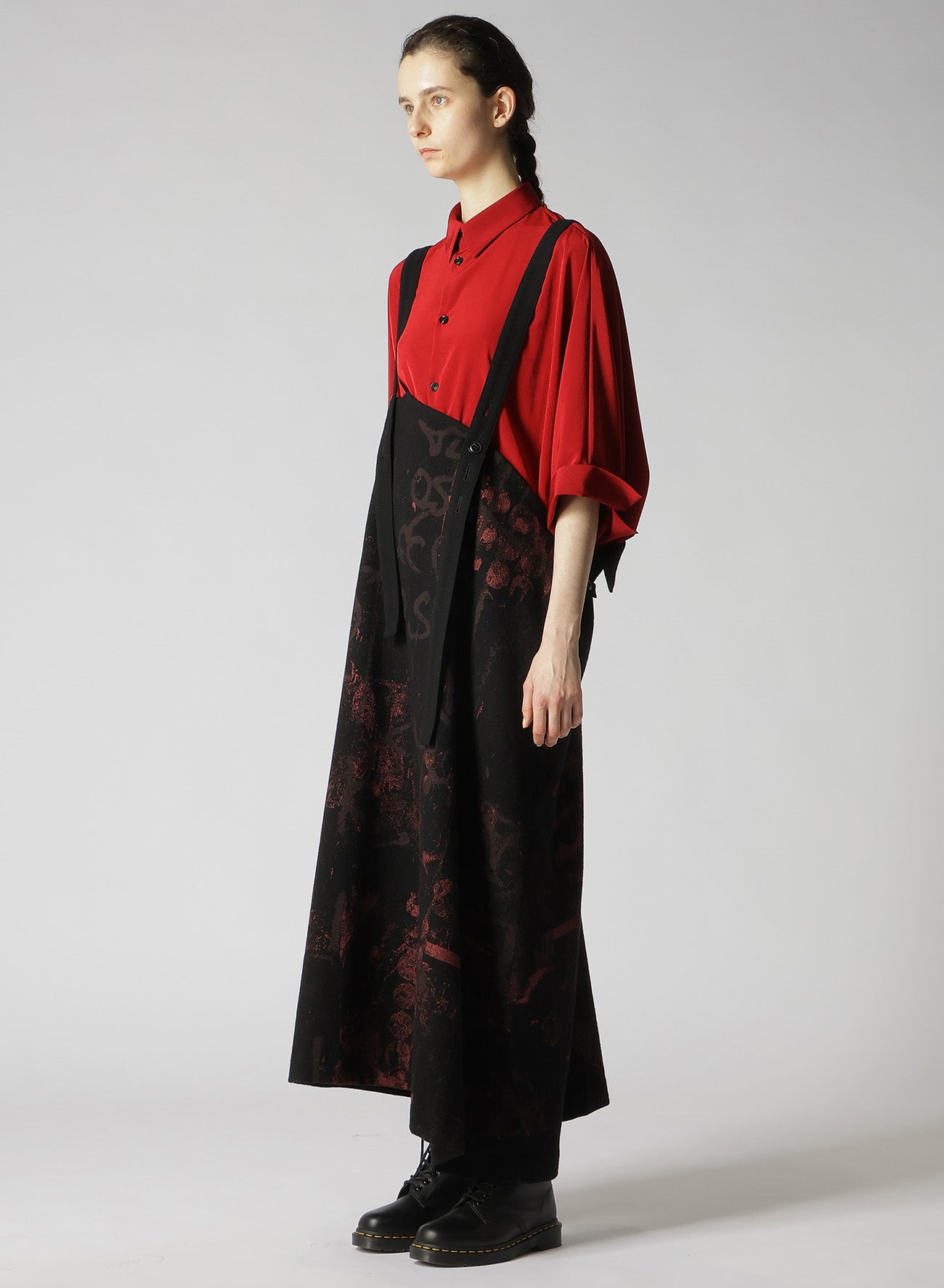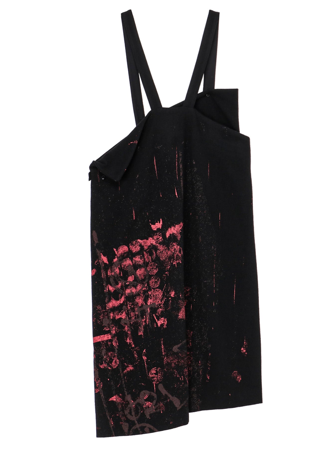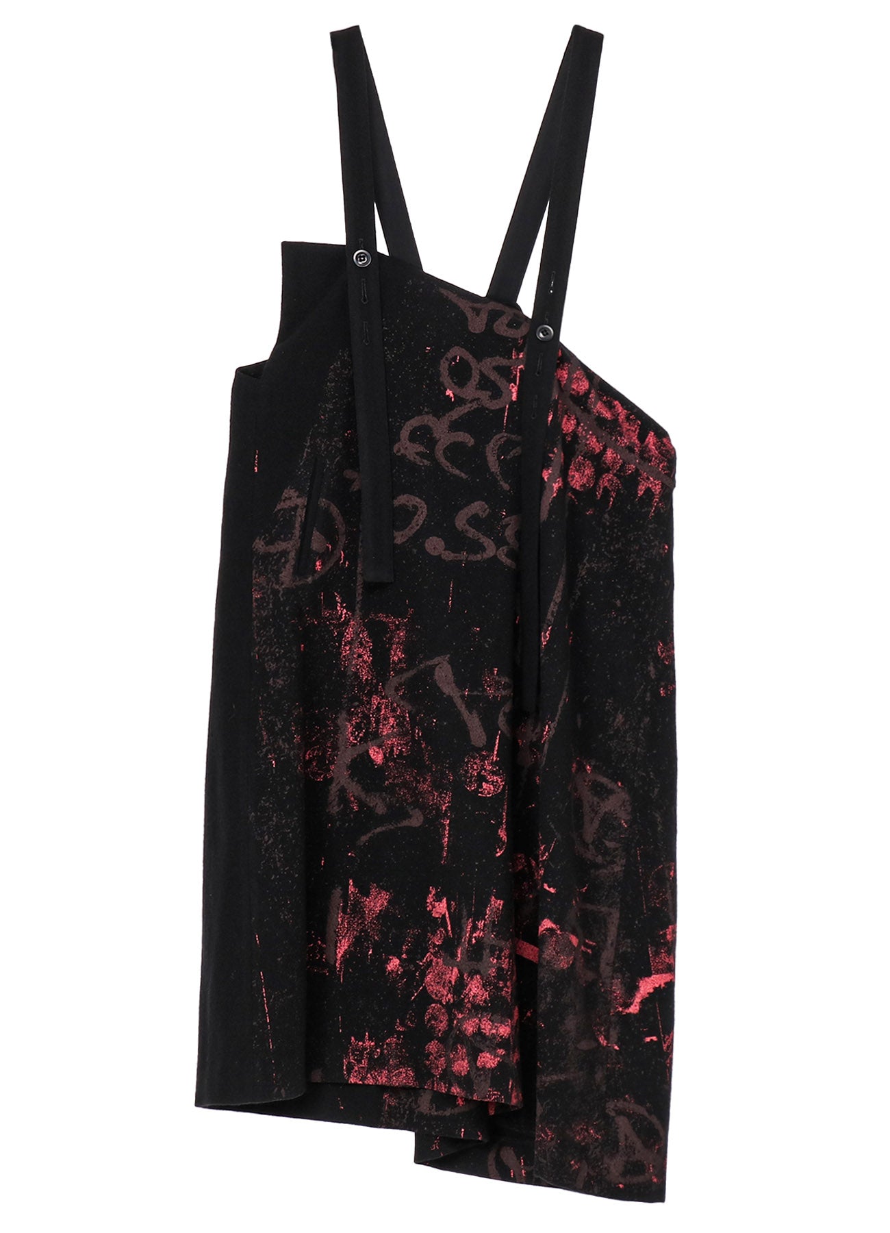 WOOL FLANNEL SCRIBBLE PATTERN SHOULDER STRAP DRESS