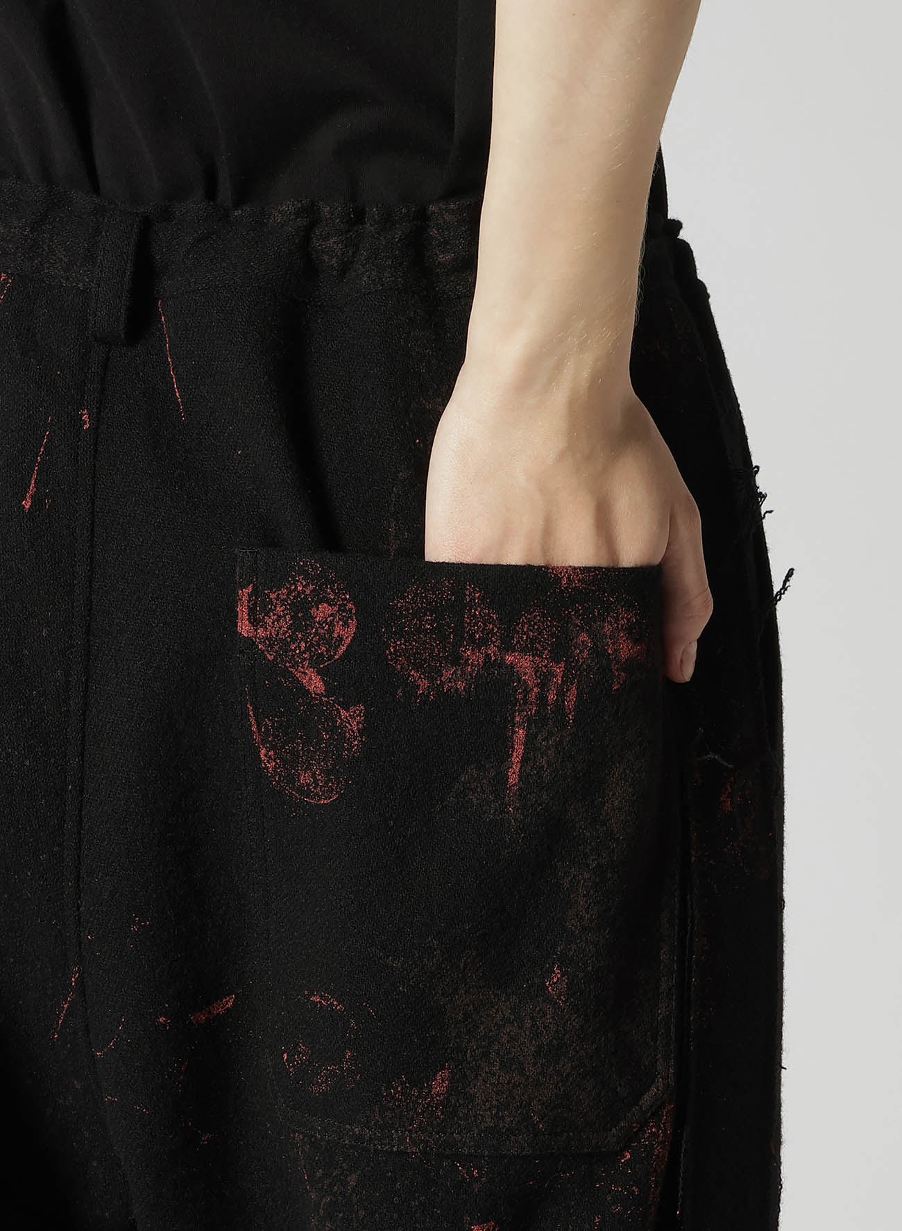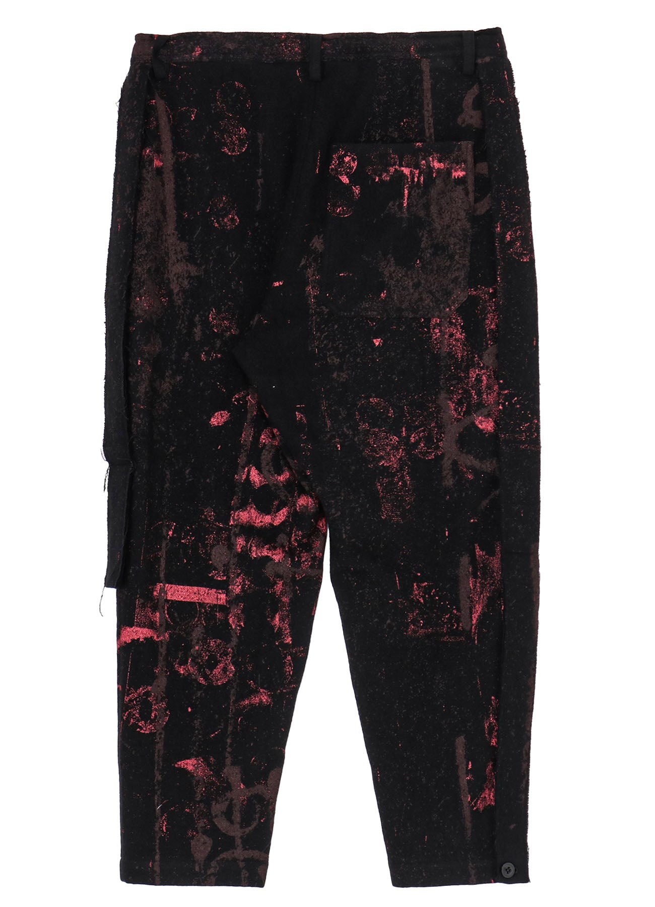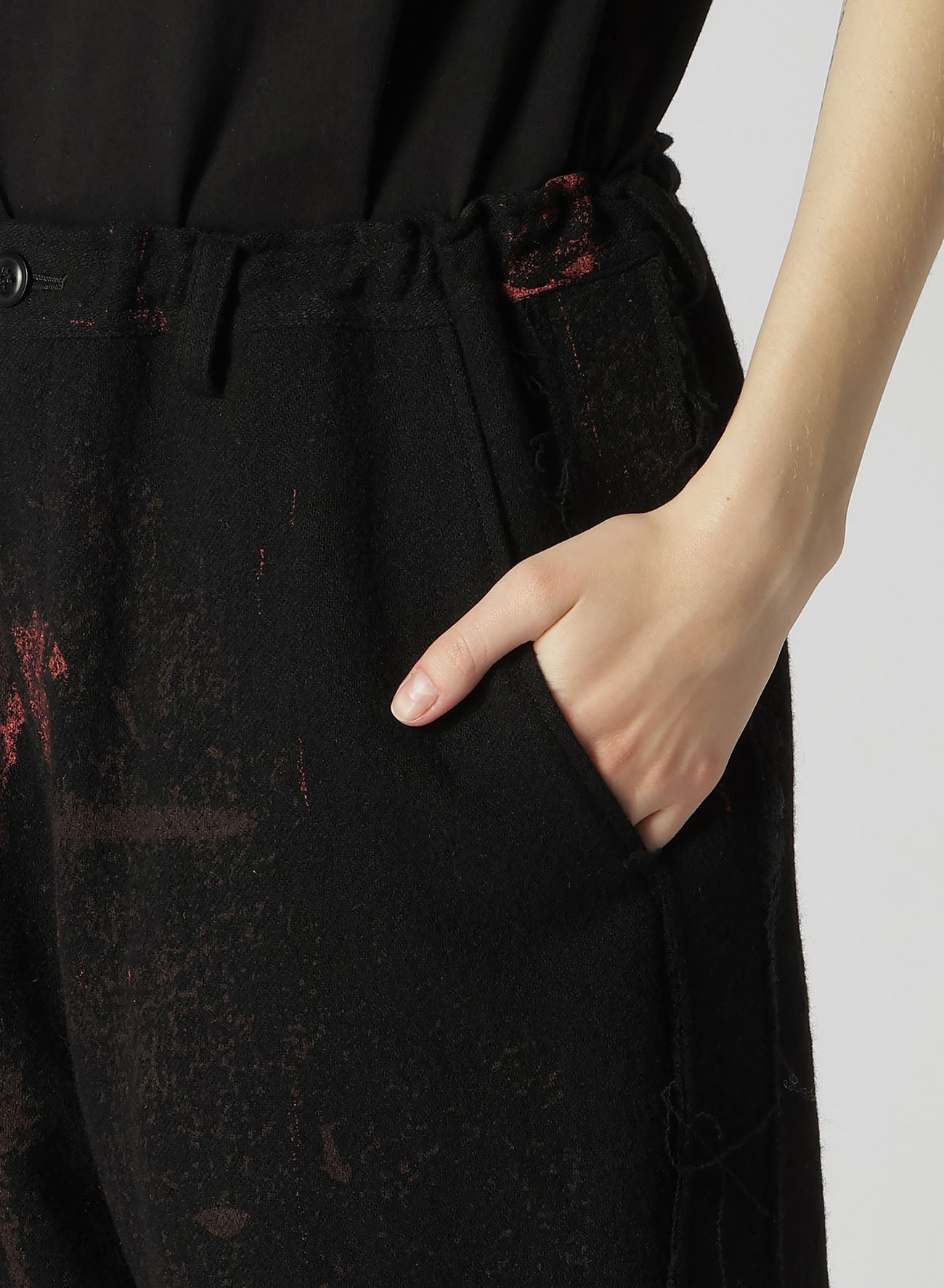 WOOL FLANNEL SCRIBBLE PATTERN SIDE PLUSH PANTS