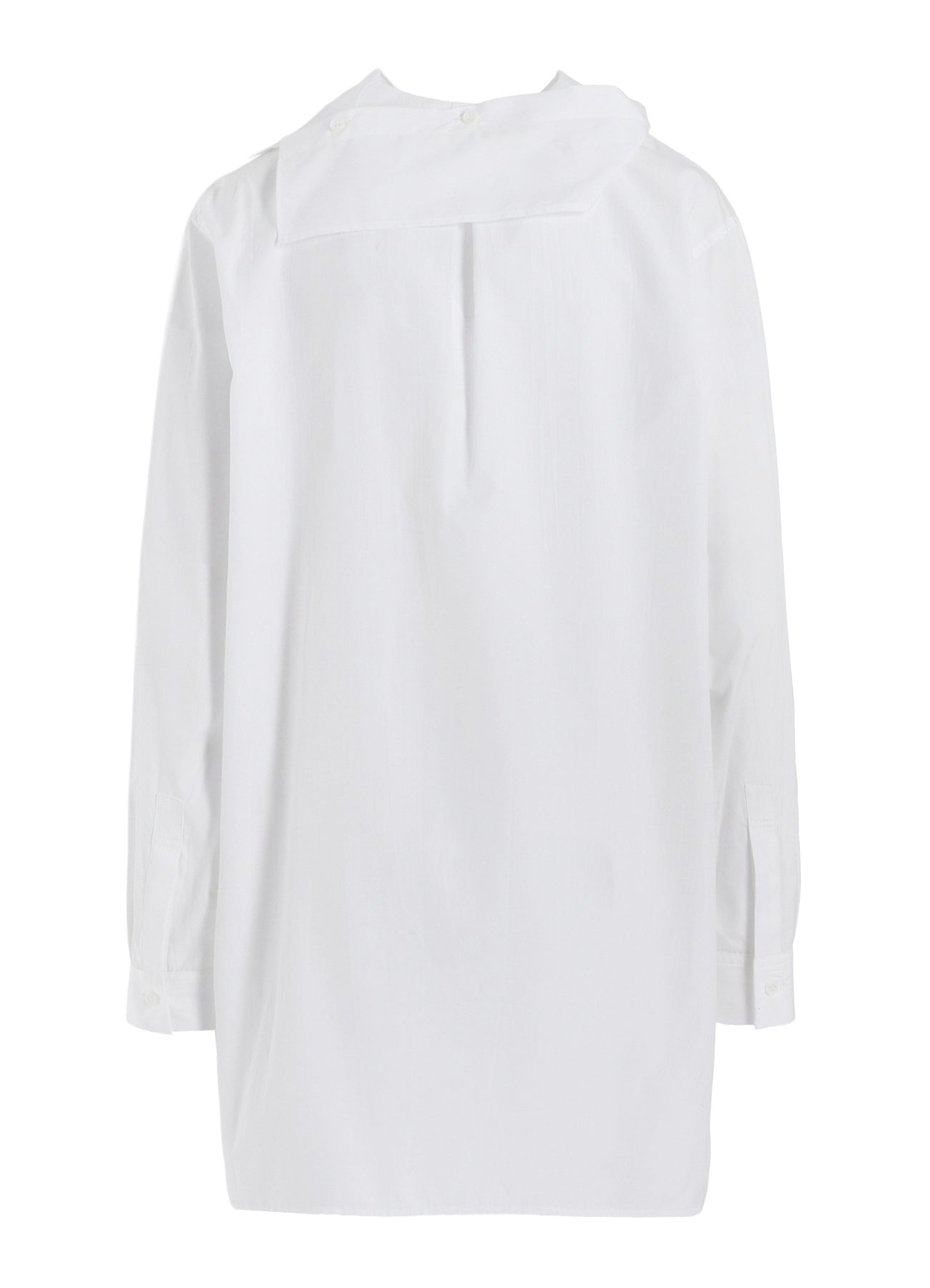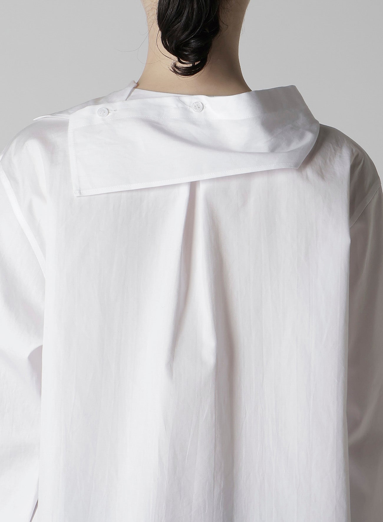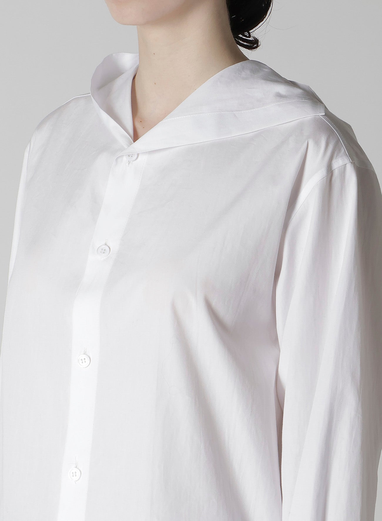 这款衬衫采用Y's标志性棉布制成,经过气旋处理,质地柔软轻盈,带有轻微褶皱。独特的领子从正面看像帽子,从背面看似水手领,穿在带肩带的连衣裙下时,是个完美的点缀。
