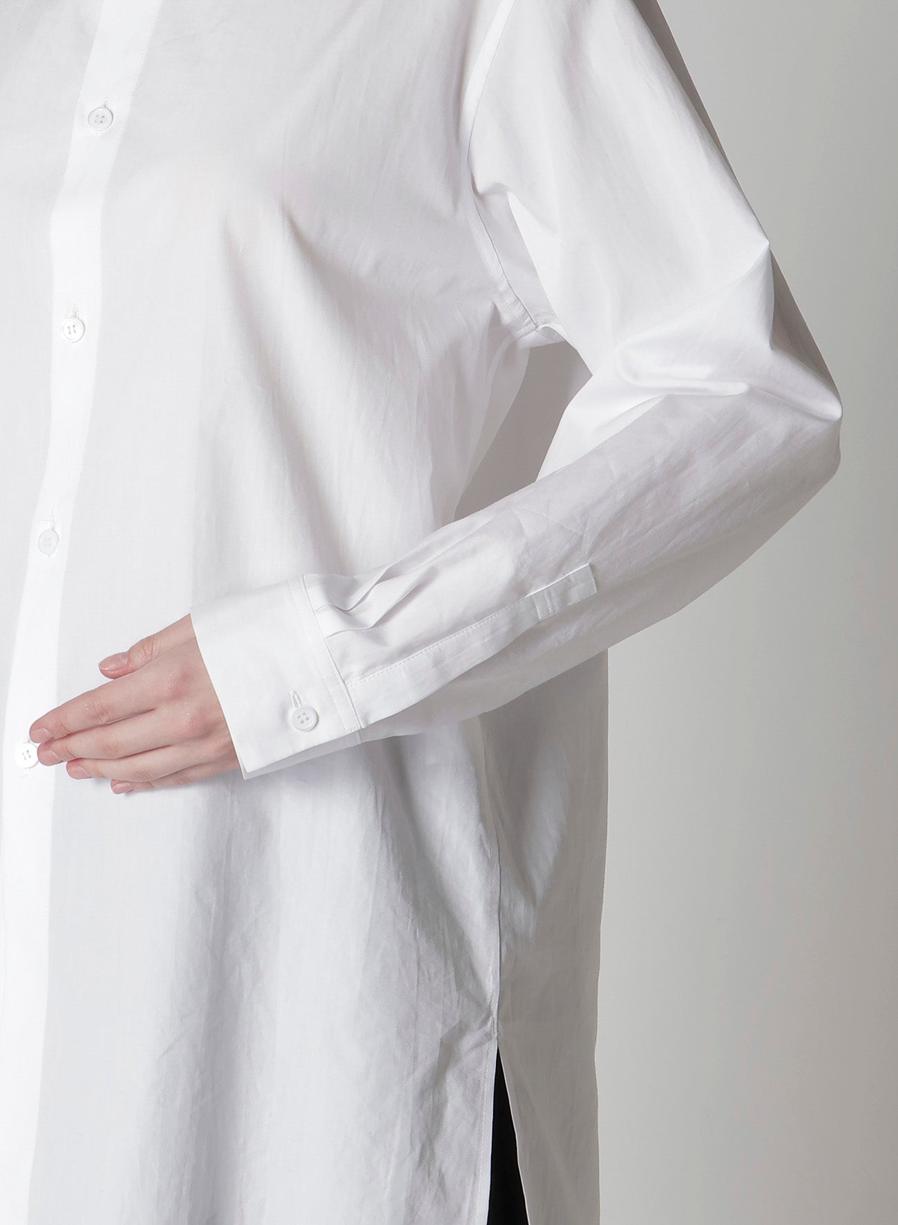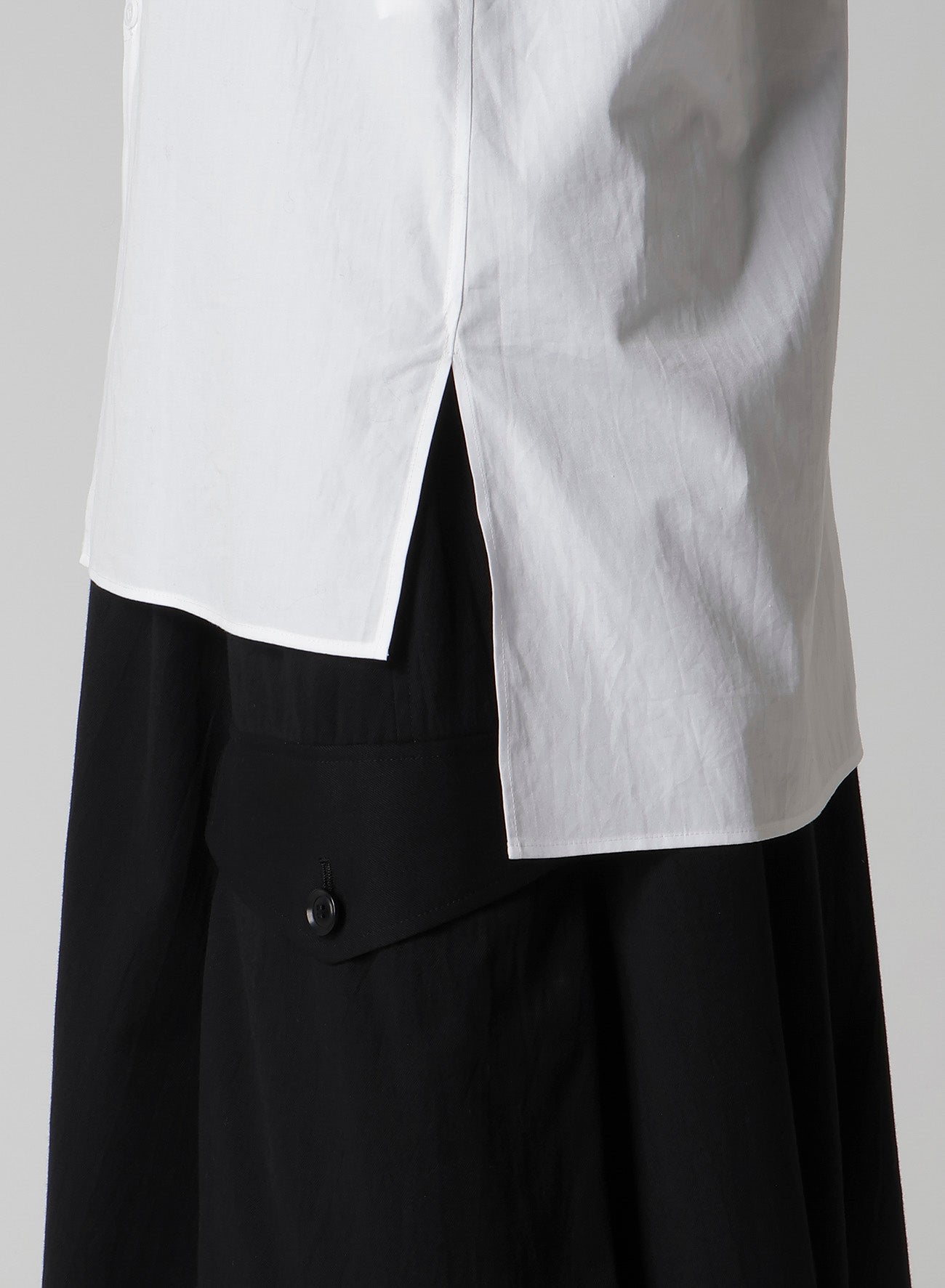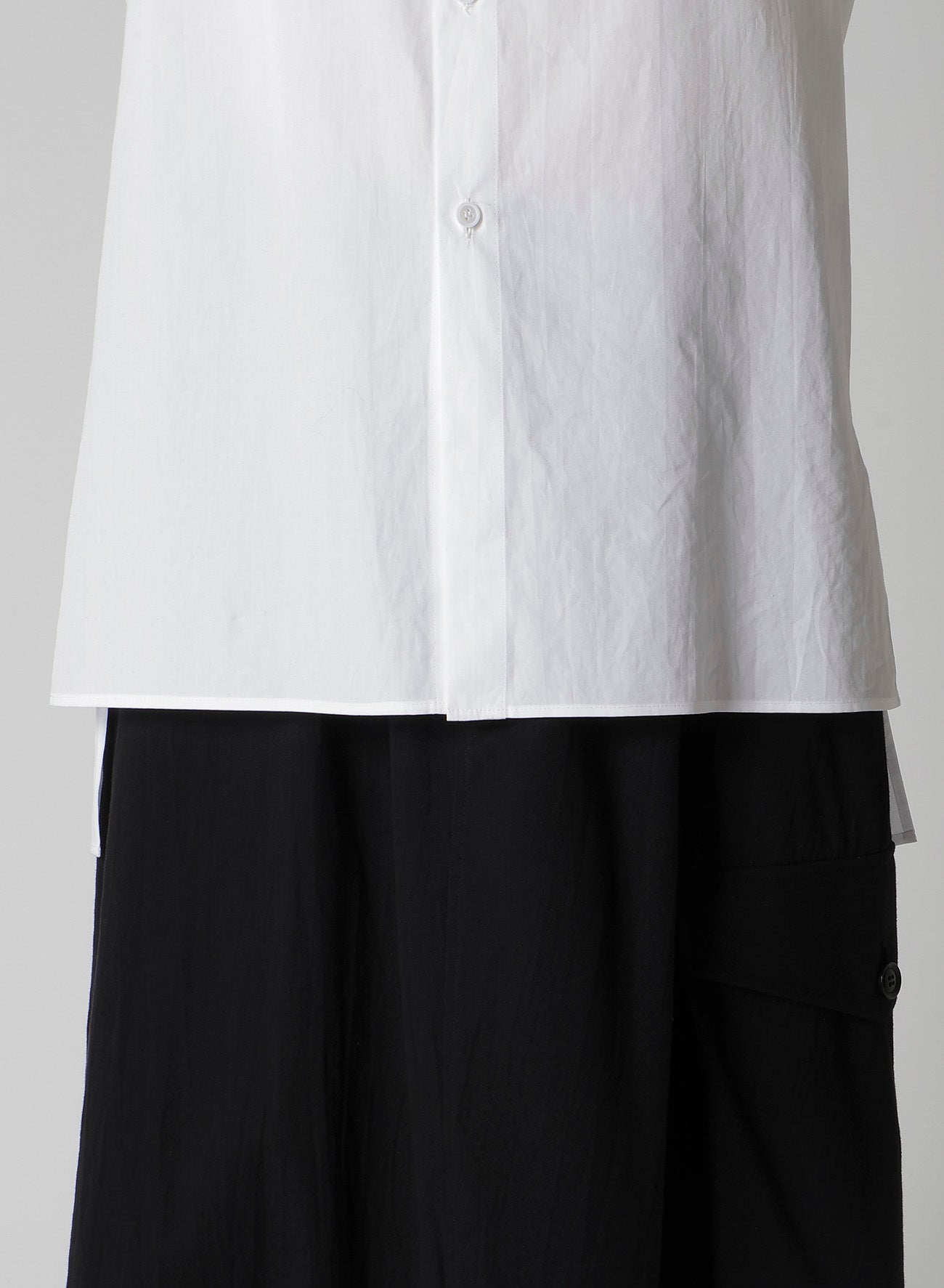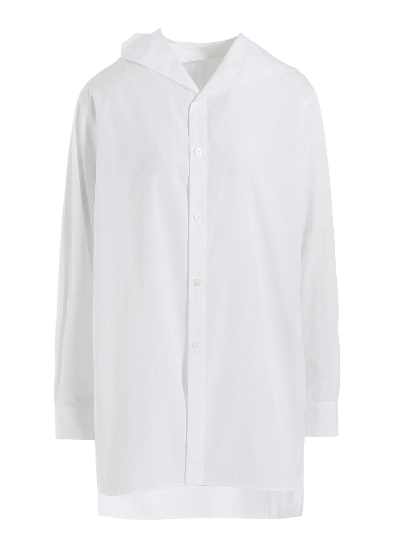 这款衬衫采用Y's标志性棉布制成,经过气旋处理,质地柔软轻盈,带有轻微褶皱。独特的领子从正面看像帽子,从背面看似水手领,穿在带肩带的连衣裙下时,是个完美的点缀。