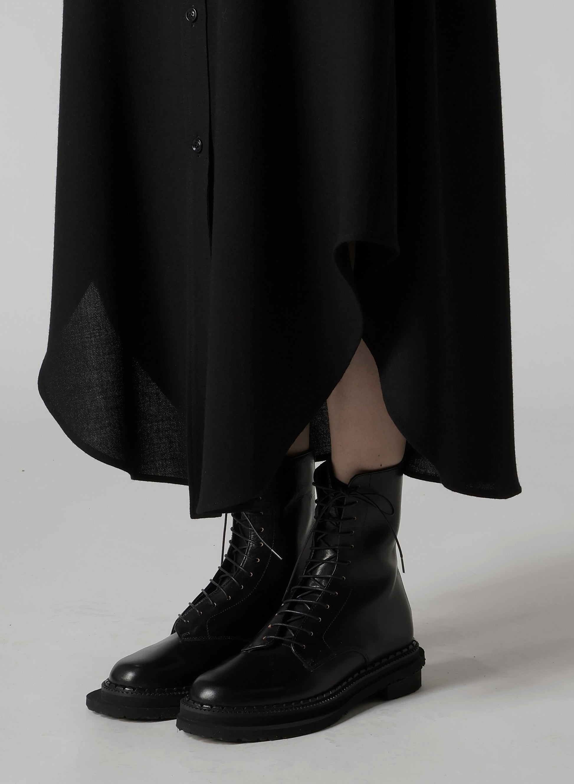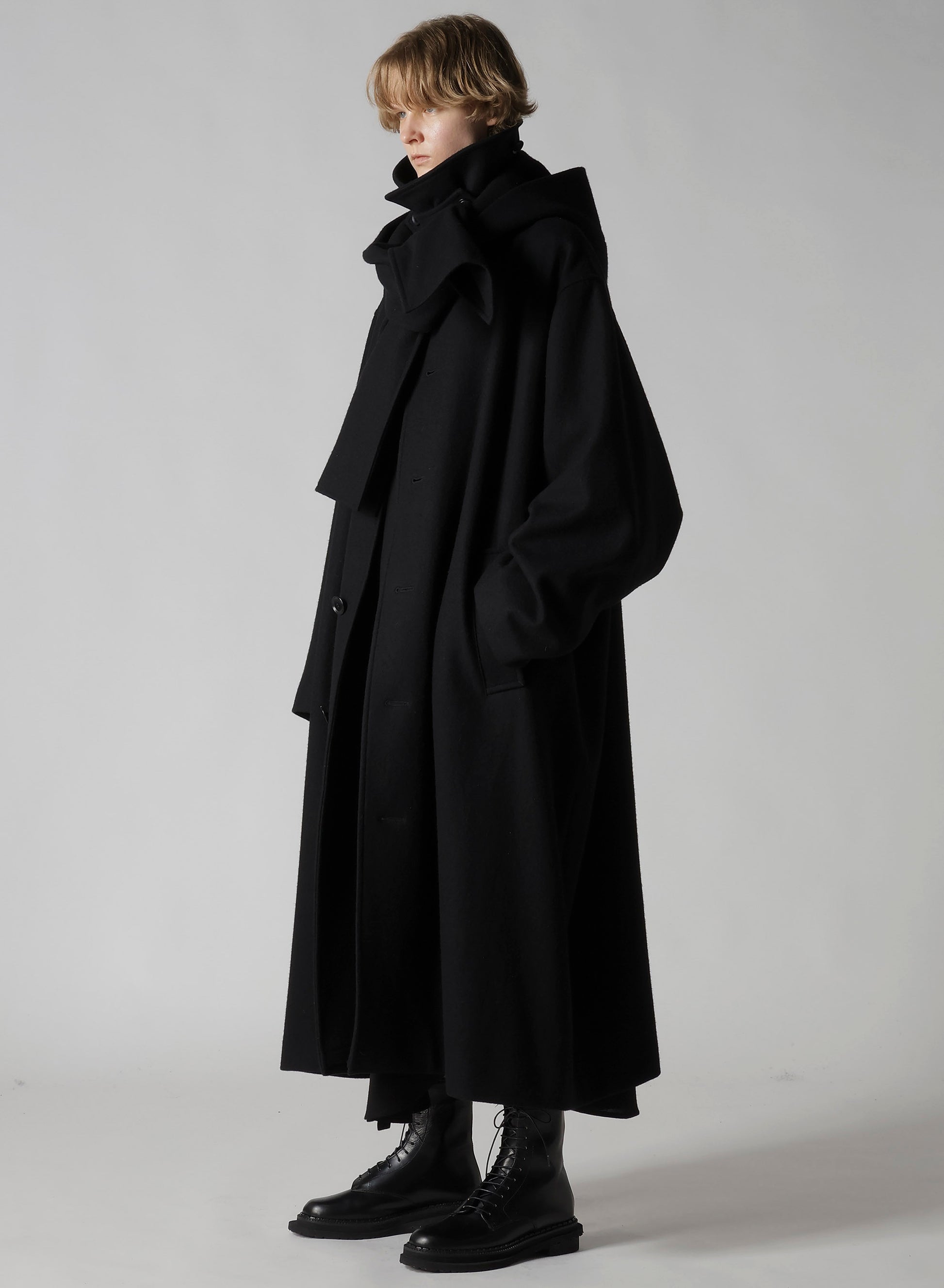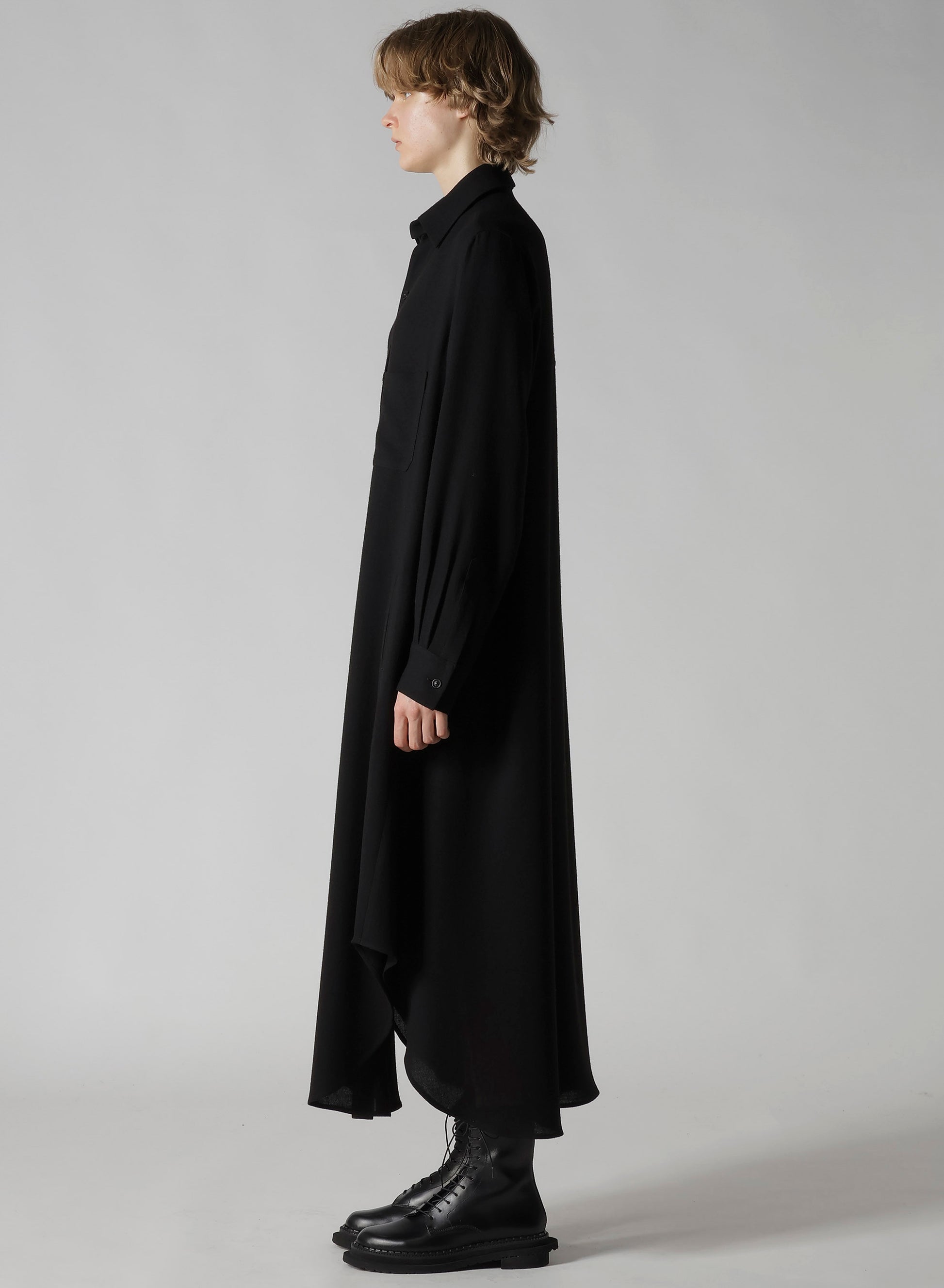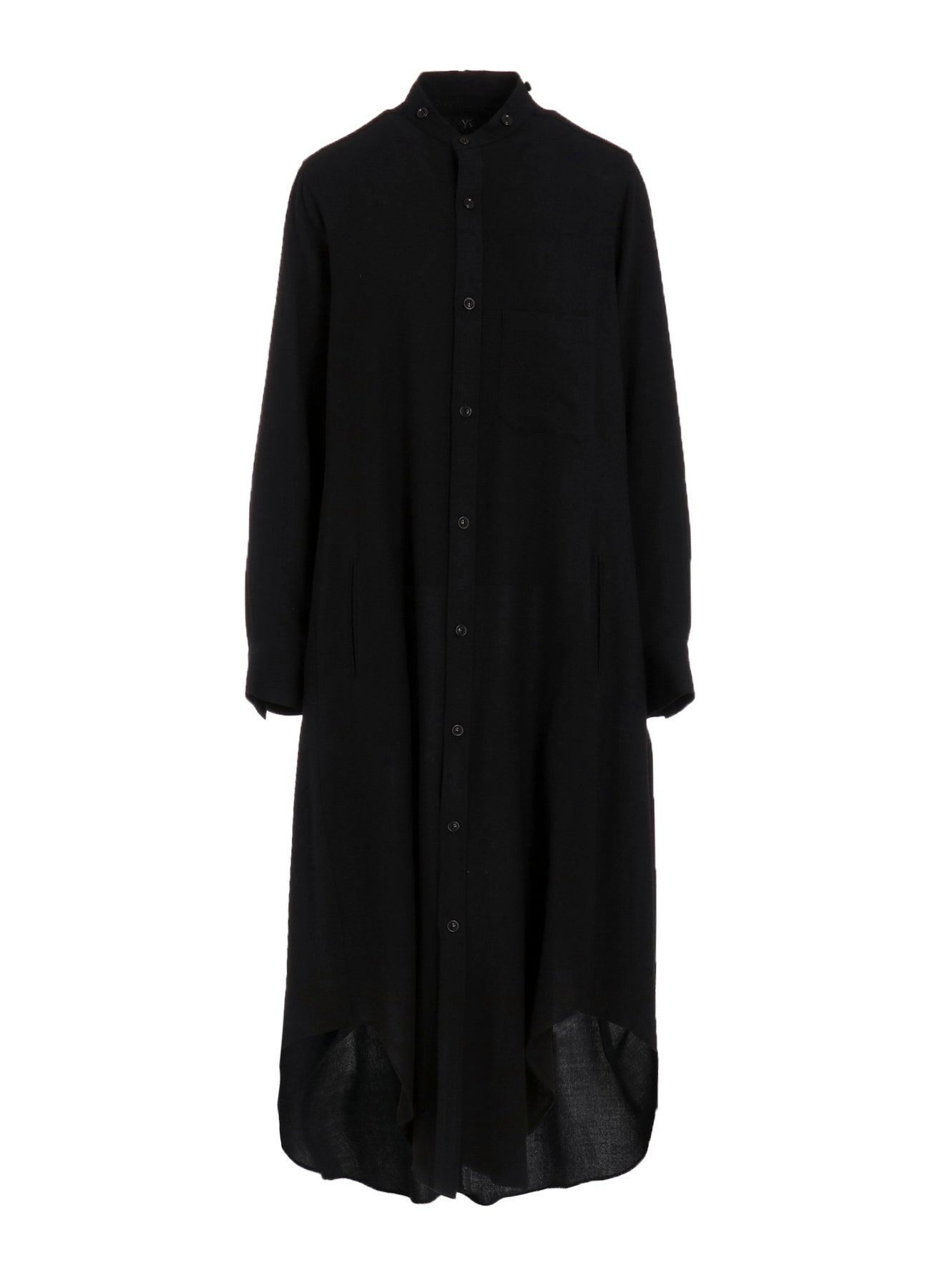 这款前开式DRESS采用羊毛与人造丝纱布混纺材质,柔软且具有适度的垂感与挺括感。其独特设计体现于前后不同的体积感,背部夸张展开形成优美的流动线条。可拆卸领口提供立领变化,也可作为轻便的外搭层穿着。