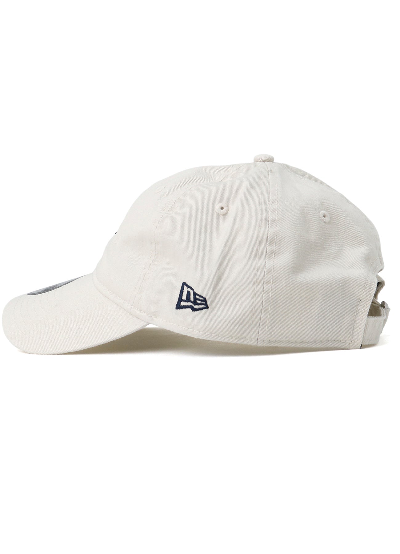 Y's × New Era 2025秋冬系列推出9TWENTY帽款,前部无结构,展现柔软佩戴感。背部的可调节带子提供定制化合身体验。黑色帽子上绣有灰色Y's标志,米白色帽子上绣有海军蓝标志。