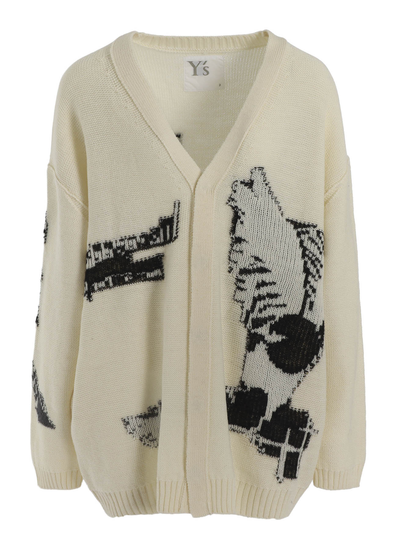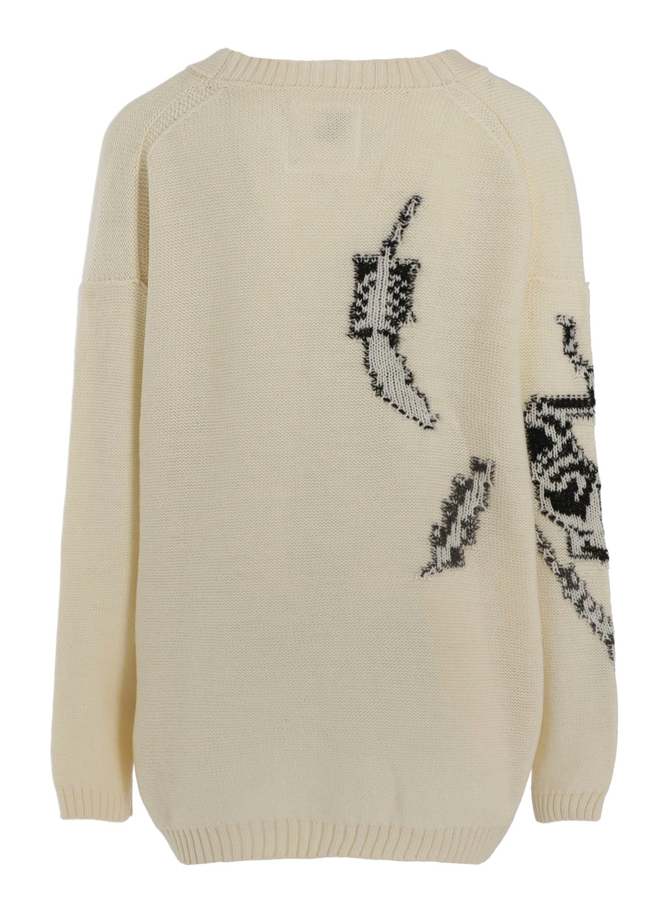 这款来自25AW季节的可逆V领开衫展示了鸟类和羽毛图案的提花针织设计。它可逆穿着,反面展现搞笑图案。宽松的轮廓使其也适合男性。