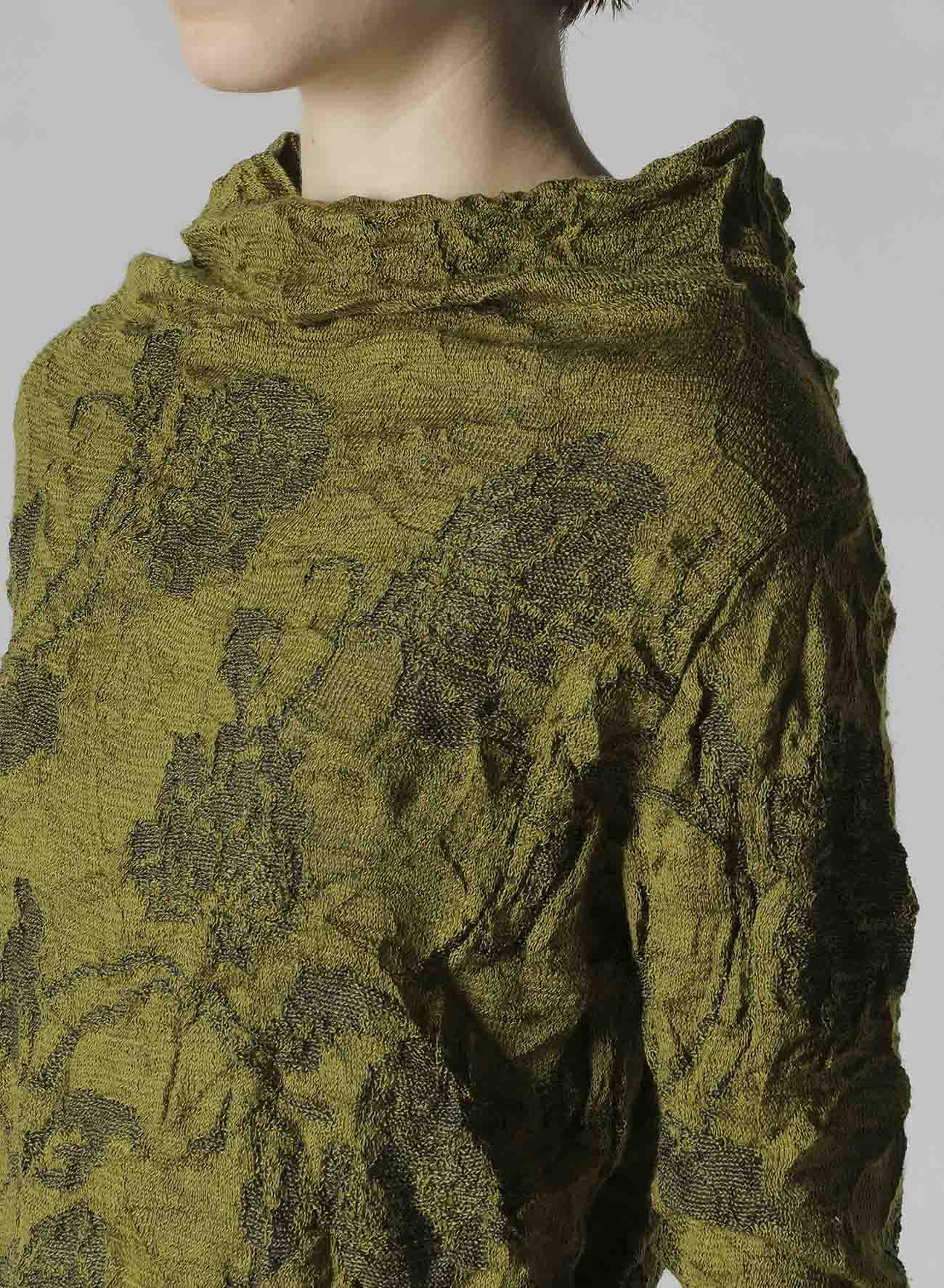这款时尚的花卉图案针织衫采用了宽松的颈部设计和长袖。其独特的皱褶效果通过链条编织展现。虽然轮廓紧身,但颈部更为宽松,展现了优雅的垂感。弹性材质使其适合内穿和多种风格搭配。