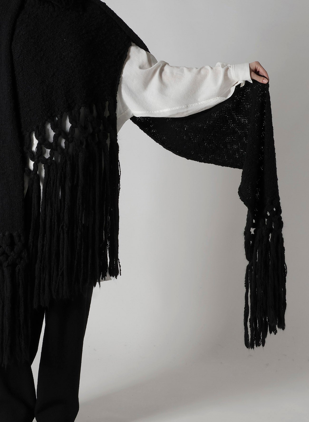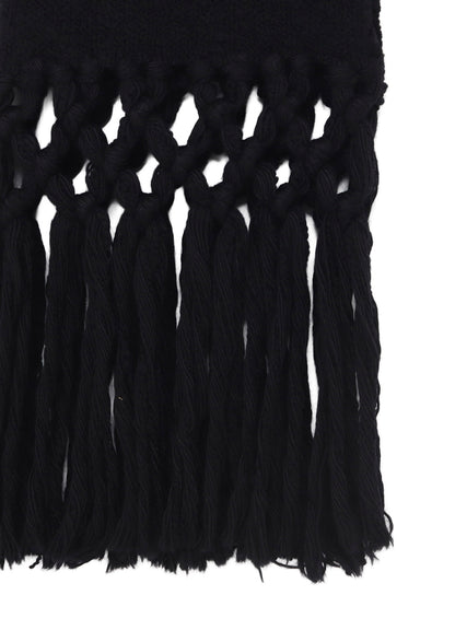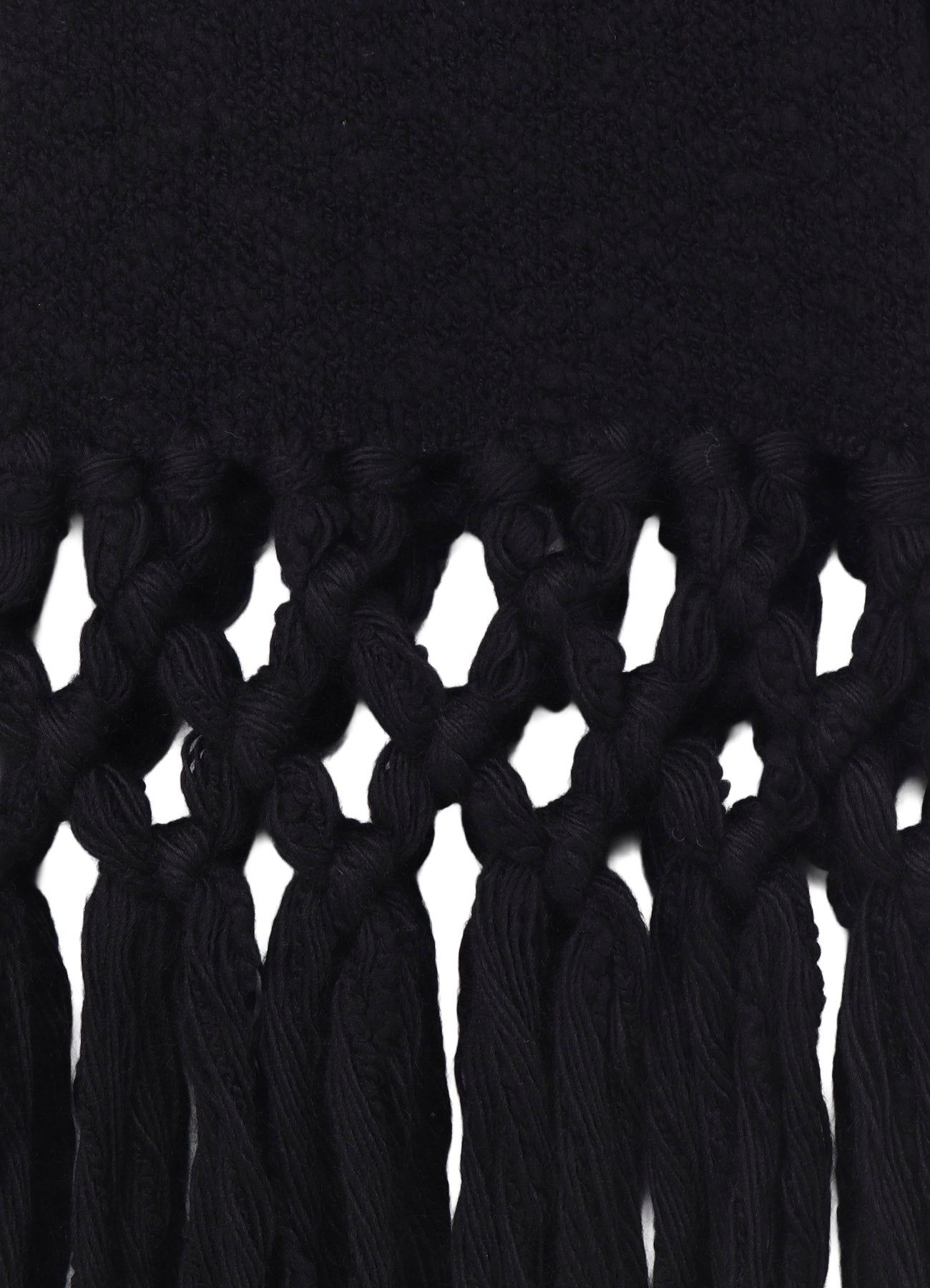 这款围巾使用粗犷的粗纱精心编织,展现出大胆的设计。奢华的流苏细节为其增添了一抹优雅,令围巾散发出独特而华丽的气息。