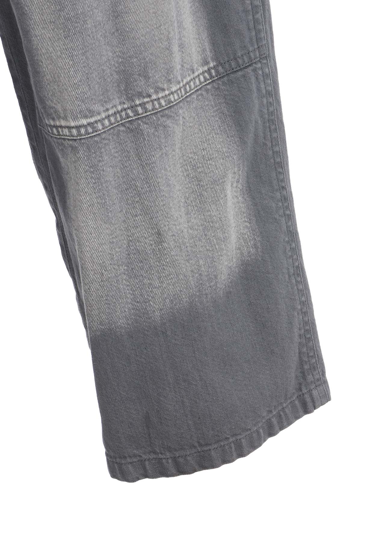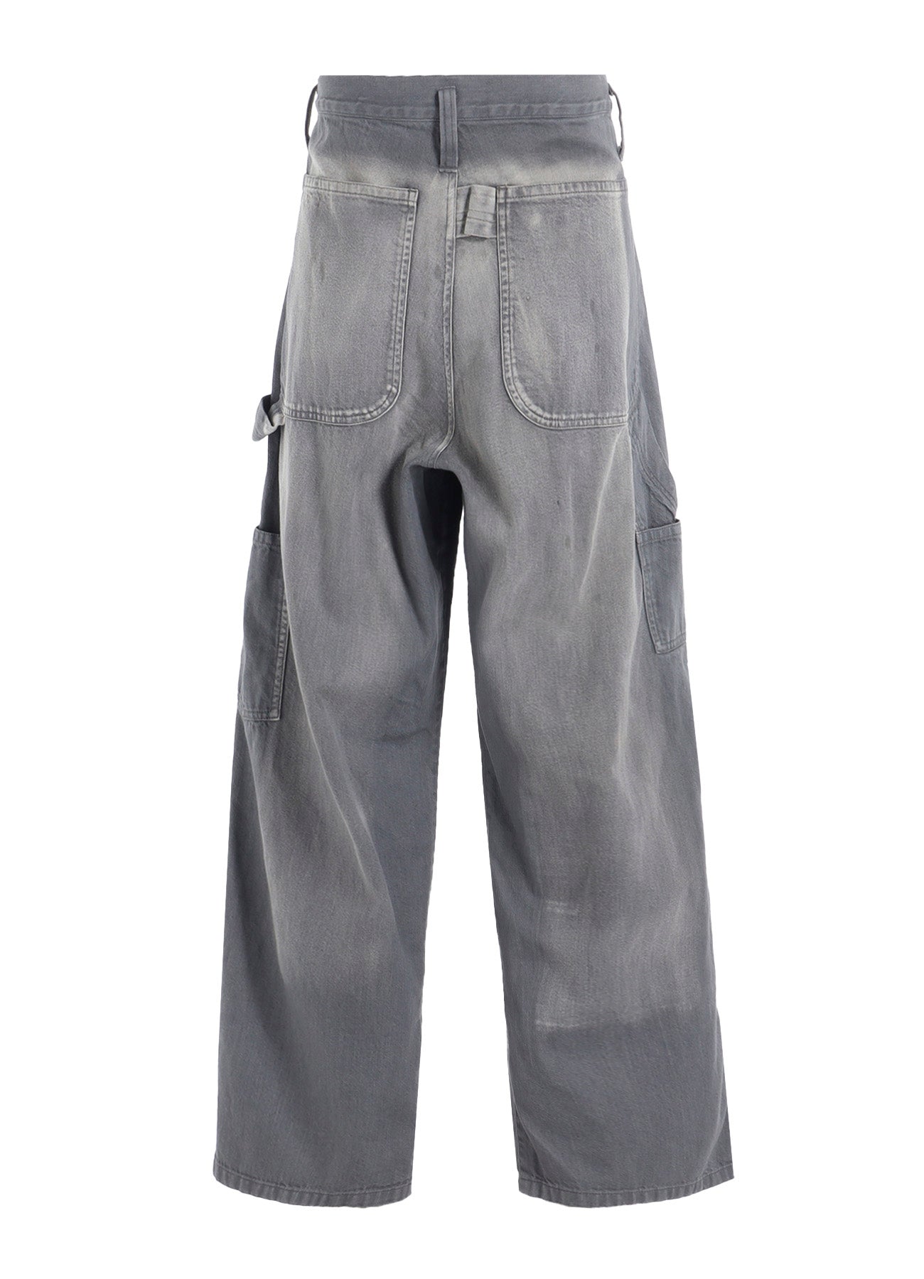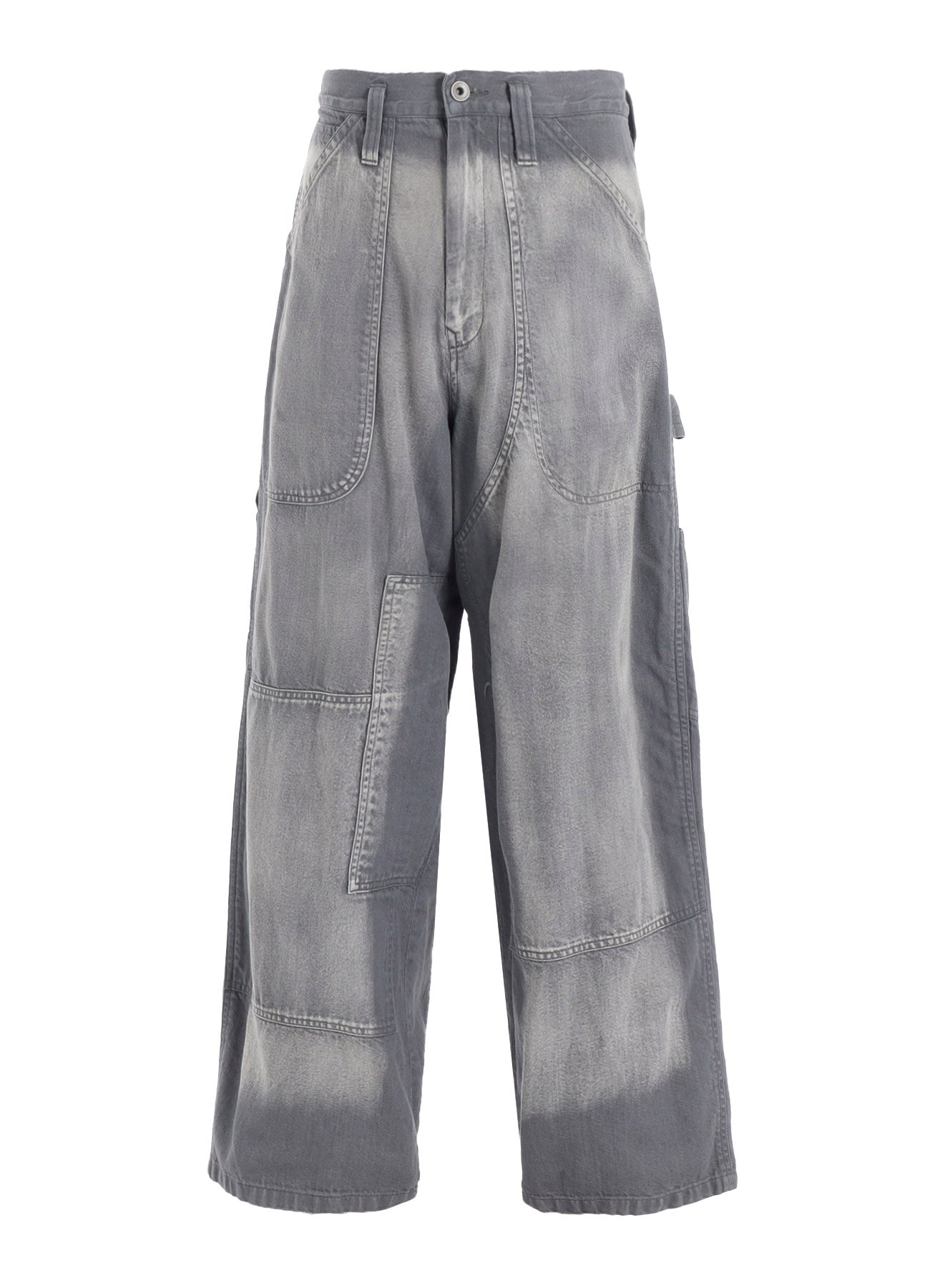 Sported Horse Craft 的 Magic Wash 丹宁工作裤采用渐变效果和拼接细节,突显休闲工装设计。手工制作,具有独特性,包含锤环等功能性元素。染色营造出复古外观,呈现类似污渍的图案。颜色可能会转移,需小心处理。