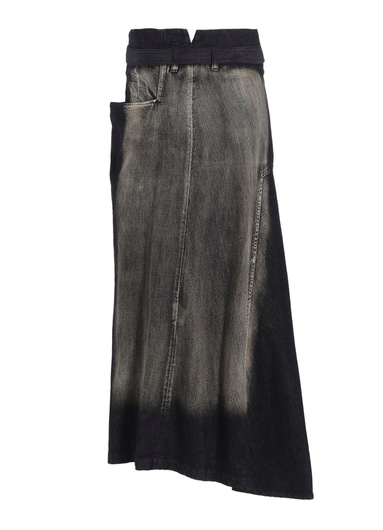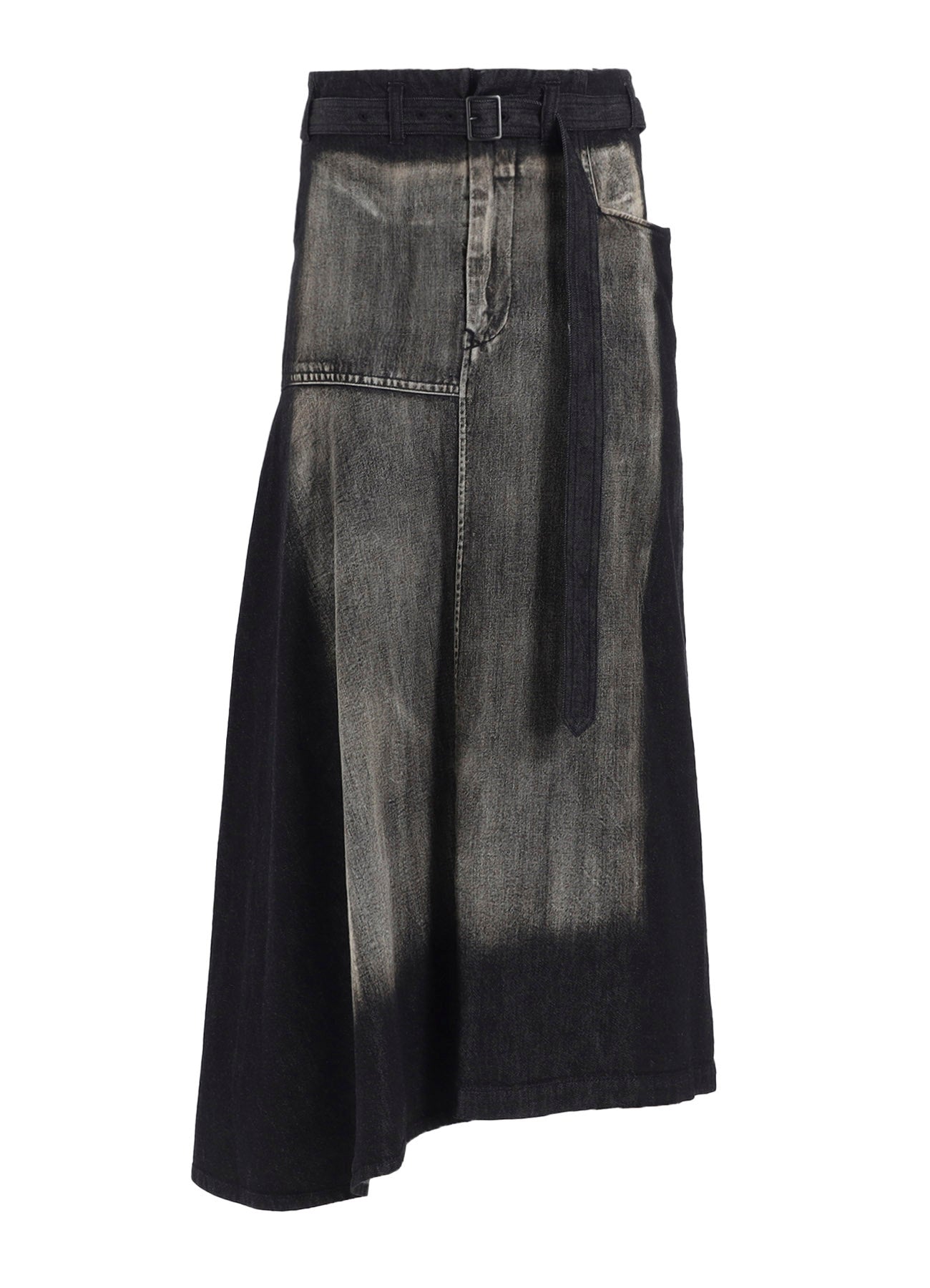 SPOTTED DENIM RIGHT SIDE FLARE SKIRT