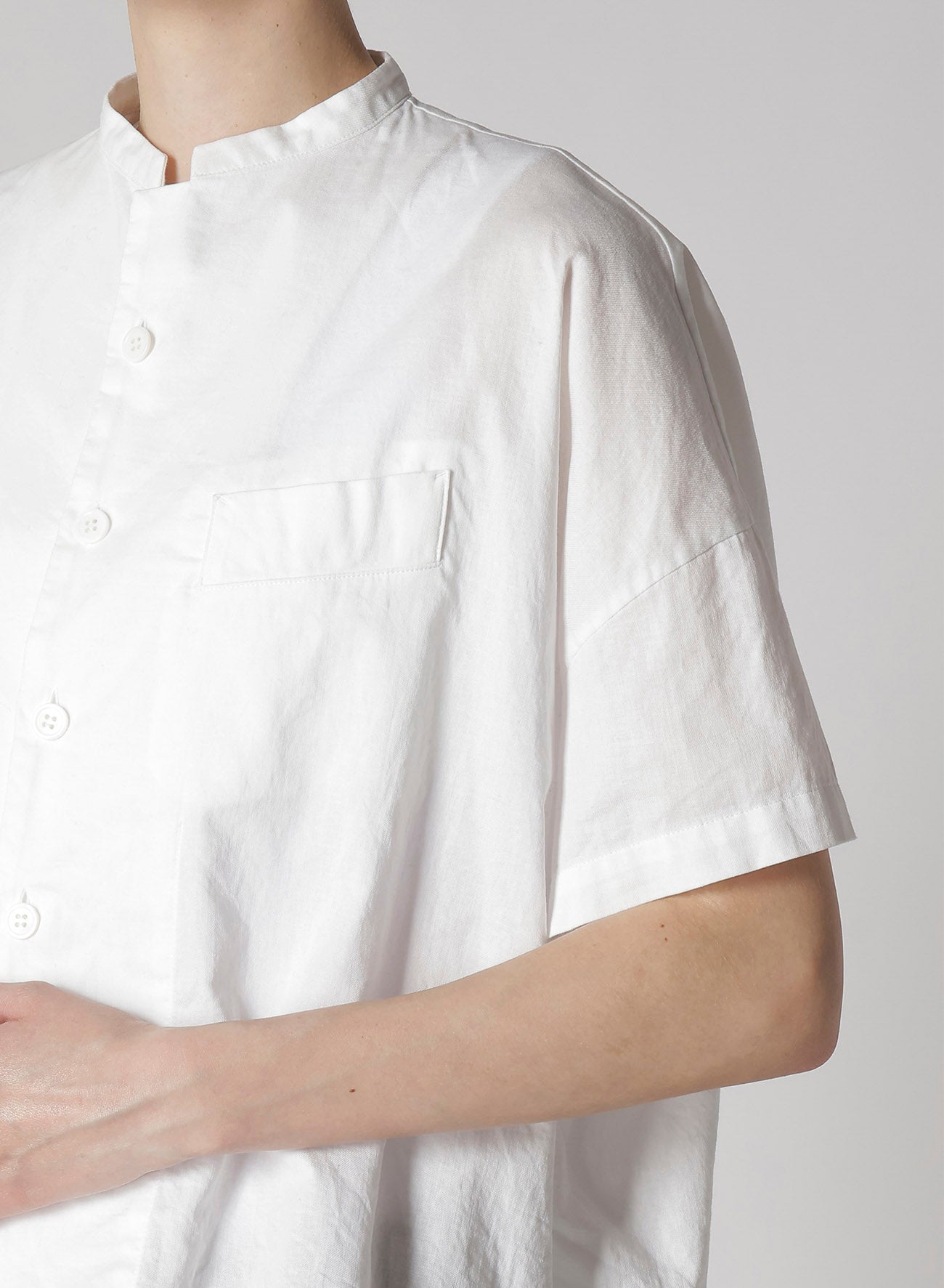 “Y's - BORN PRODUCT”系列利用品牌档案中的轮廓,采用棉质面料。短袖立领衬衫轻盈舒适。宽松短款设计与宽裤完美平衡,实用且时尚,适合多种场合。 - 轻质棉斜纹面料,穿着舒适。 - 立领设计,短袖款式。 - 宽大、方形设计适合多种裤子。 - 休闲又时尚,适合不同环境。 - 柔软水洗处理,成品略有不同。