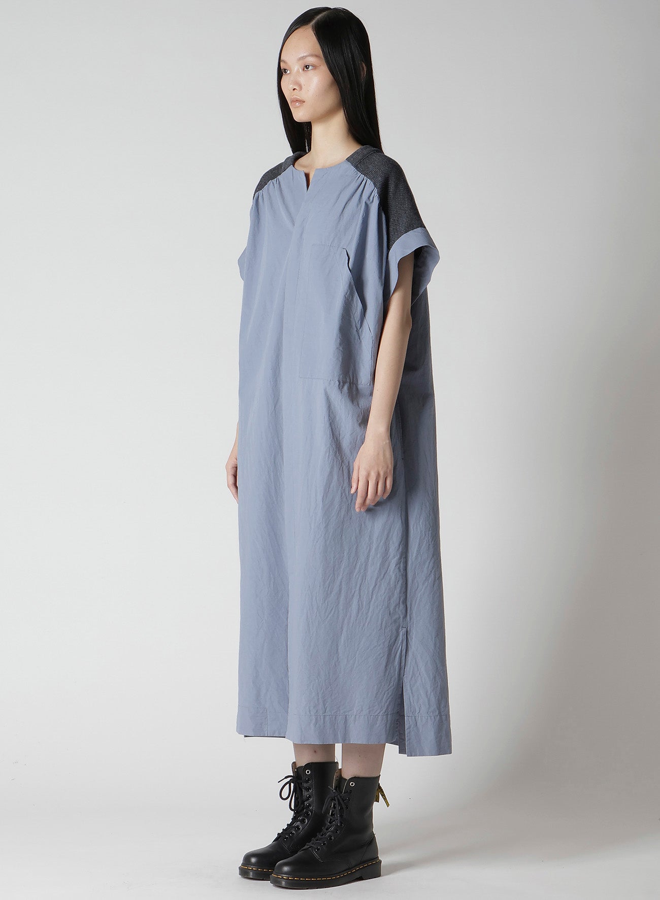 这款DRESS由棉和LINEN混合制成,通过独特的织物处理实现了柔软而蓬松的质感。羊毛作为一种点缀增添了独特的风格。非常适合追求舒适与优雅结合的人士。