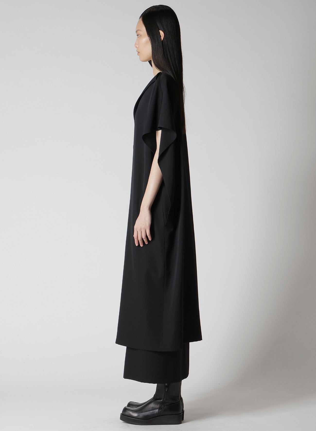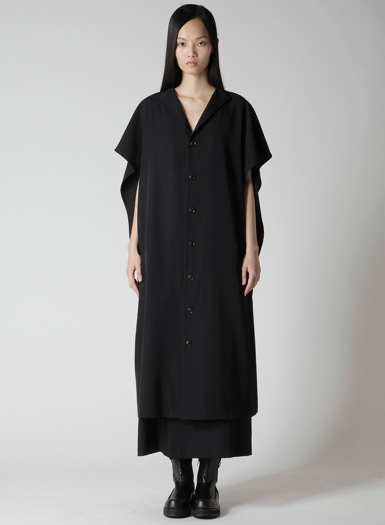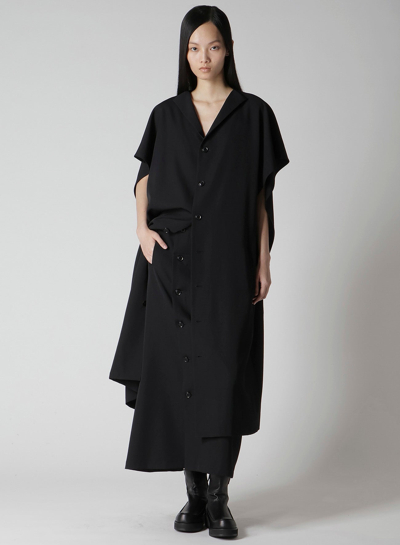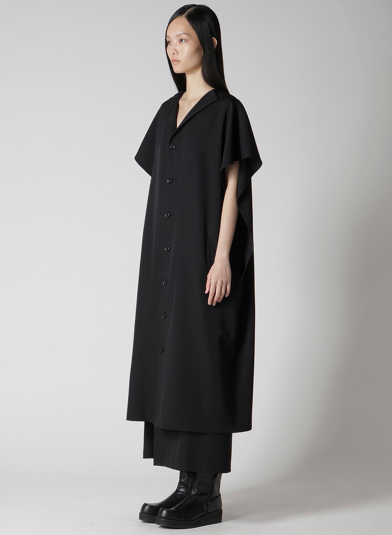WOOL GABARDINE FLARE SLEEVE FRONT OPEN DRESS