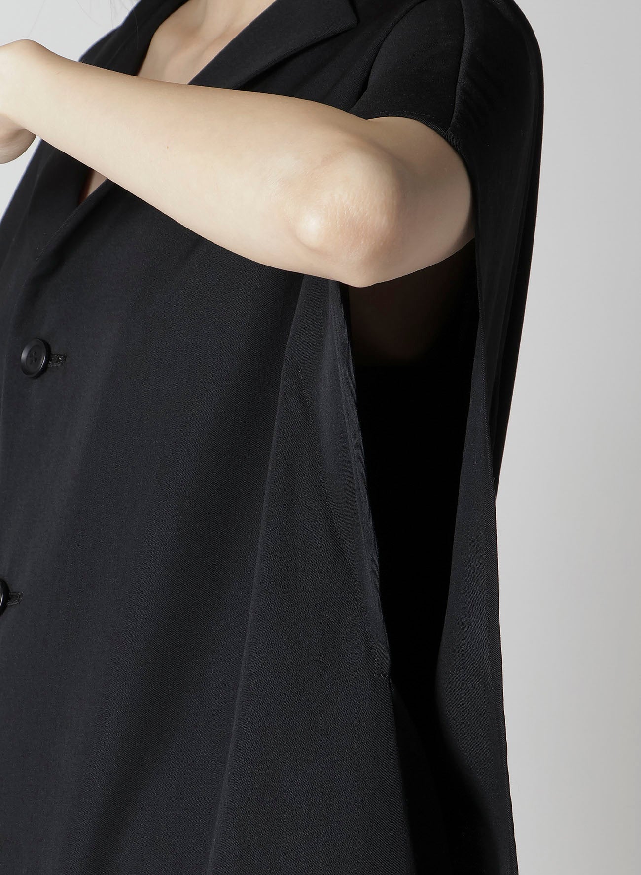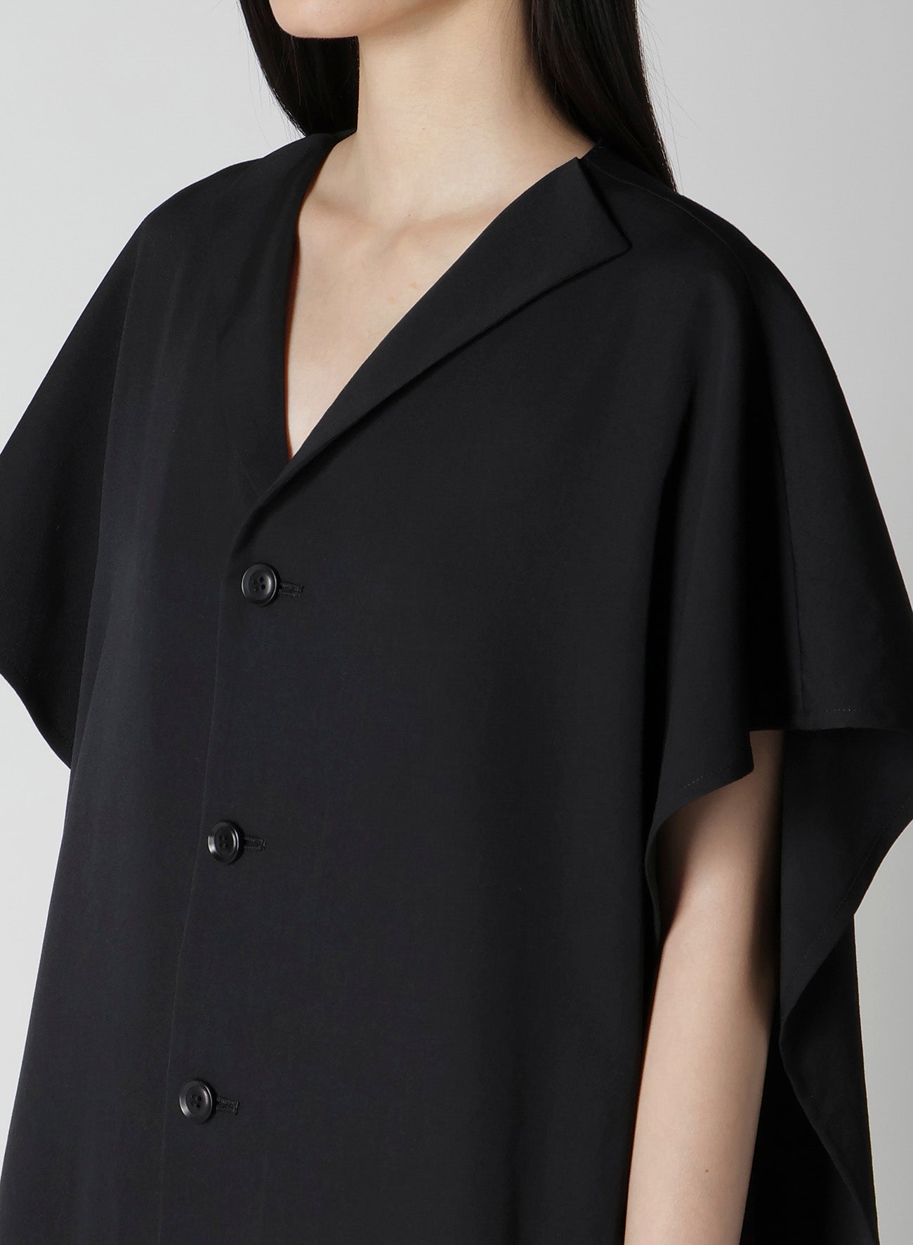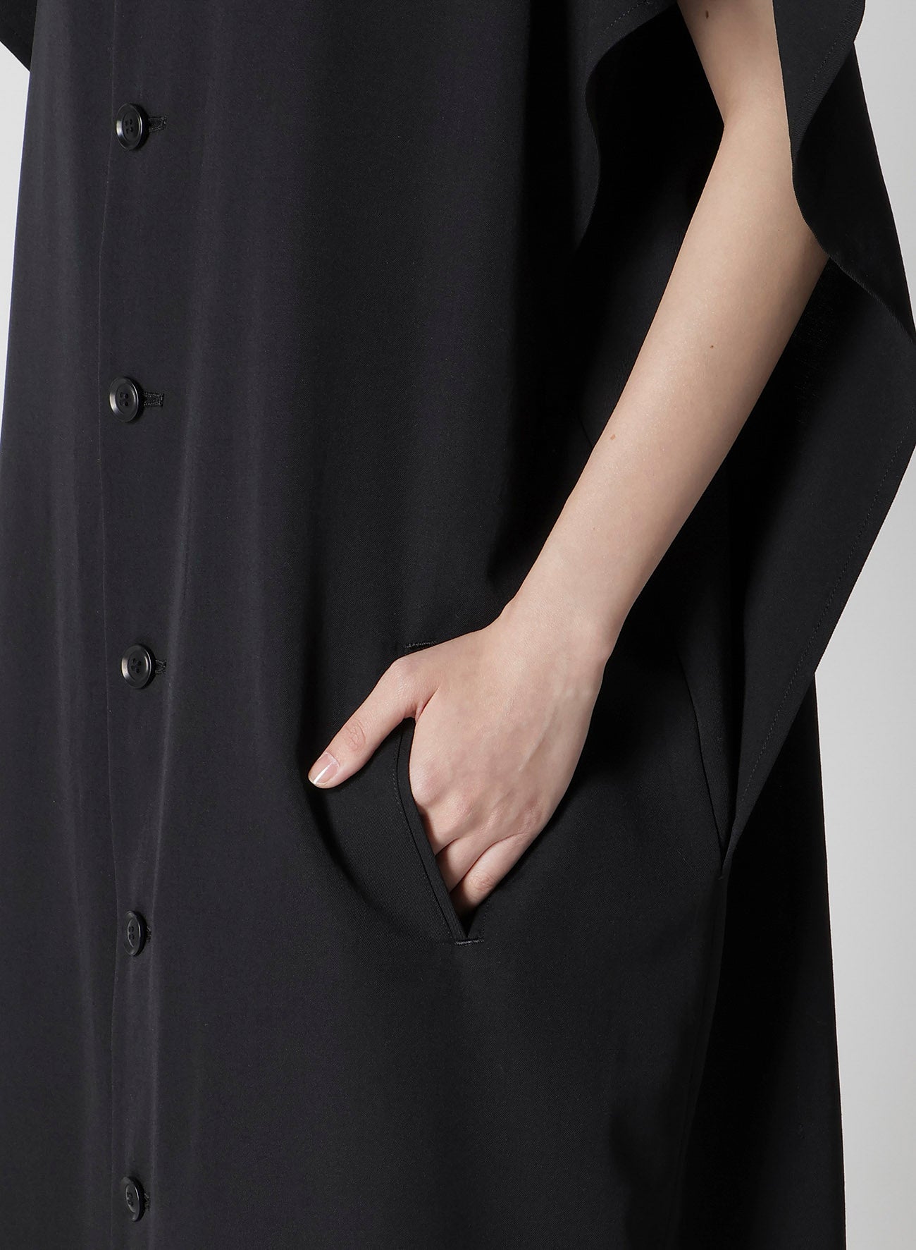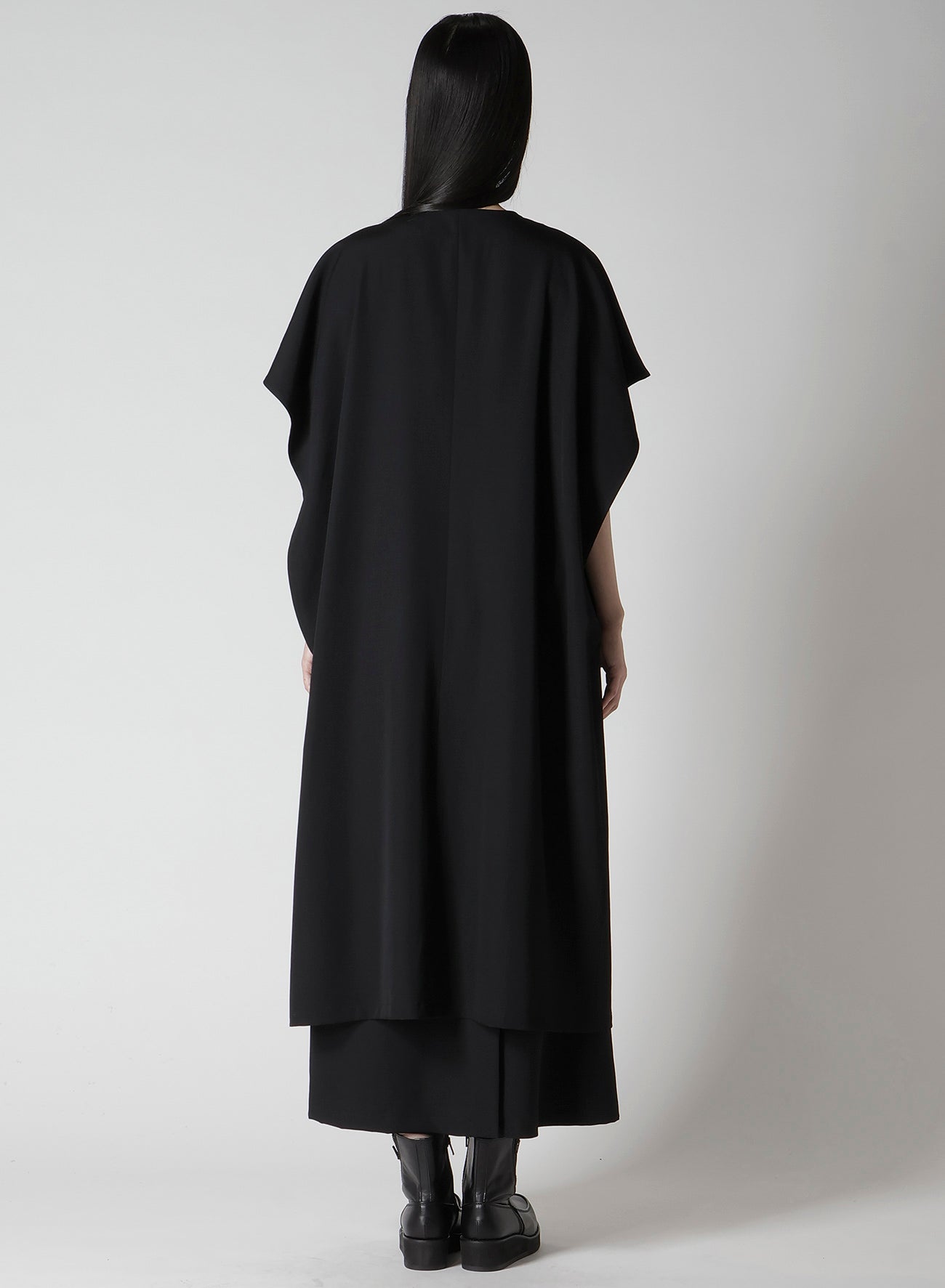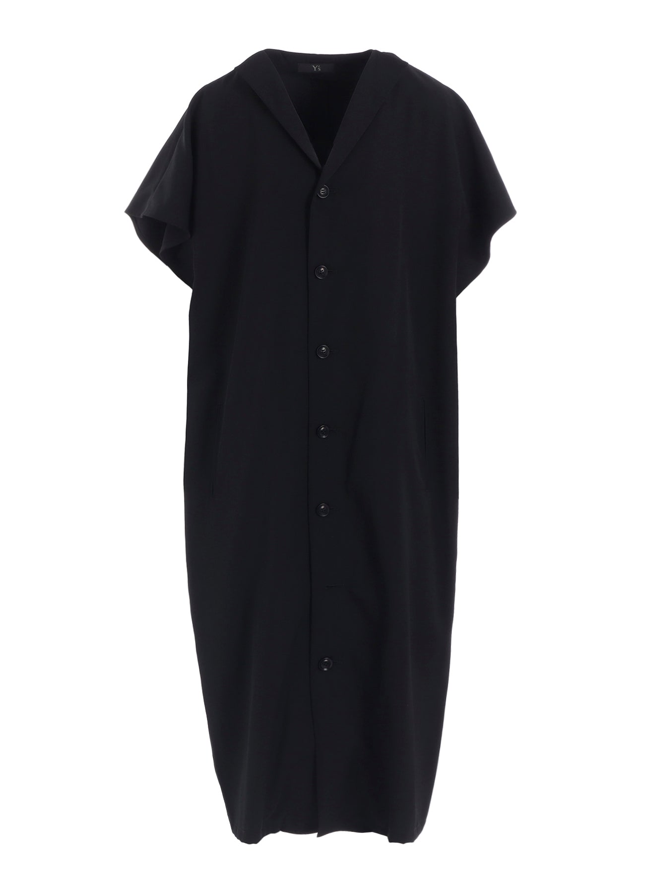 WOOL GABARDINE FLARE SLEEVE FRONT OPEN DRESS
