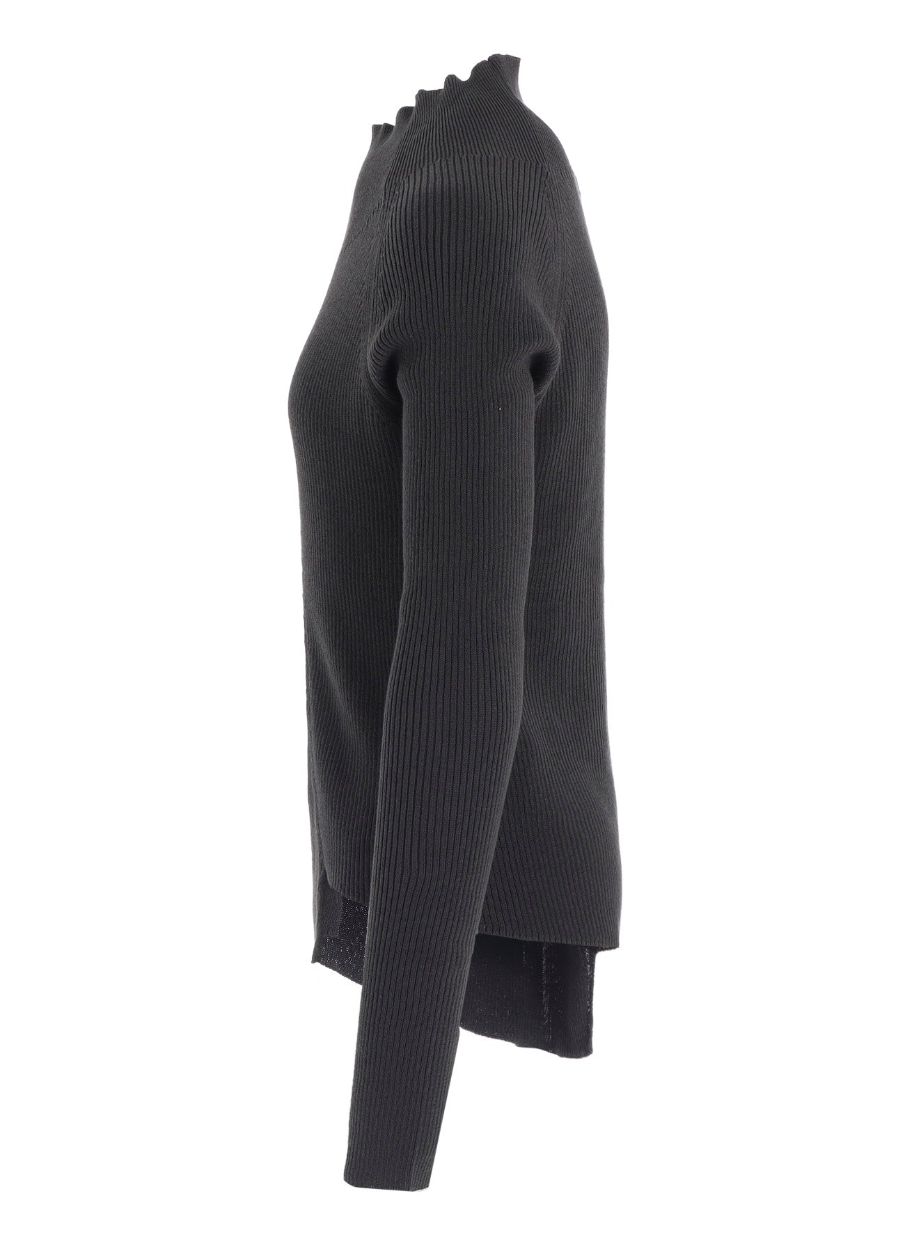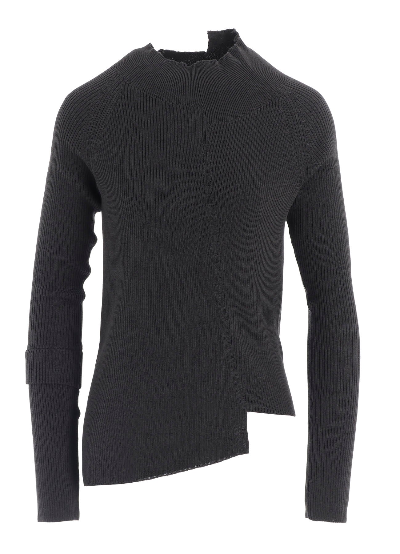 COTTON RIB TWISTED HIGH-NECK PULLOVER