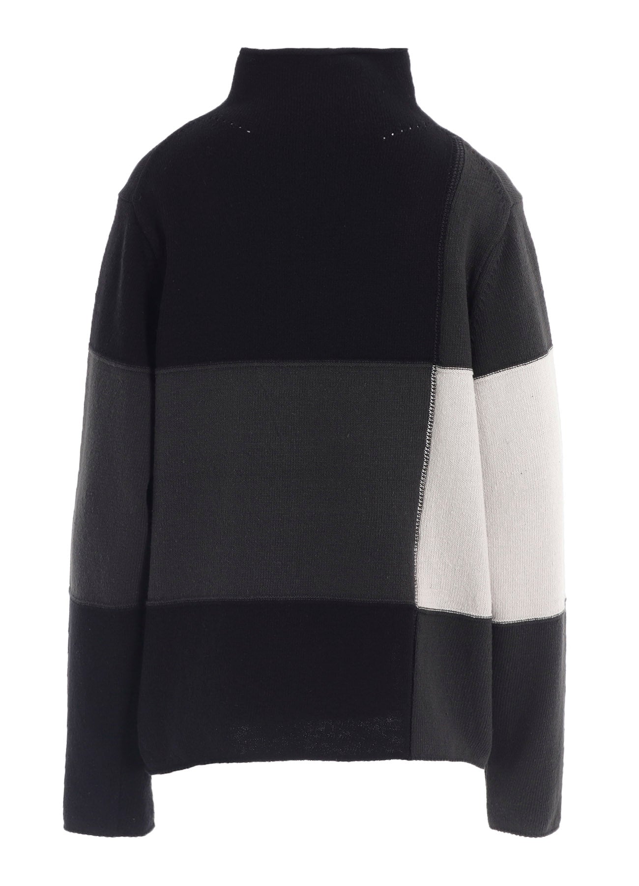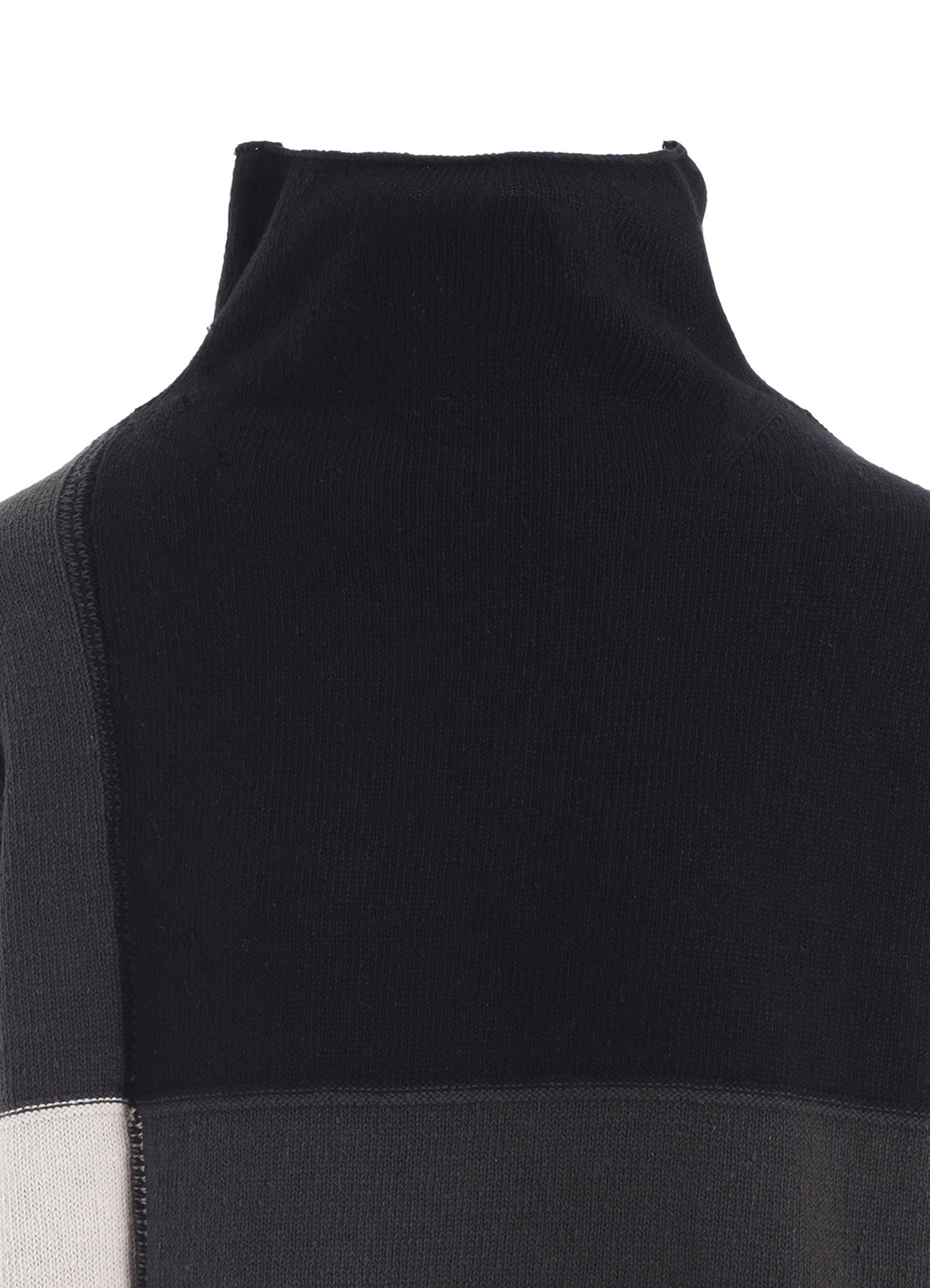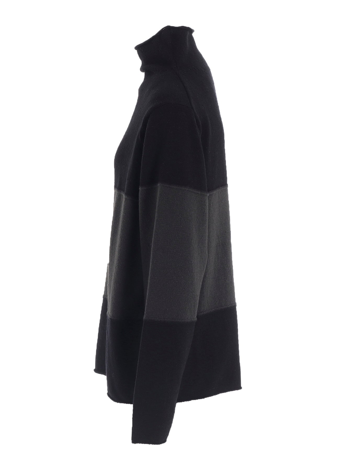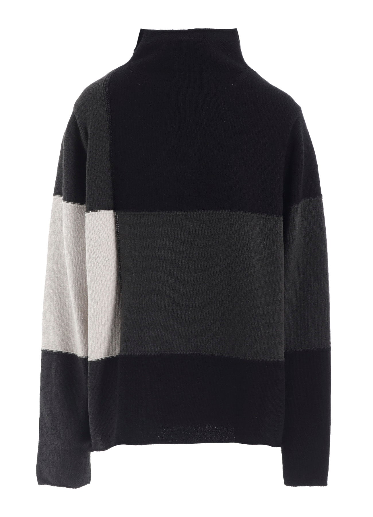 HARD-TWISTED BLOCK INTARSIA HIGH-NECK PULLOVER