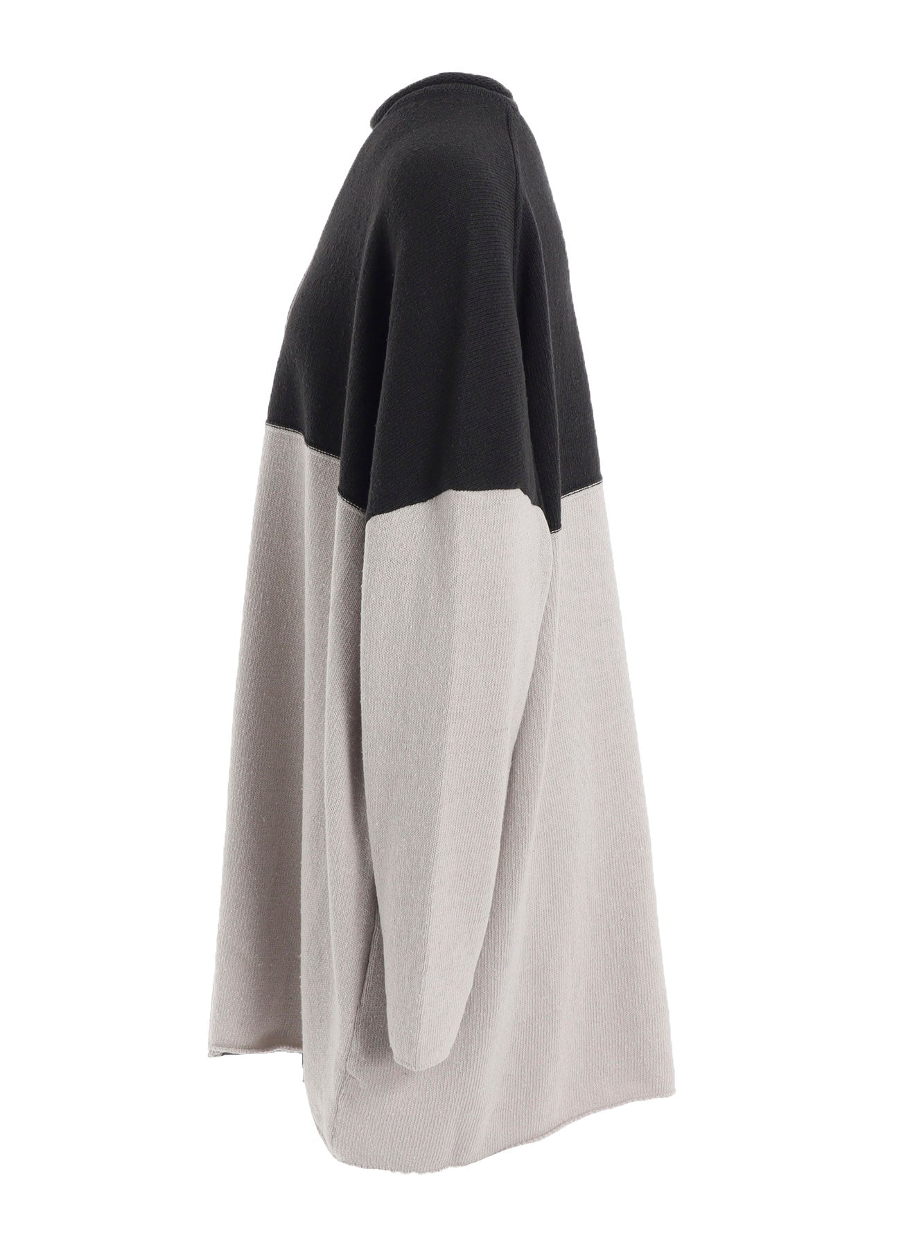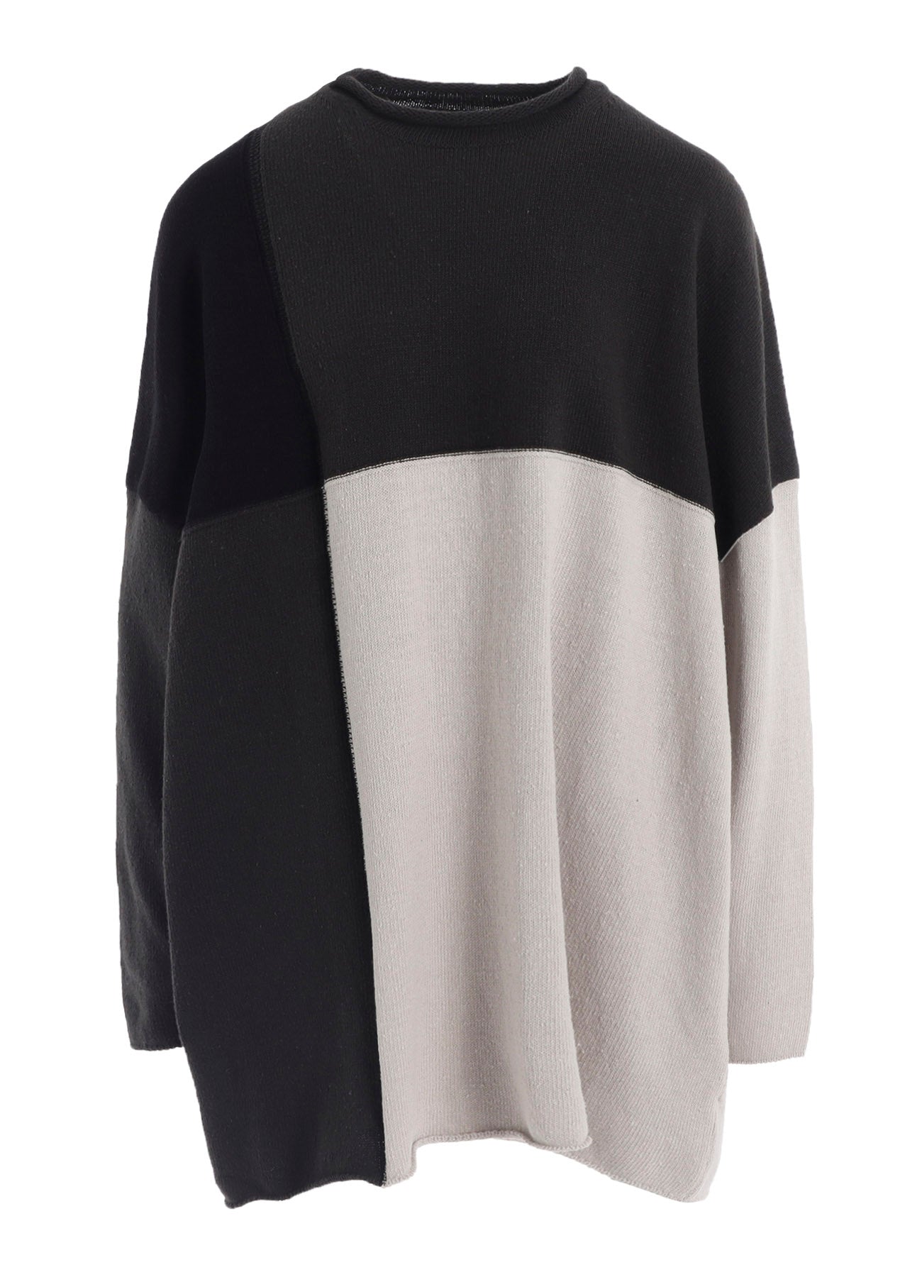 HARD-TWISTED BLOCK INTARSIA SHORT DRESS PULLOVER