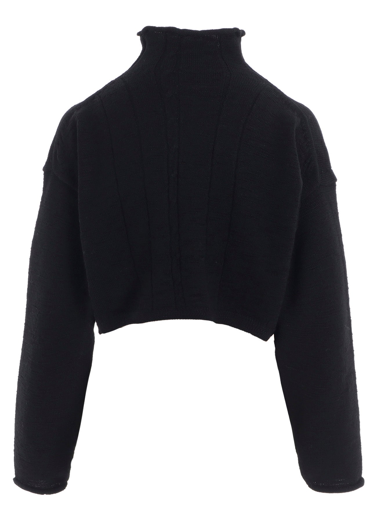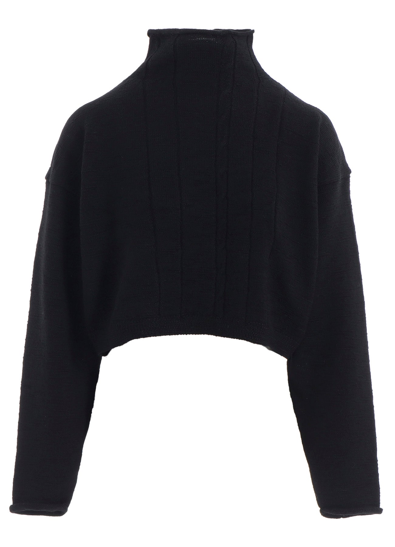 This high-neck sweater is made from slub wool and features a short length design, perfect for layering over a blouse or top. Its chic style is ideal for creating fashionable outfits. Pair it effortlessly with various inner wear pieces for a dynamic, layered look. A versatile addition to your wardrobe.