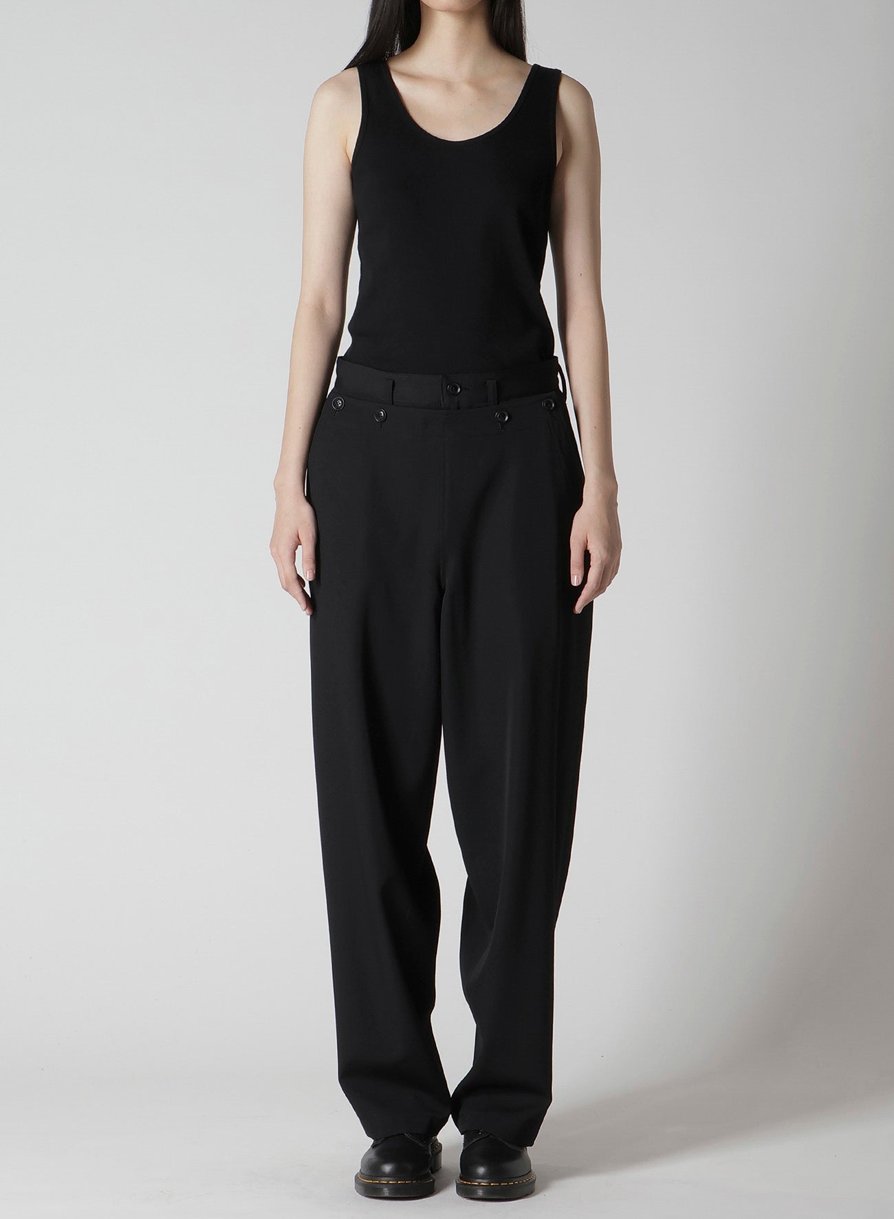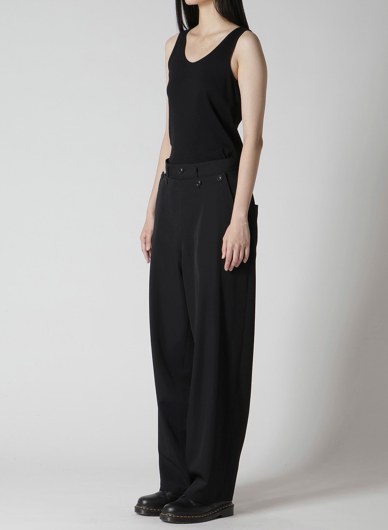 这款裤子是Y's集合中的关键单品,采用羊毛华达呢面料,细微的皱褶为羊毛增强了自然质感。简约的轮廓设计在腰部饰有水手风细节,适合所有性别穿着。