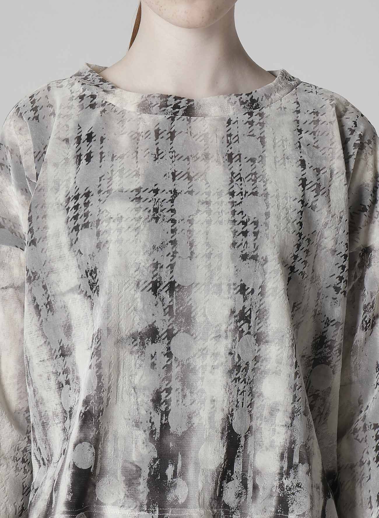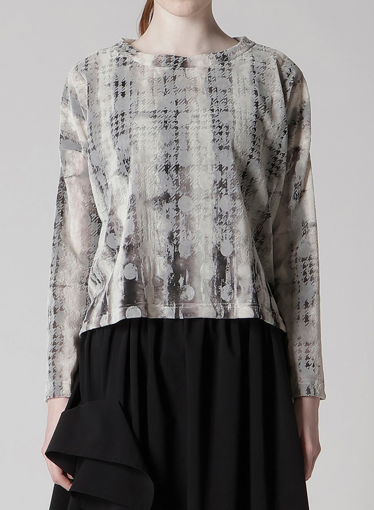 HOUNDTOOTH DOTS TULLE CROPPED ROUND NECK T