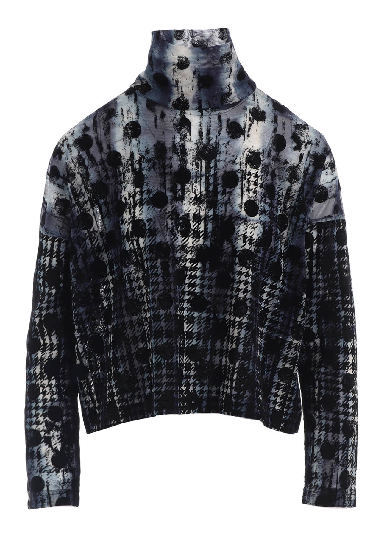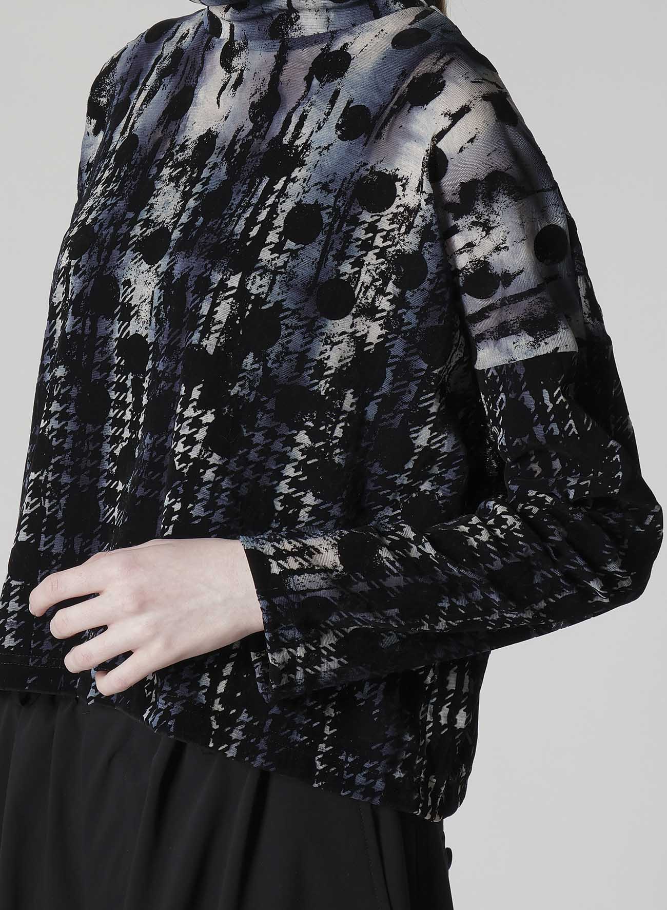 HOUNDTOOTH DOTS TULLE CROPPED HIGH-NECK T