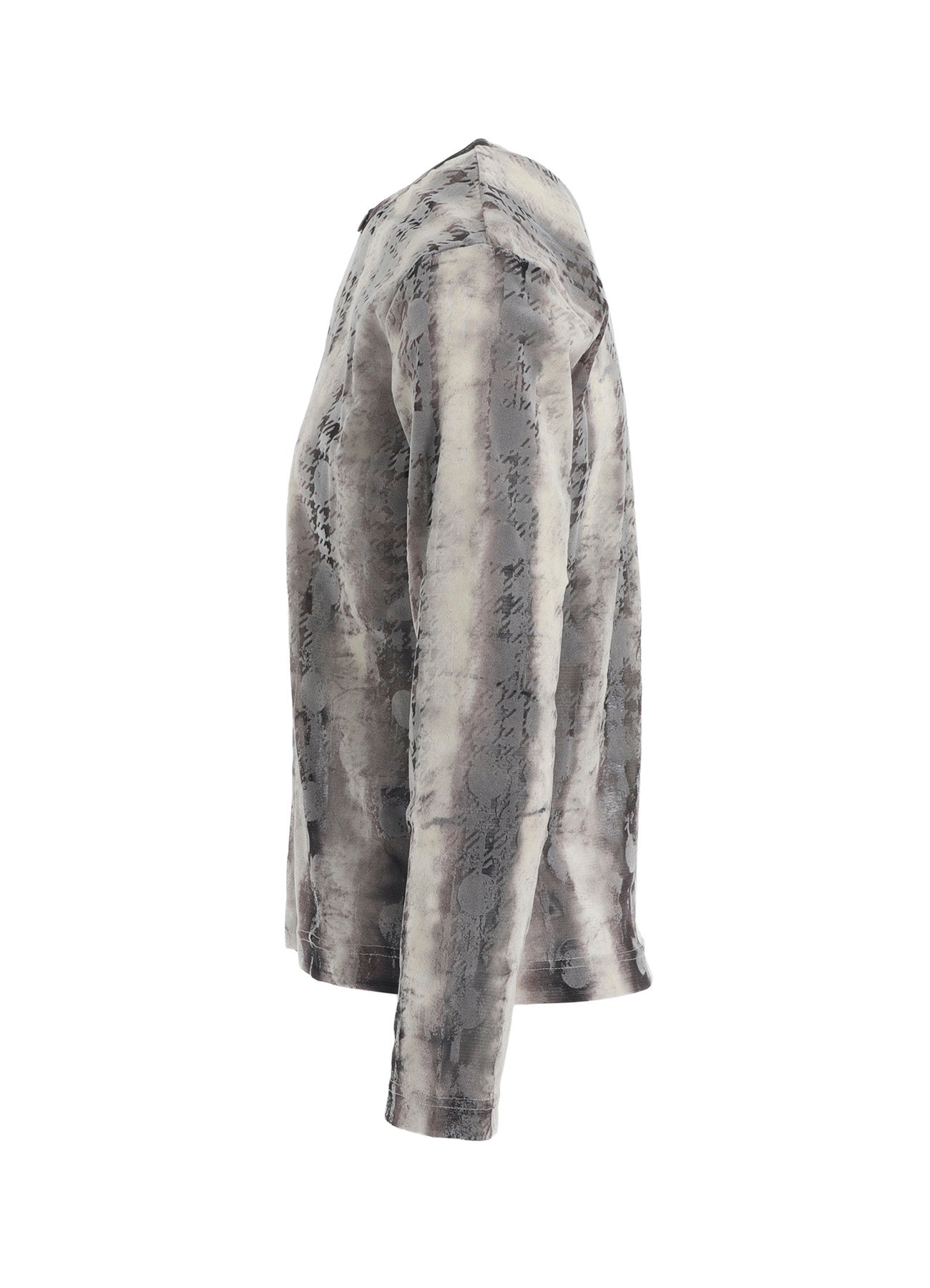 这款高领长袖开衫采用独特的面料,模糊的条纹印花在薄纱上,与逐渐淡化的人字形图案融合。小巧的尺寸让风格独具一格,艺术性图案混合,适合多种搭配。