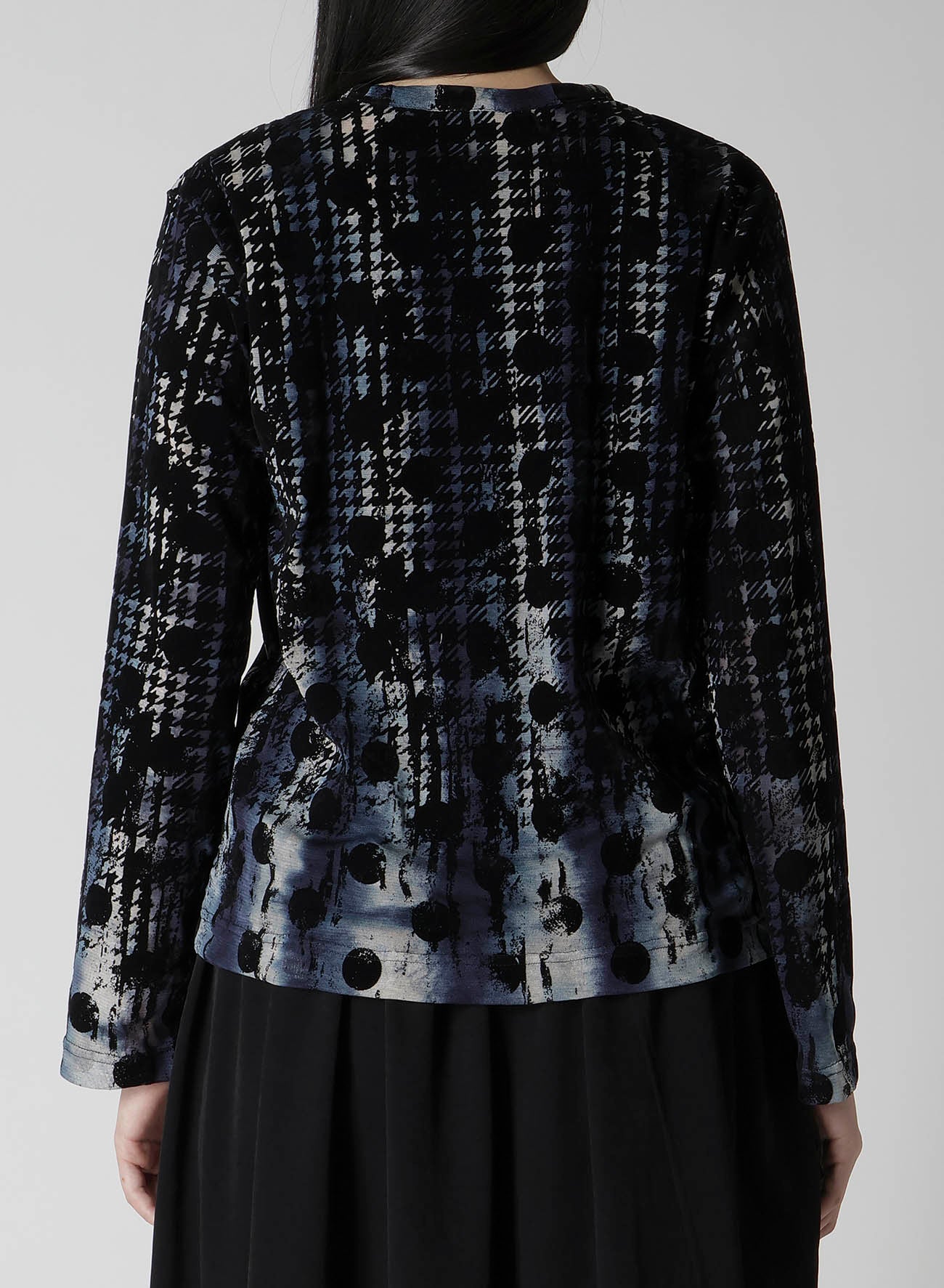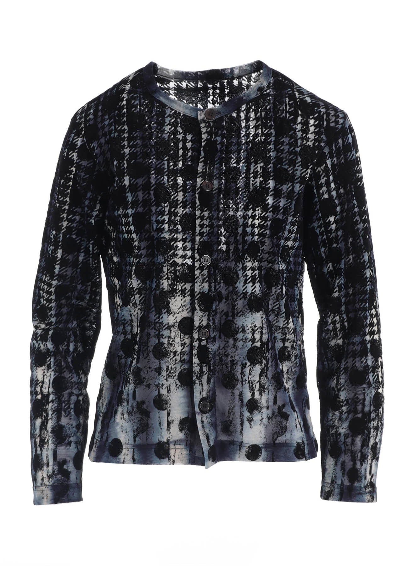 HOUNDTOOTH DOTS TULLE ROUND NECK LONG SLEEVE CARDIGAN