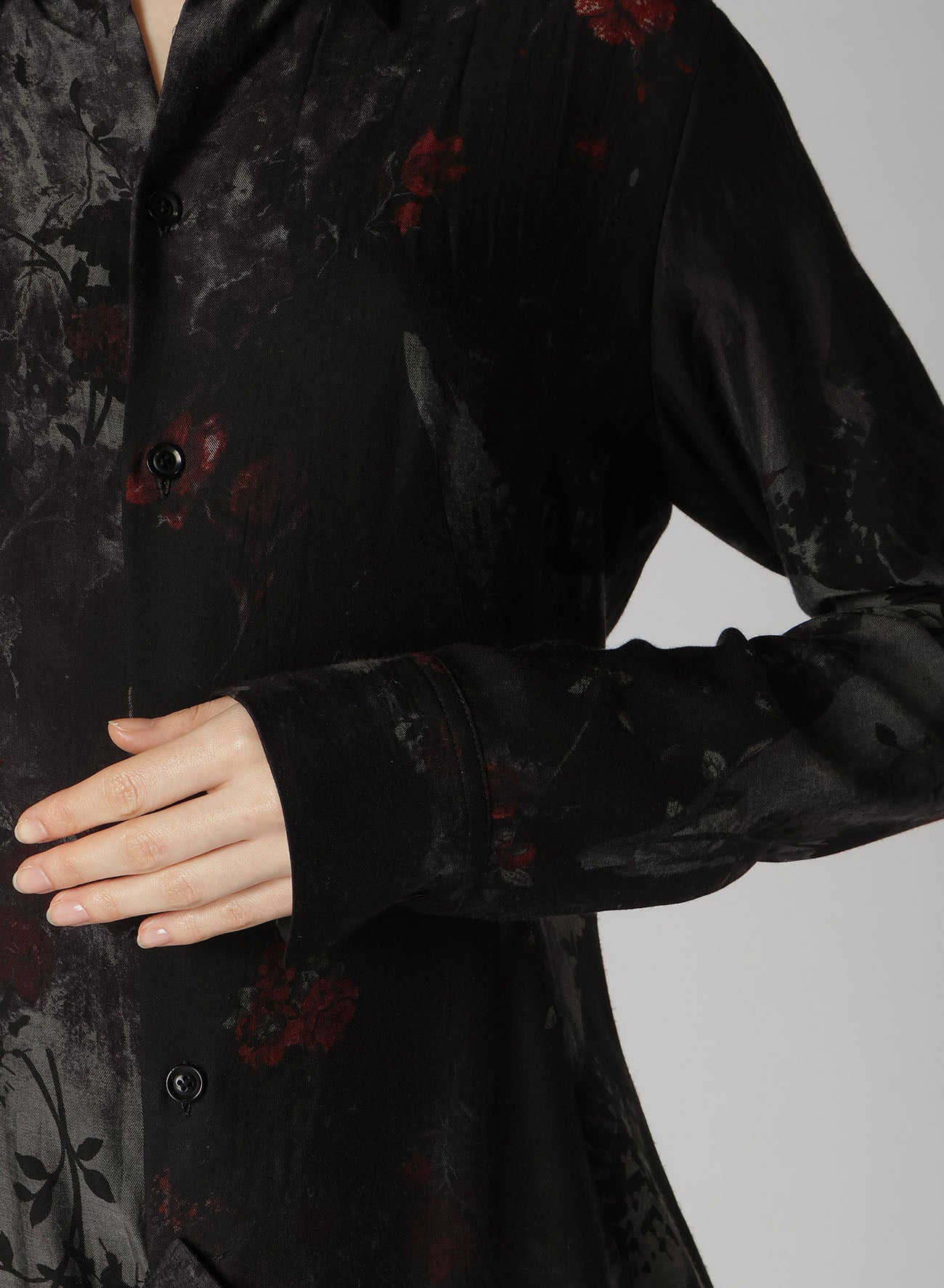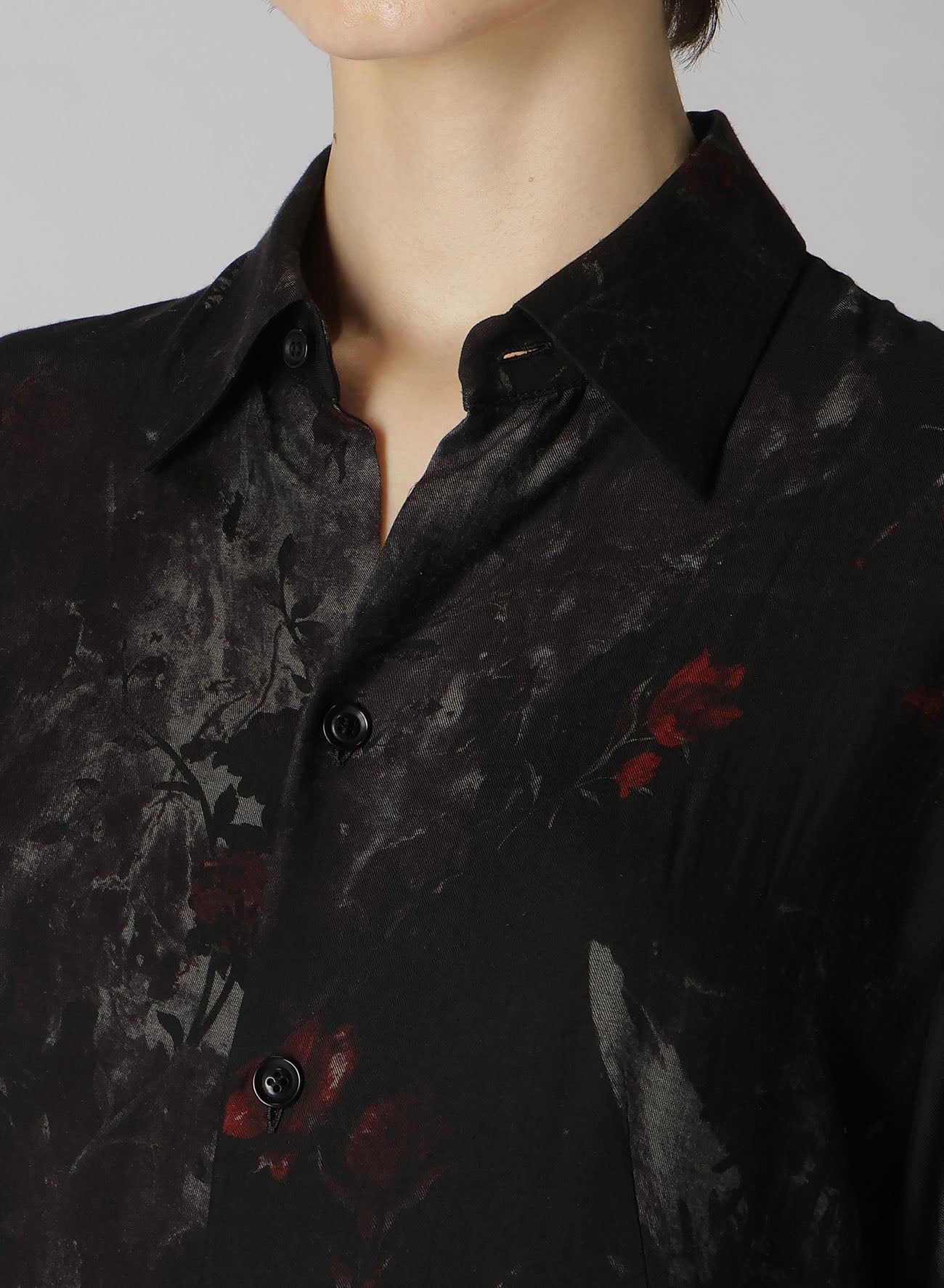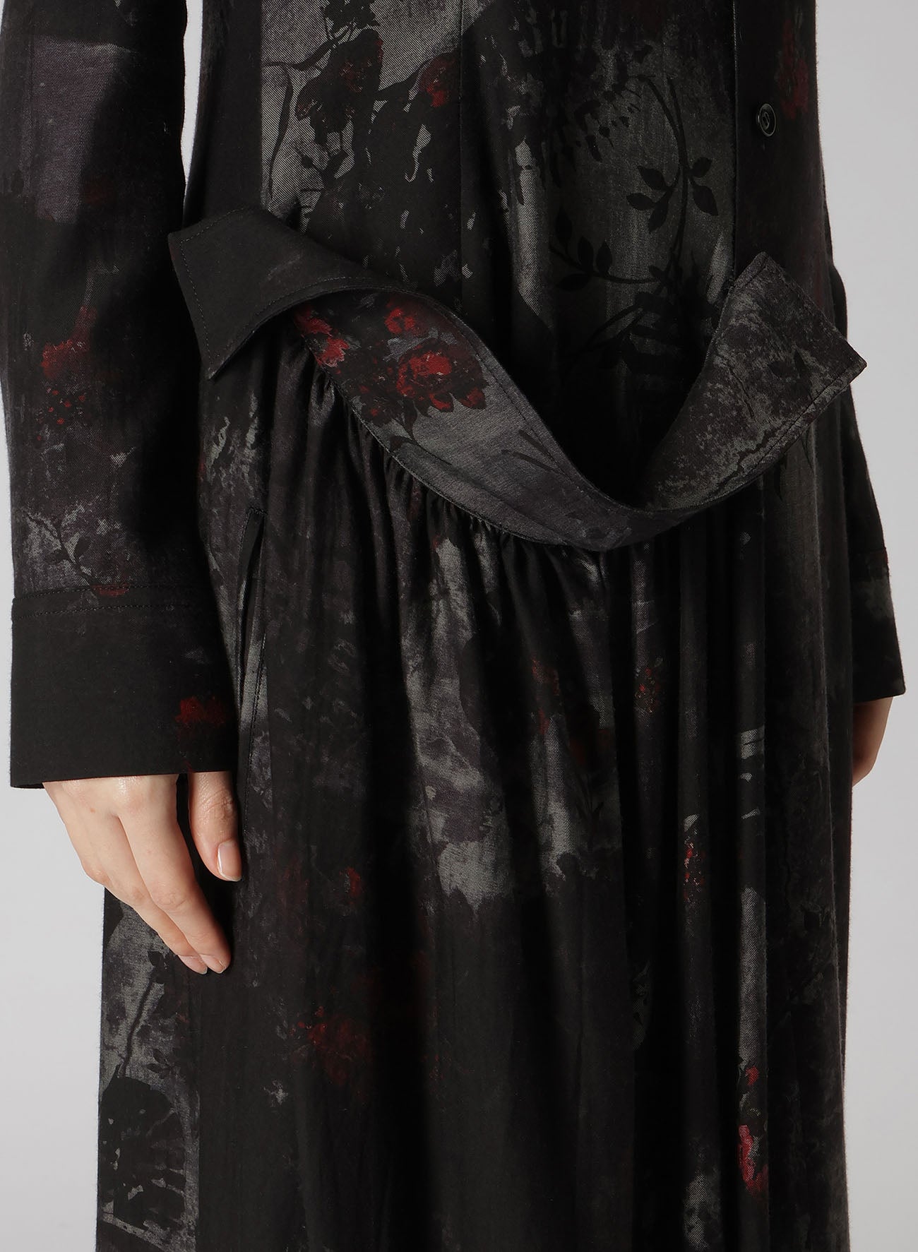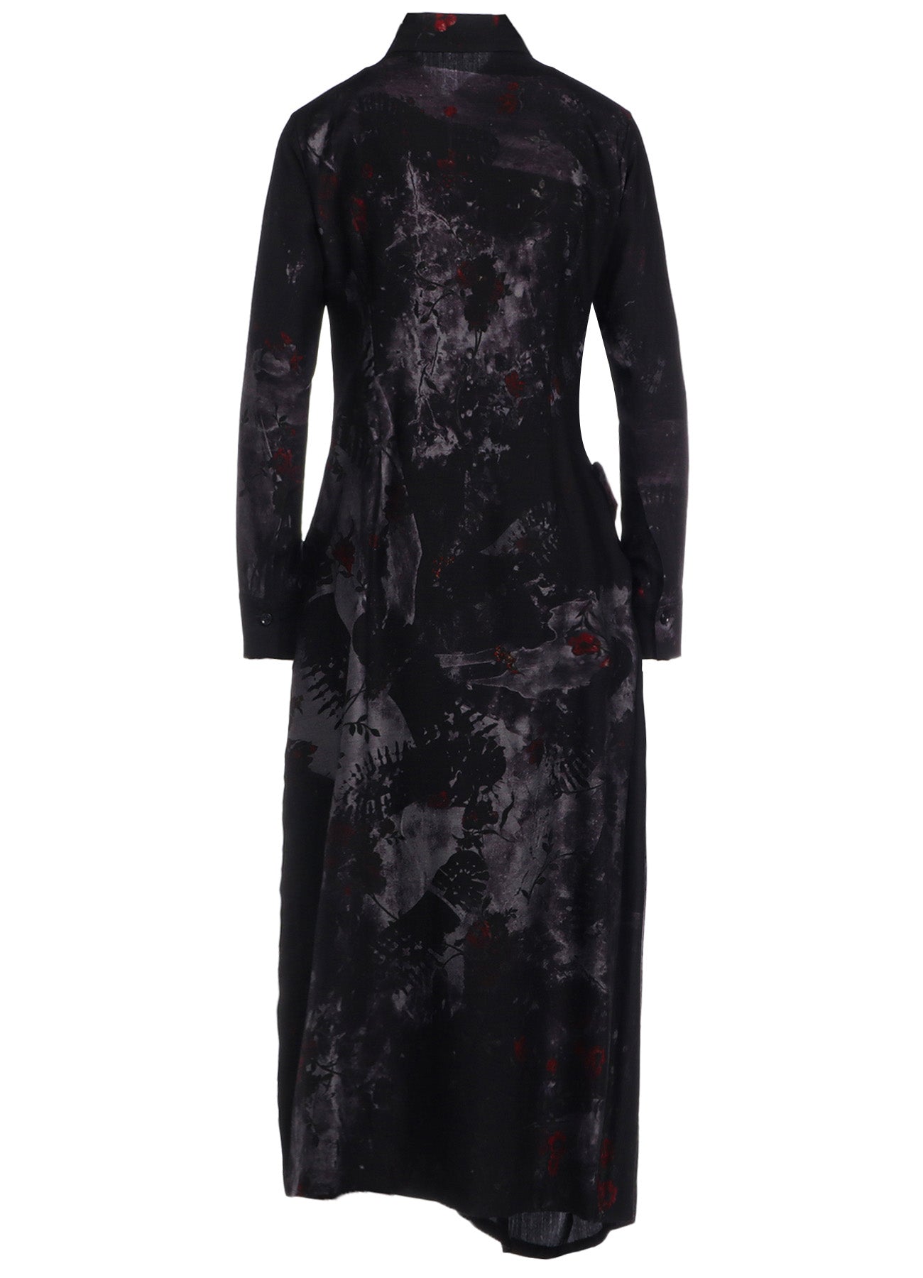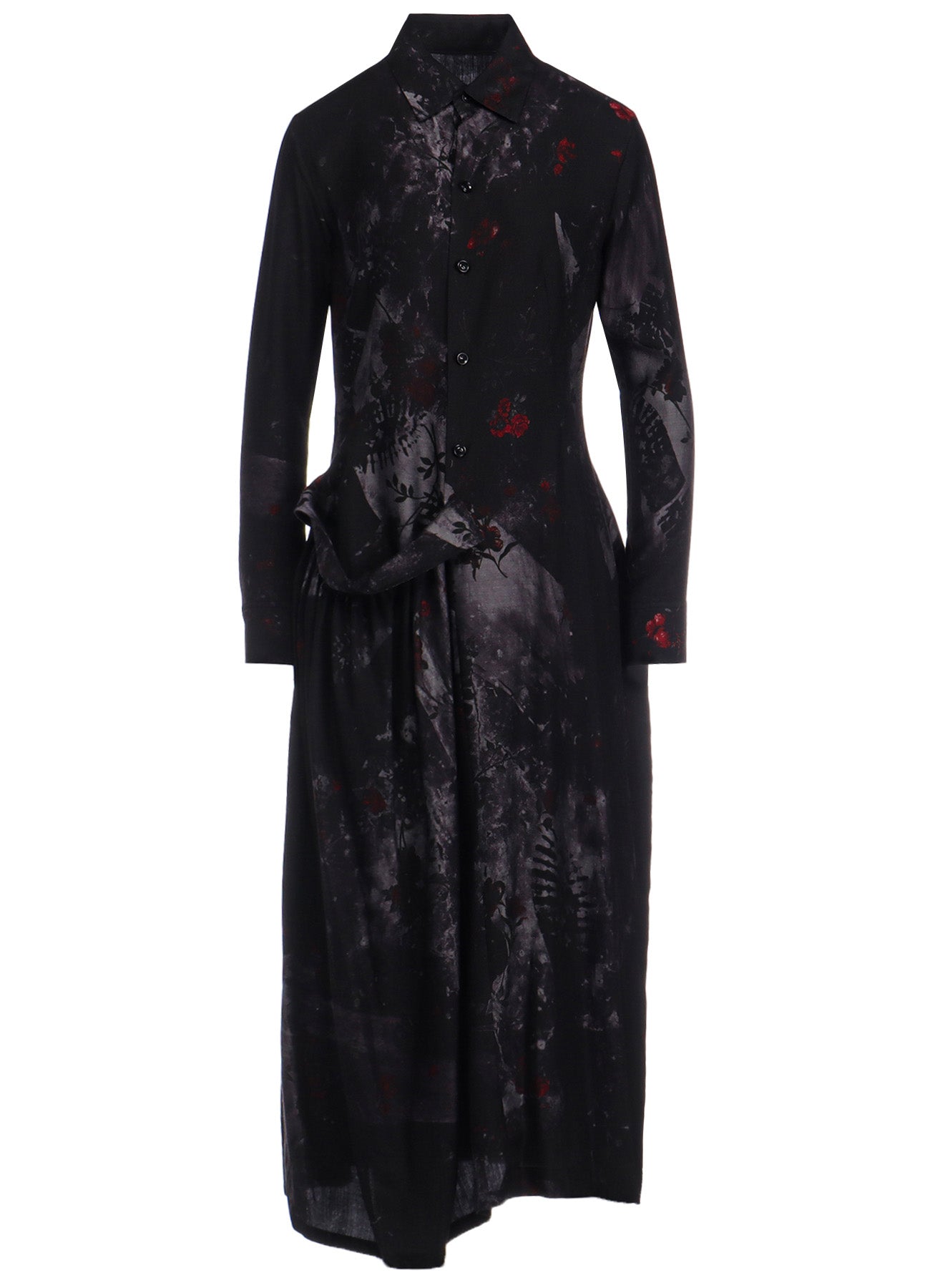 这款连衣裙概念将单独制作的上衣和裙子合并为一件,采用模仿街道上落花的印花。基础是修身的衬衫连衣裙,增强了褶皱层的悬垂面料,以增加动态的体积。模特图片使用样品;请查看尺码信息以获取详细信息。