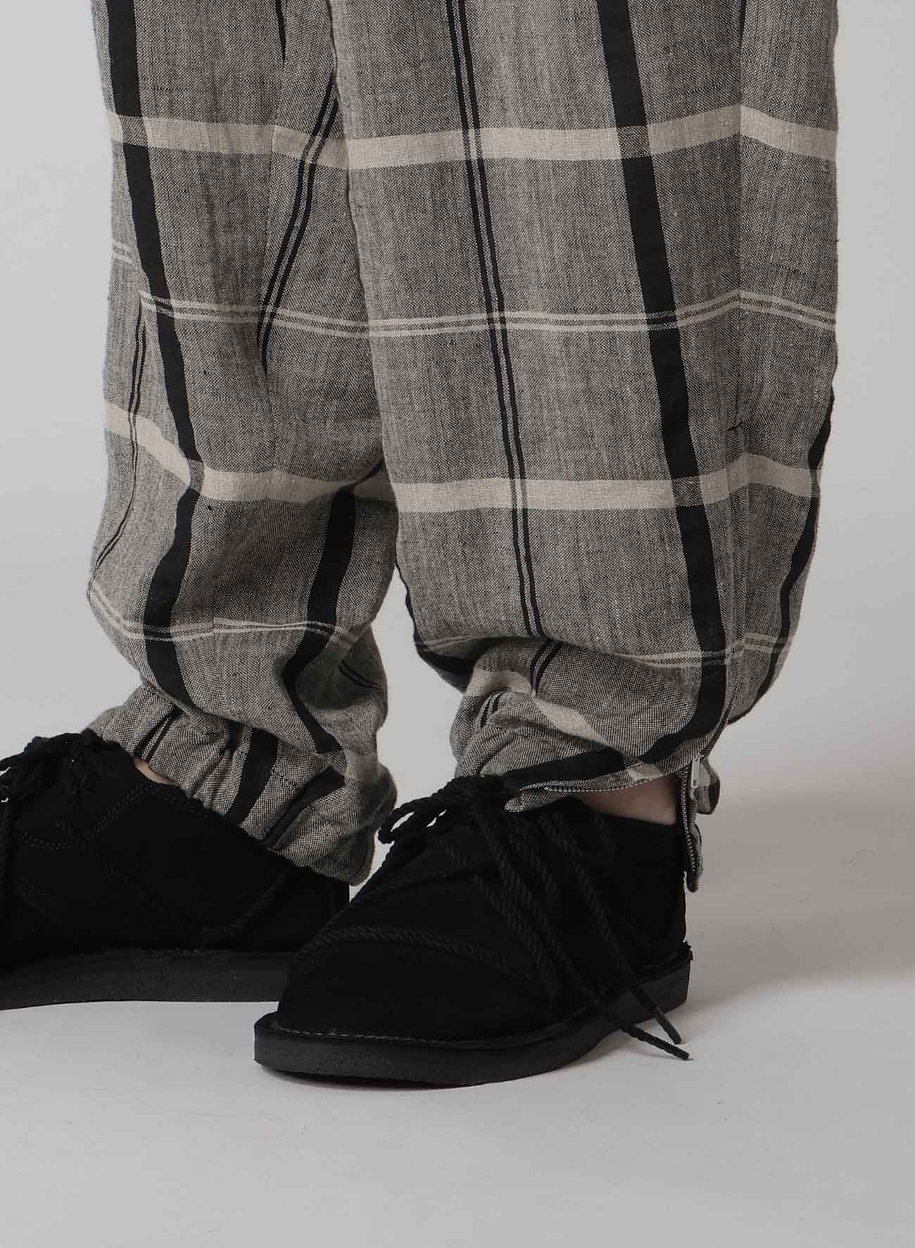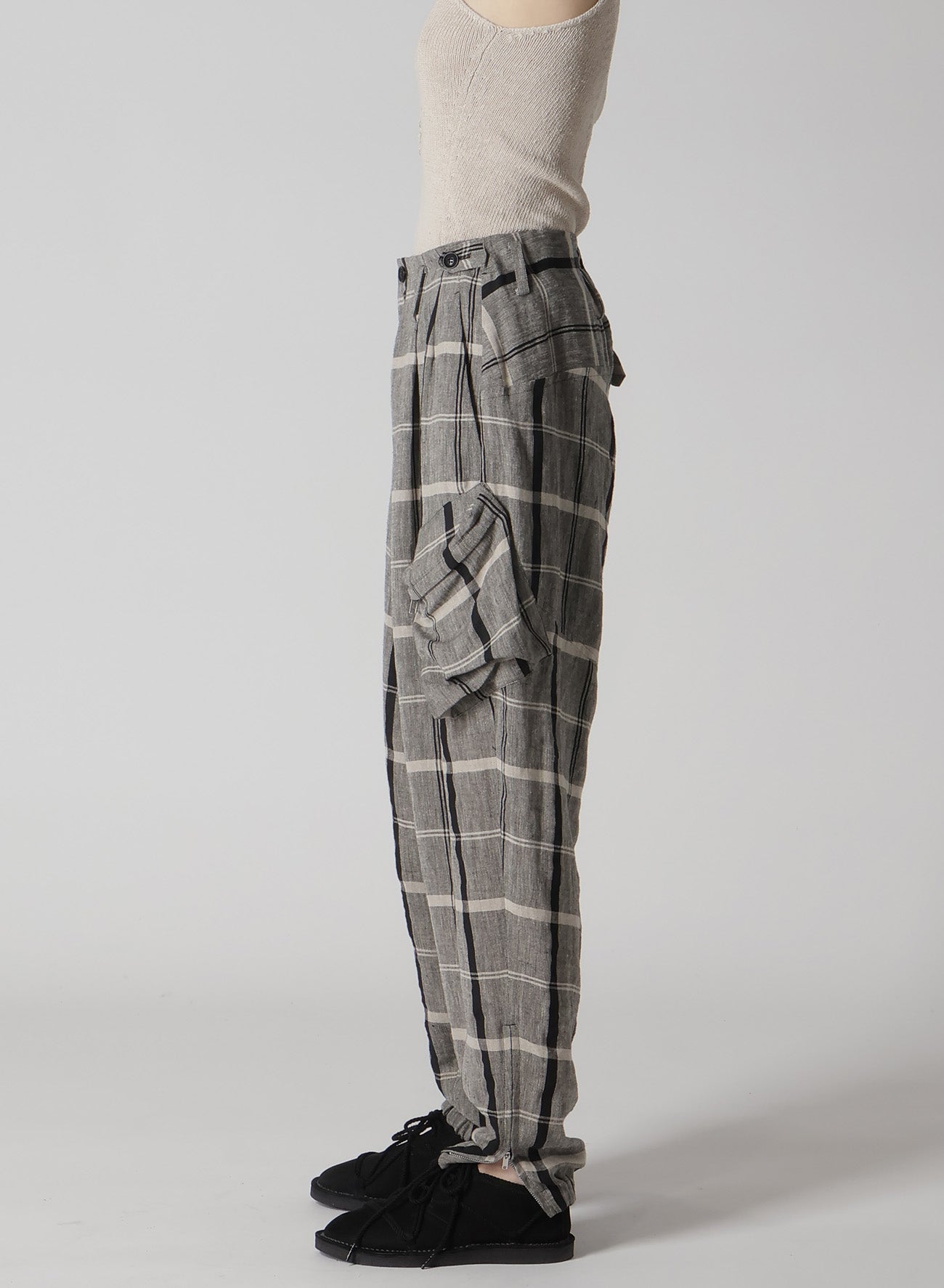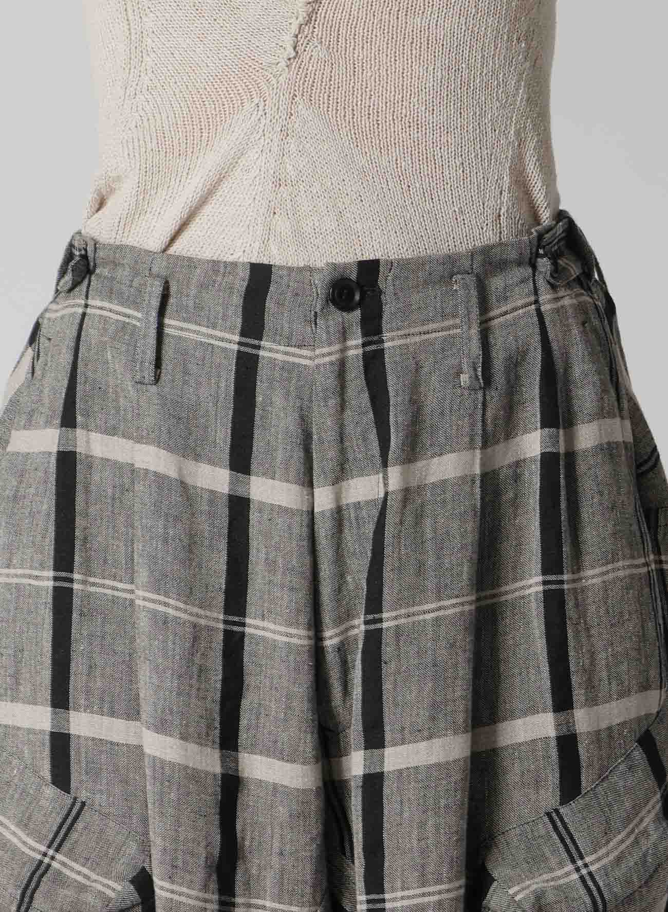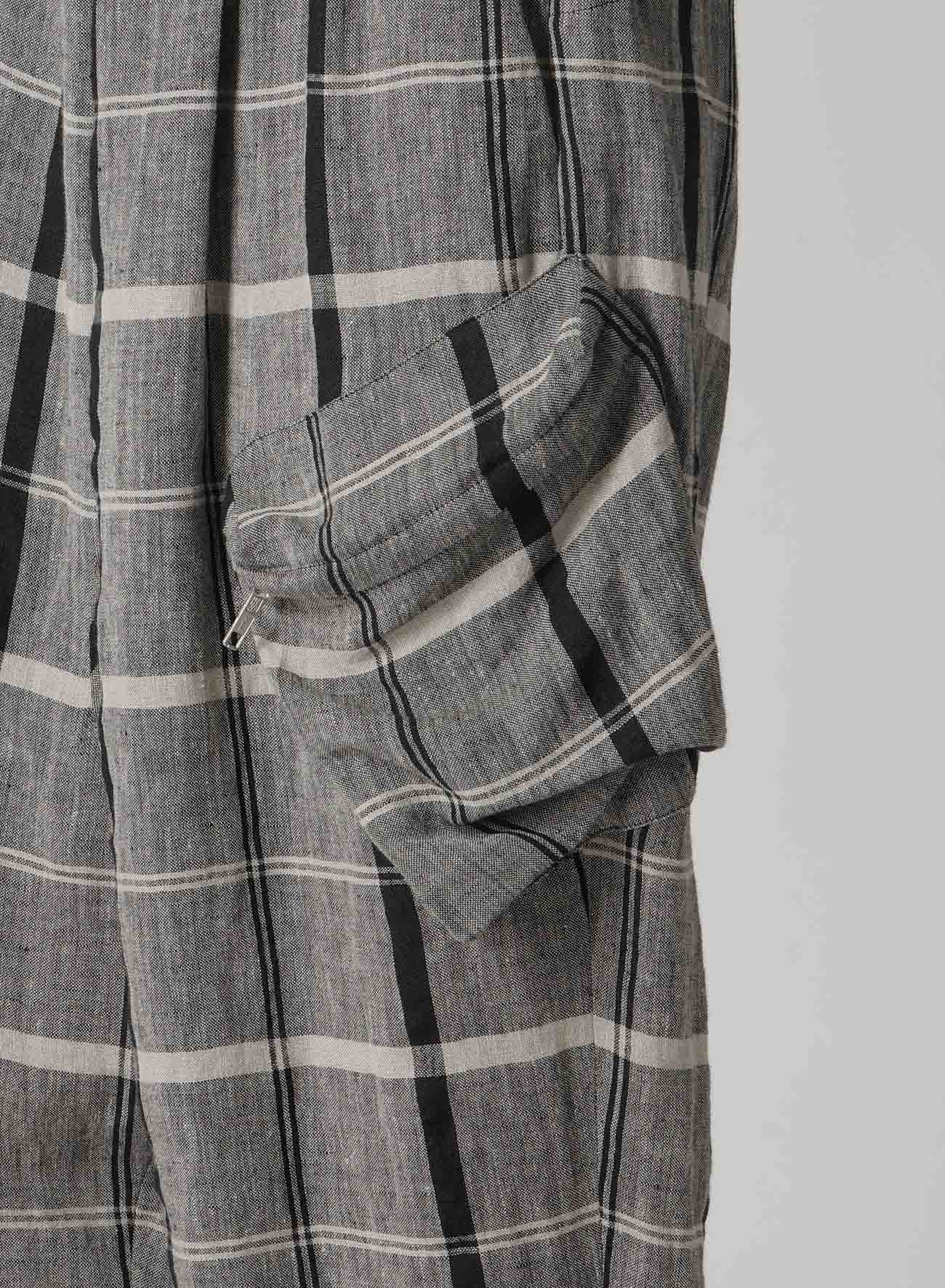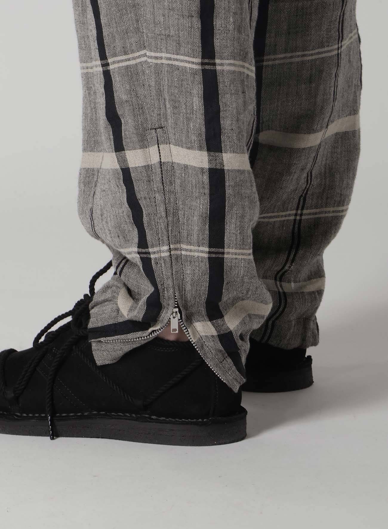 LINEN/NYLON PLAID ZIP POCKET PANTS