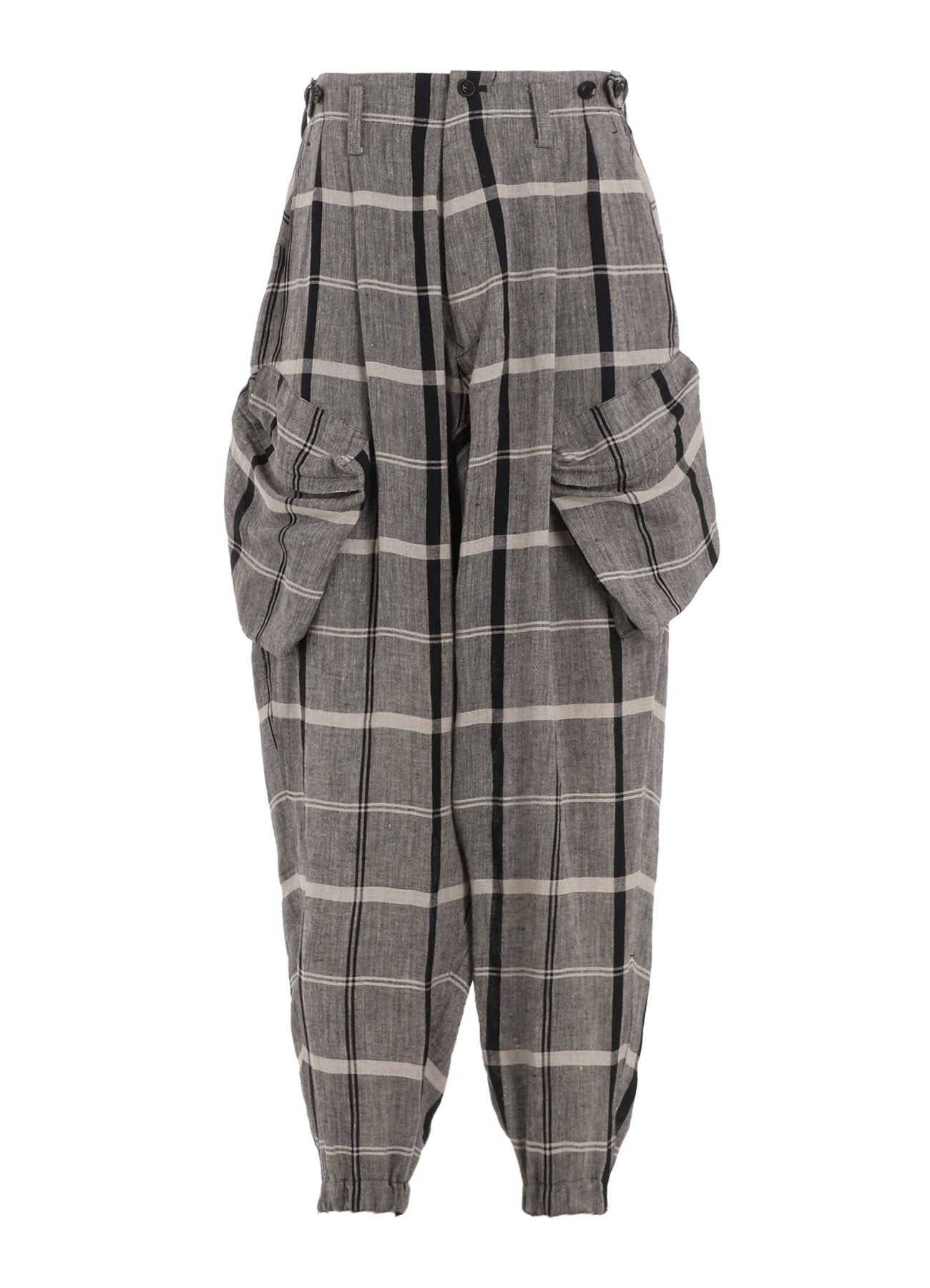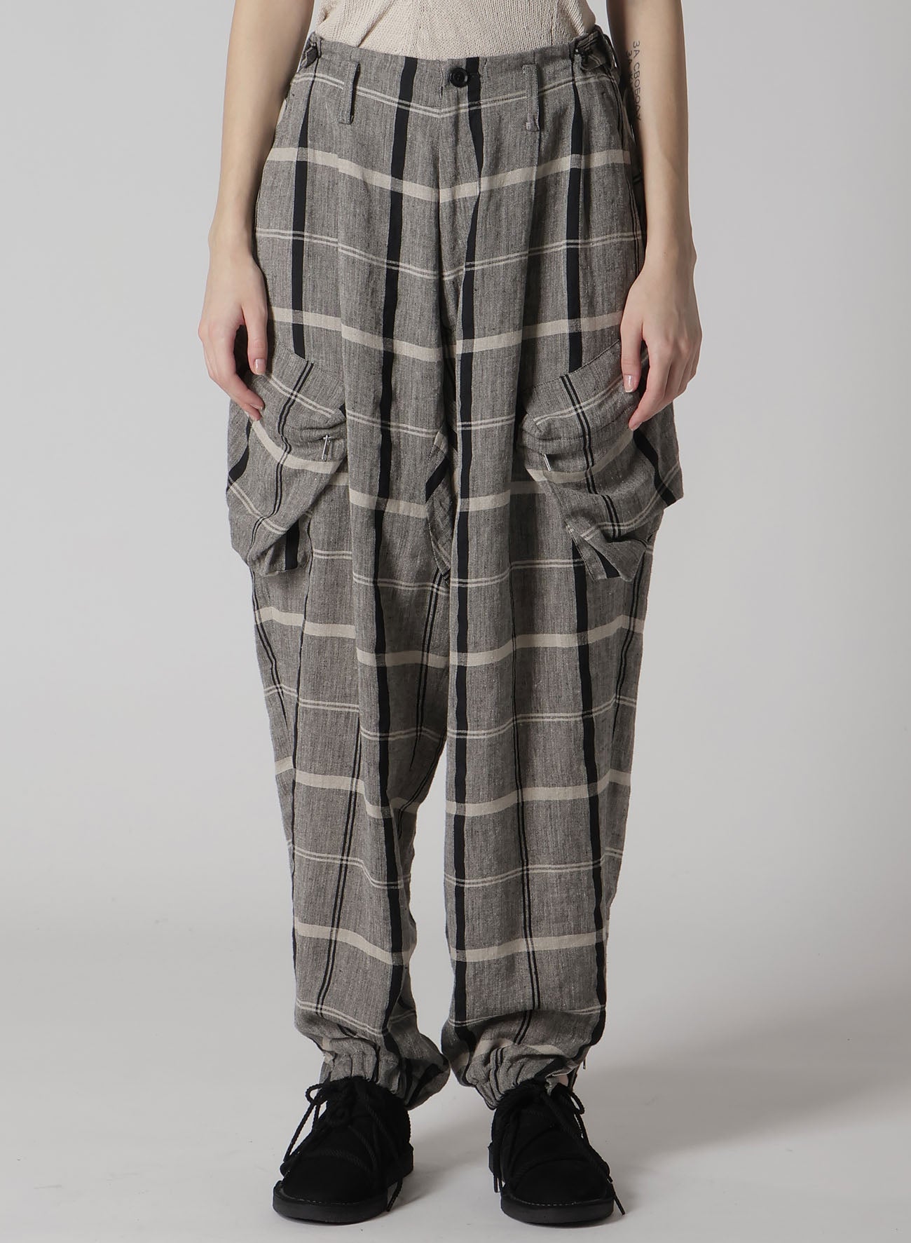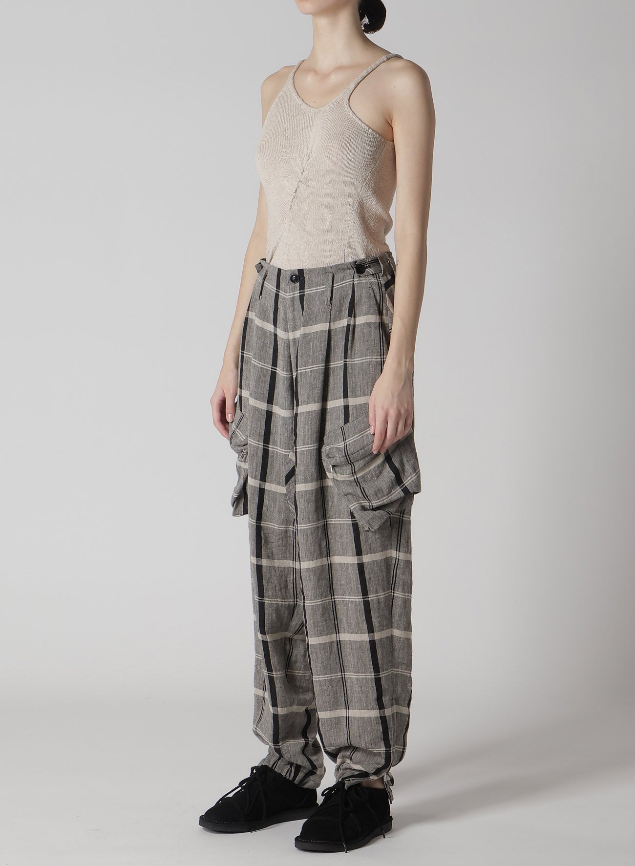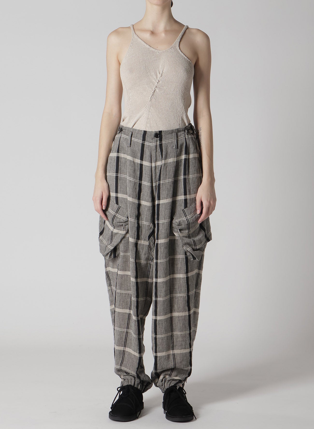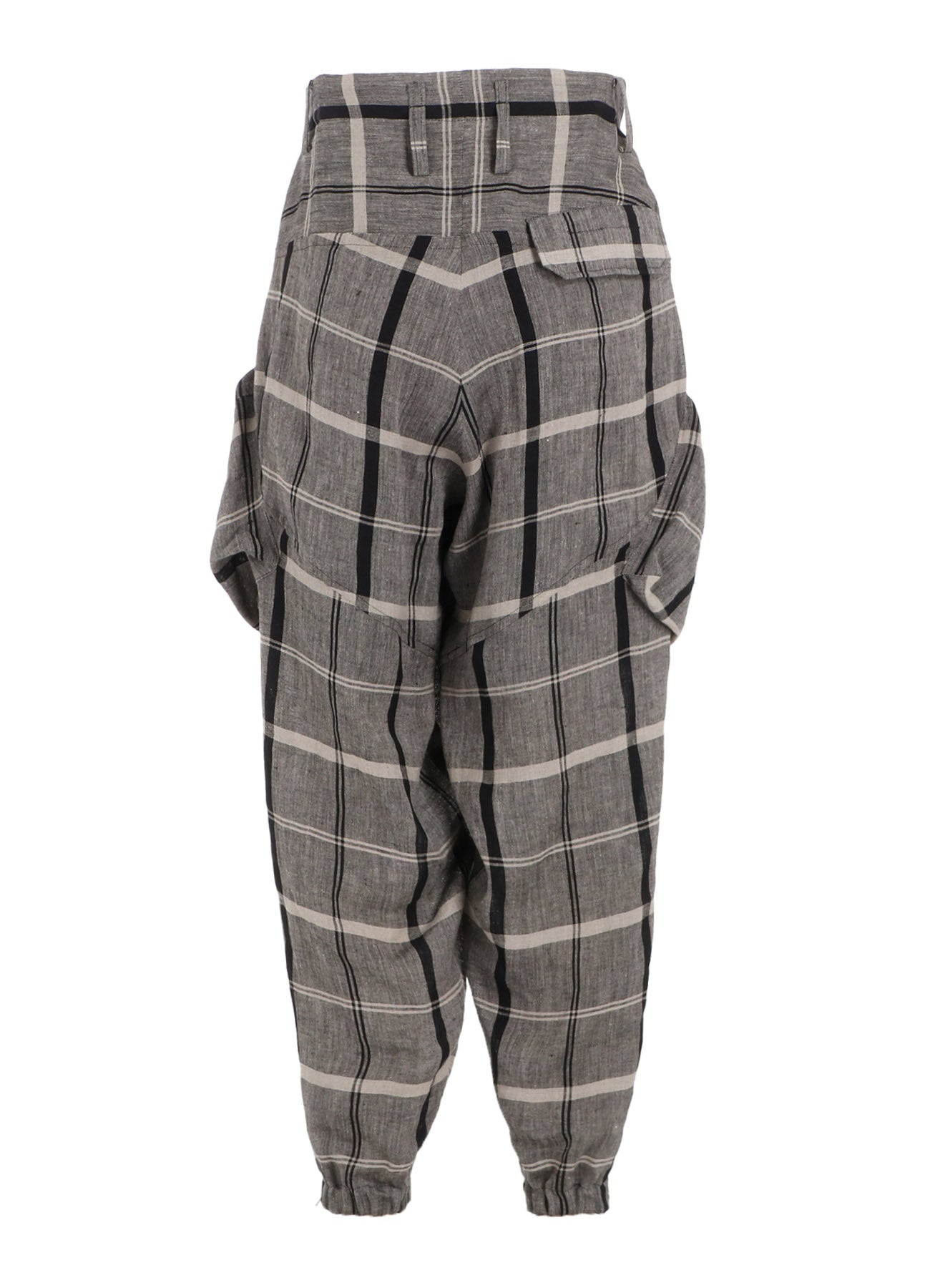 LINEN/NYLON PLAID ZIP POCKET PANTS
